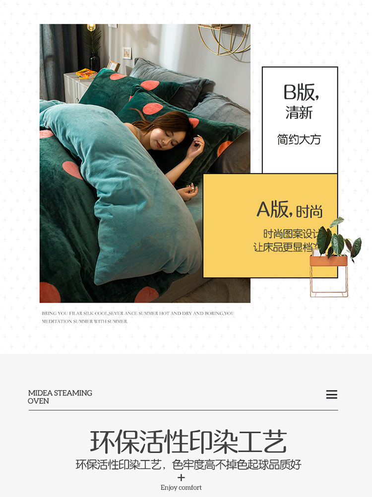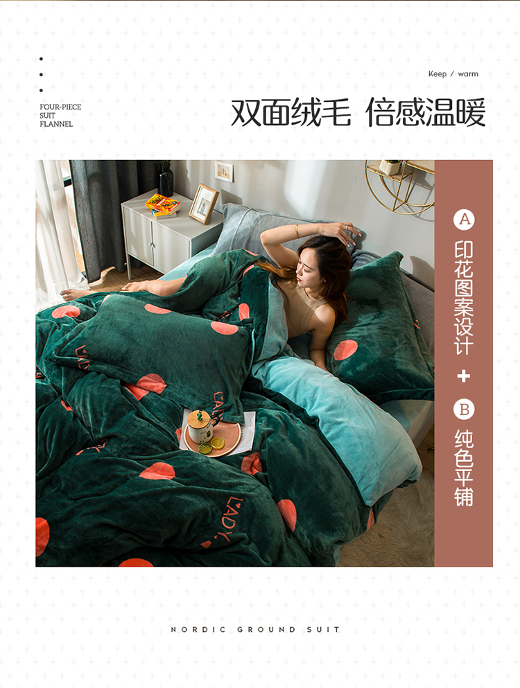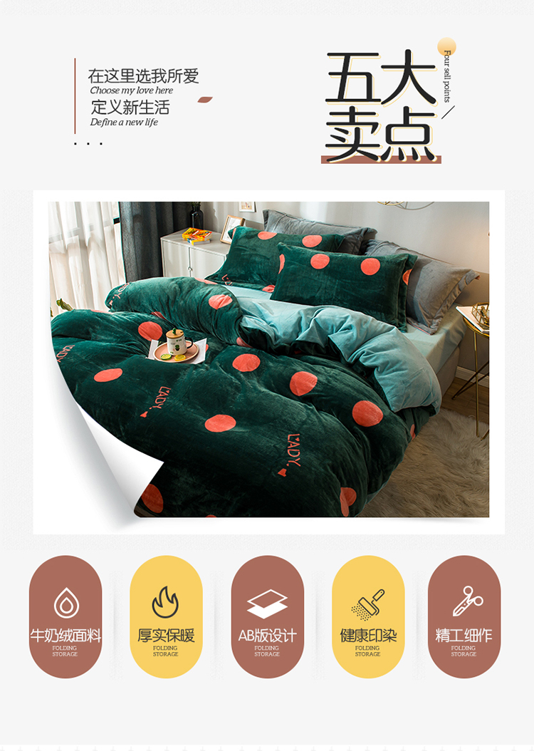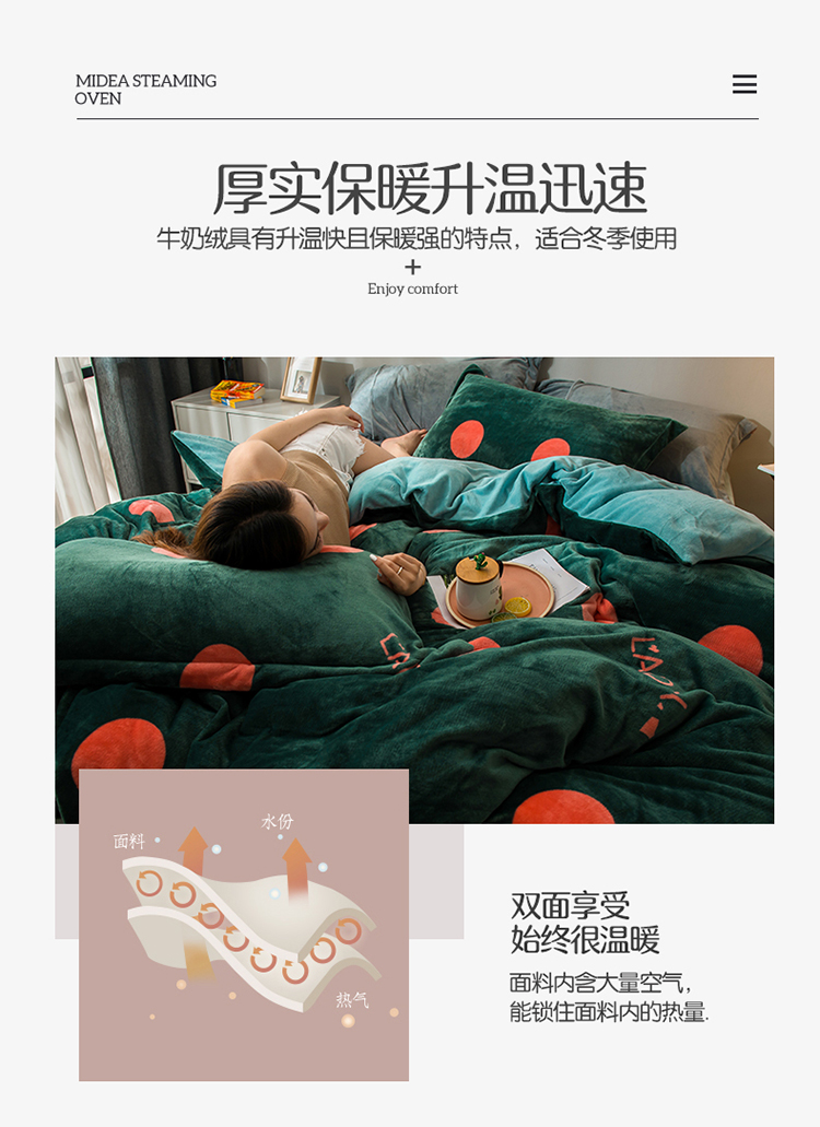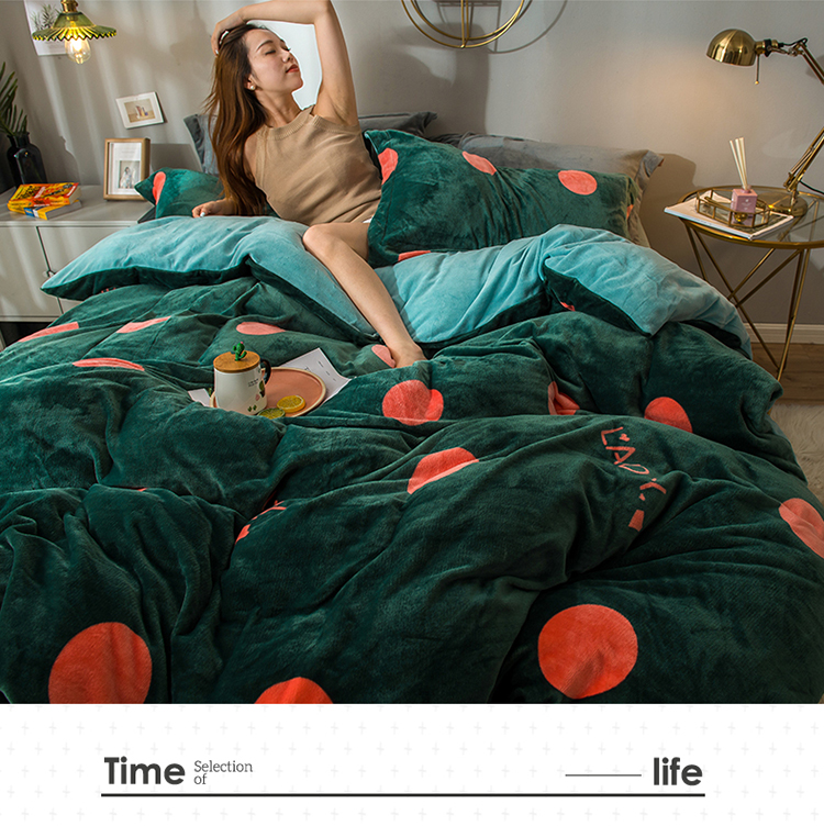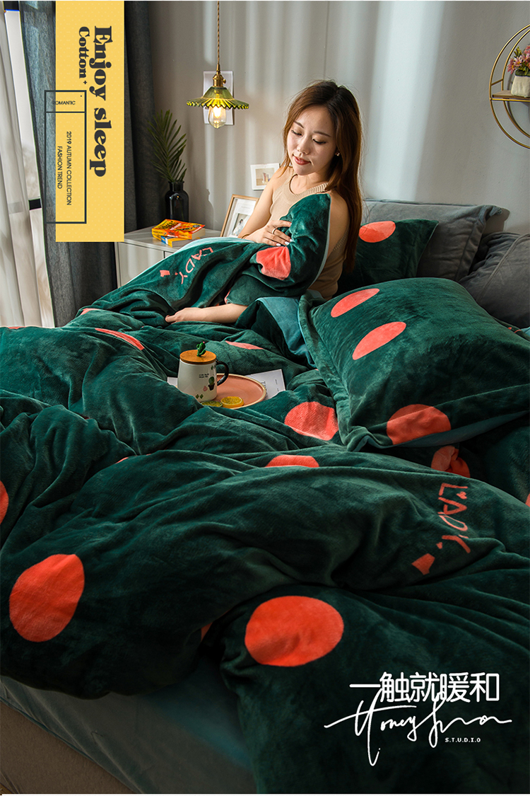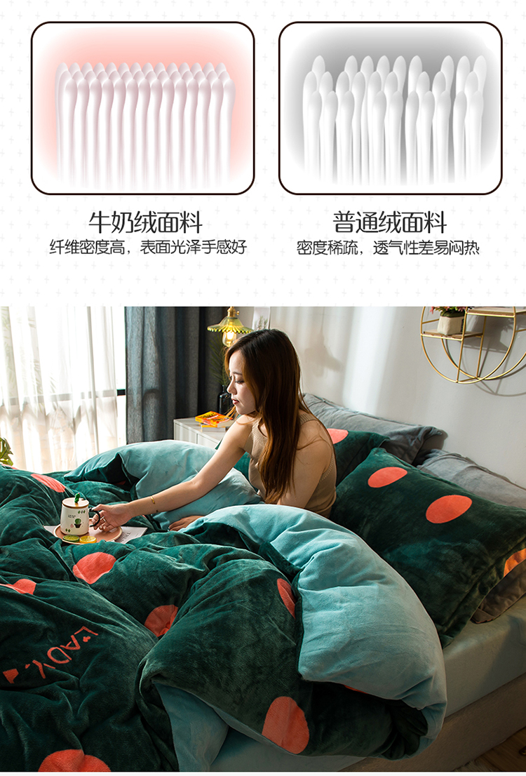 商品名称:新太阳 2022新款牛奶绒四件套 波点-墨绿