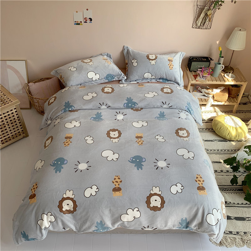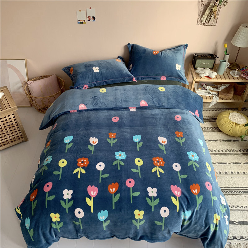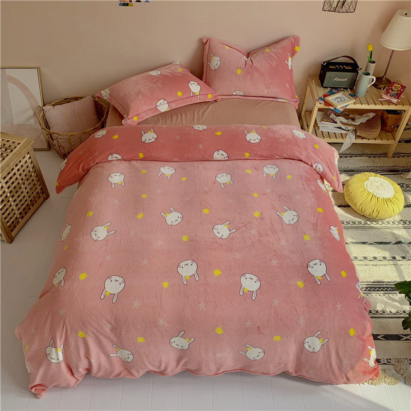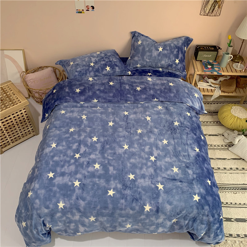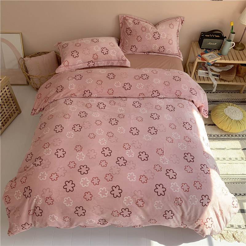 (总)时年 2019牛奶绒印花保暖四件套(手机实拍图)