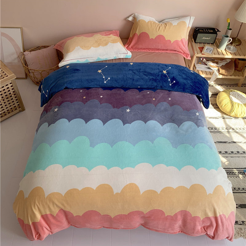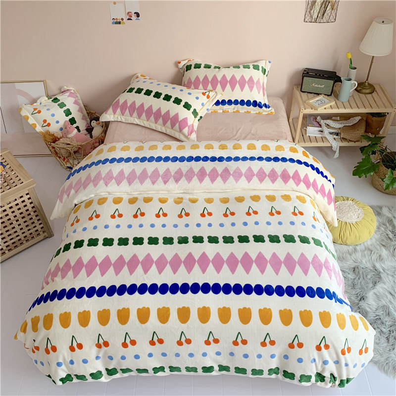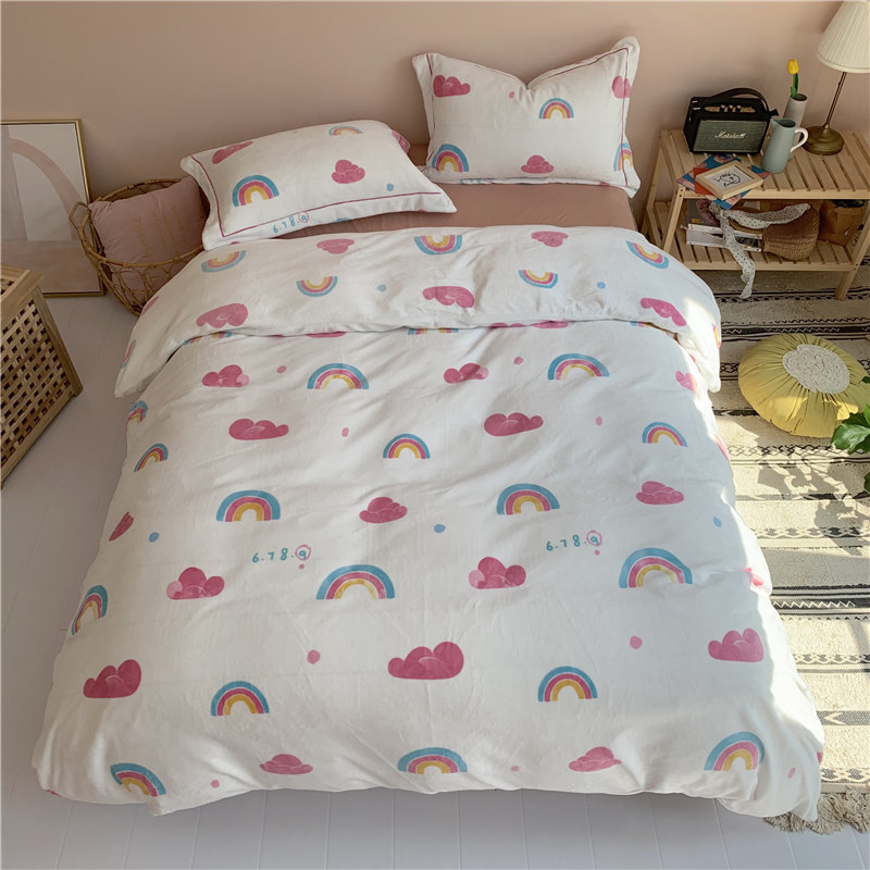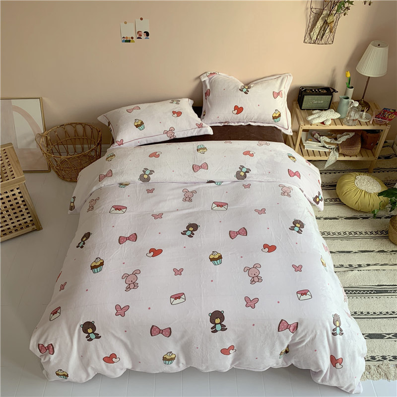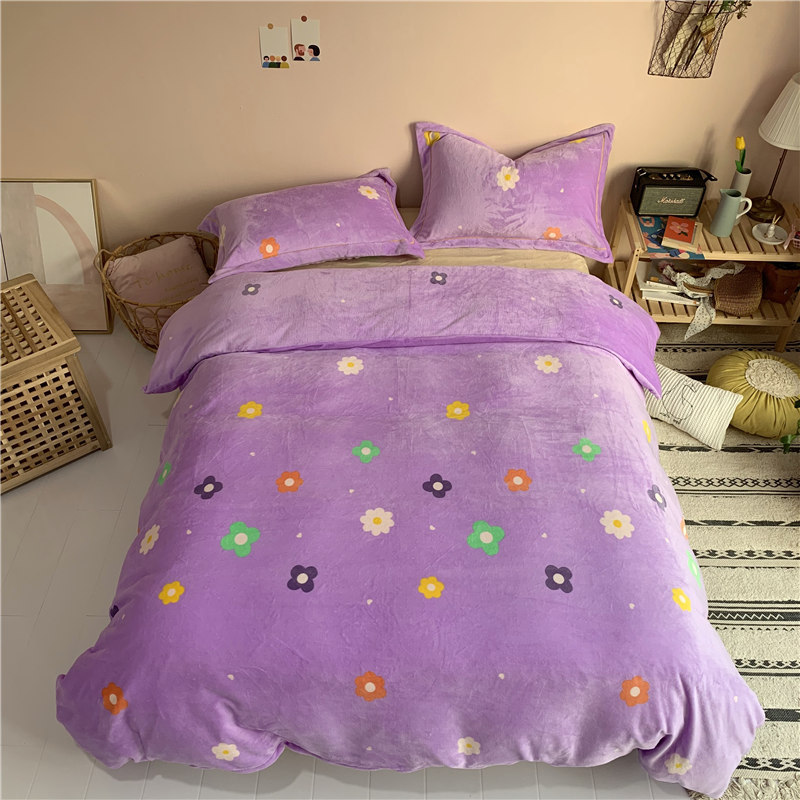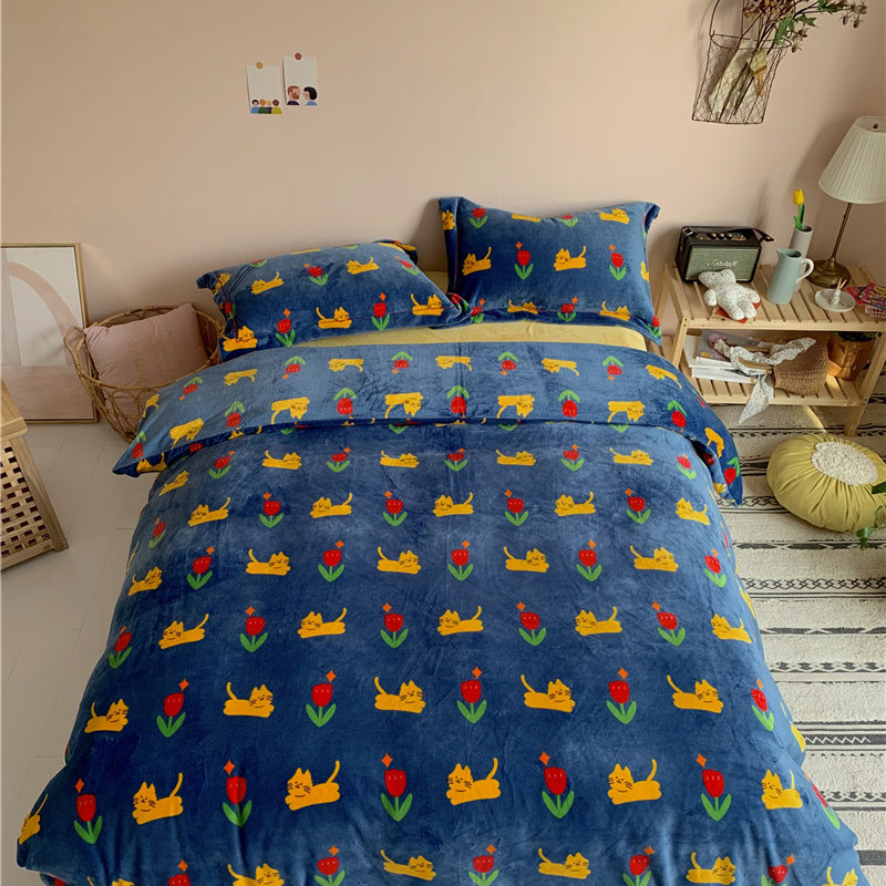 (总)时年 2019牛奶绒印花保暖四件套(手机实拍图)
