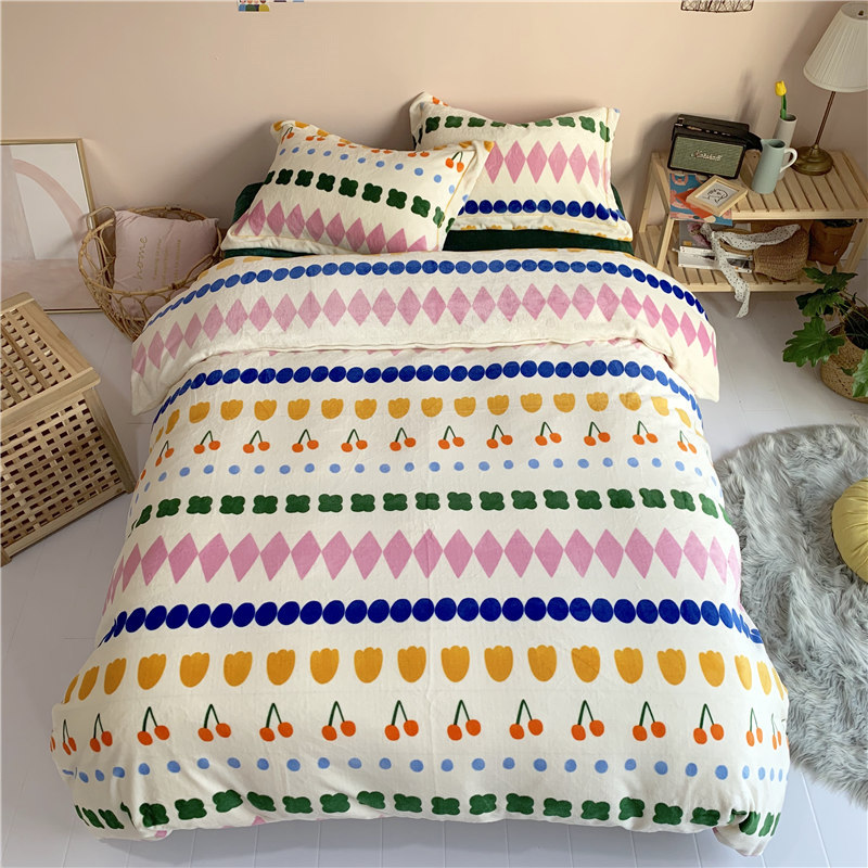 (总)时年家纺 2021新款13372全棉小可爱四件套,毕加索,草莓仙子,风花旅,花果