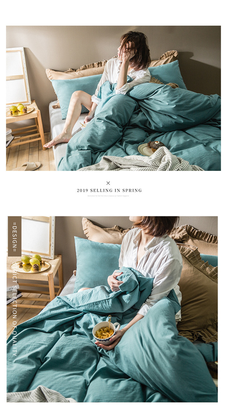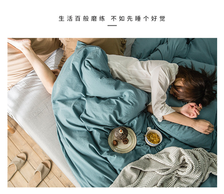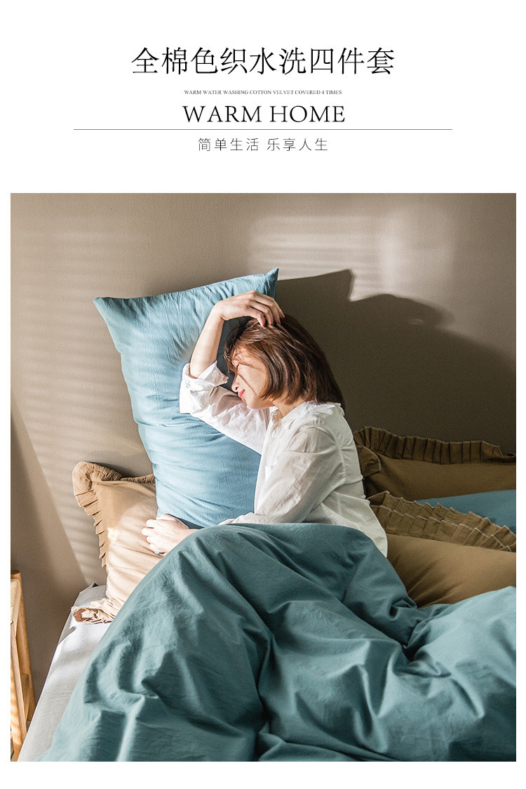 2020春夏新款全棉色织水洗四件套 深海蓝