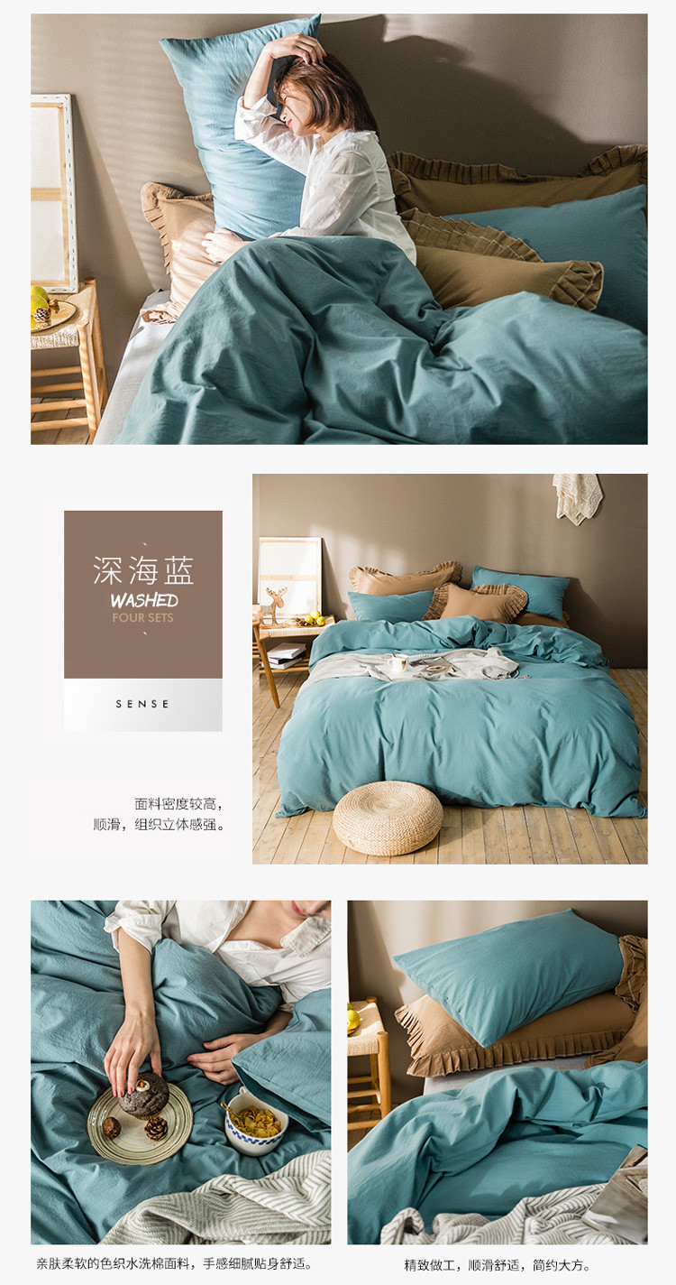 商品名称:2020春夏新款全棉色织水洗四件套 深海蓝