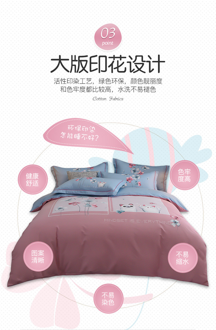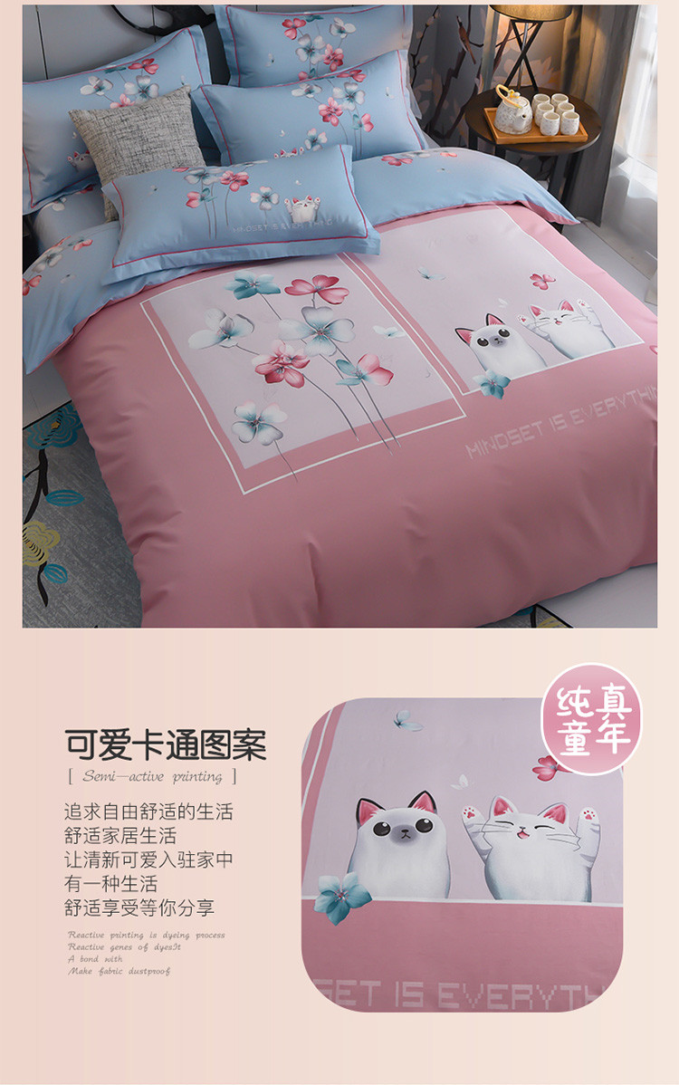 (总)雲归梦 2022新款小清新全棉绣花四件套,可爱喵-粉色,可爱喵-橘色,可爱喵-绿色,可爱喵-浅灰,可爱喵-深灰,可爱喵-天蓝