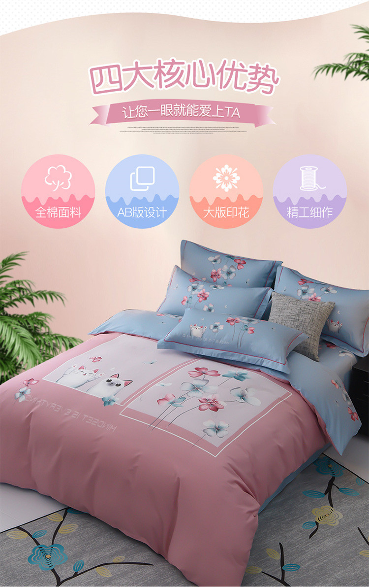 商品名称:雲归梦 2020新款13372全棉大版四件套 小甜心粉