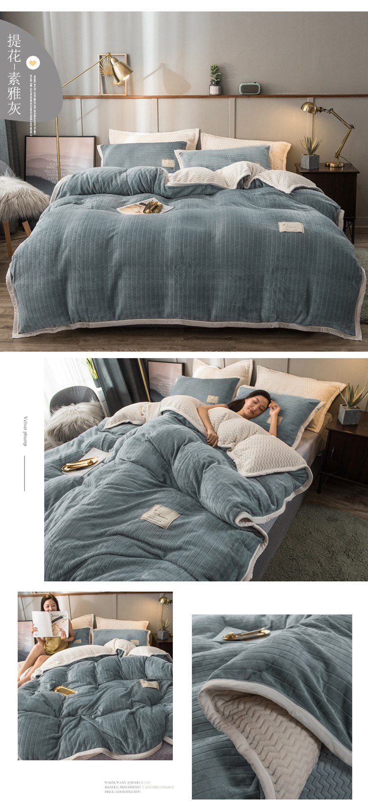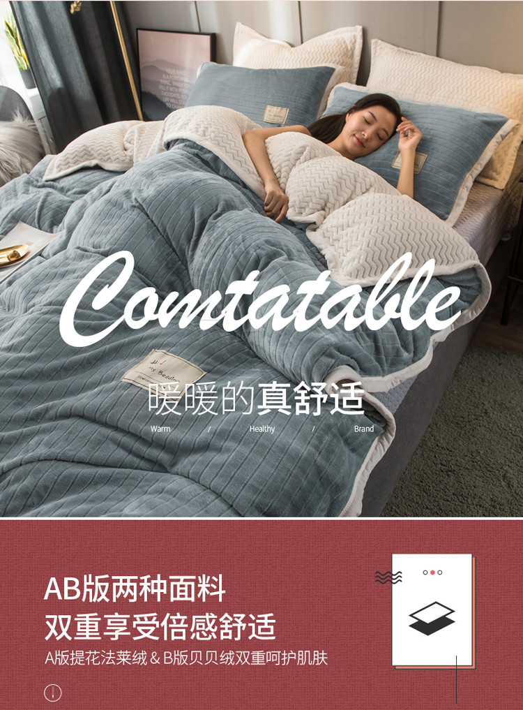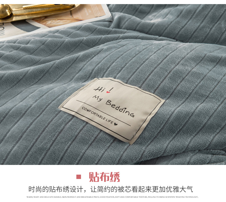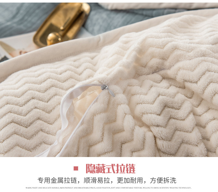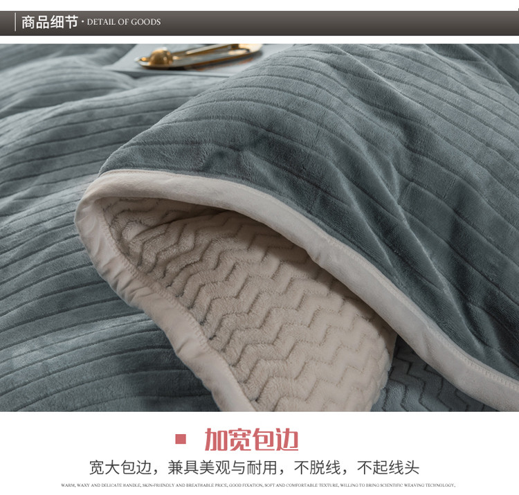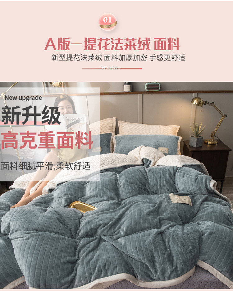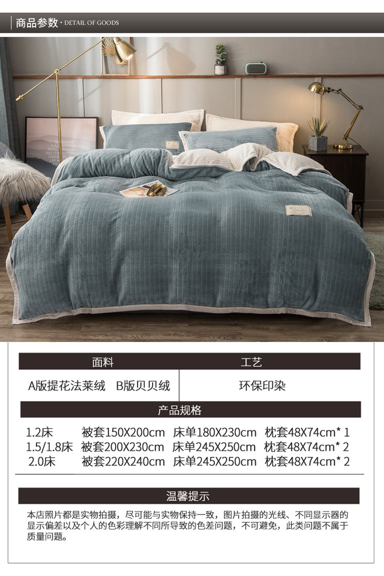 商品名称:欧冠 2019提花法莱绒加贝贝绒加厚四件套 素雅灰