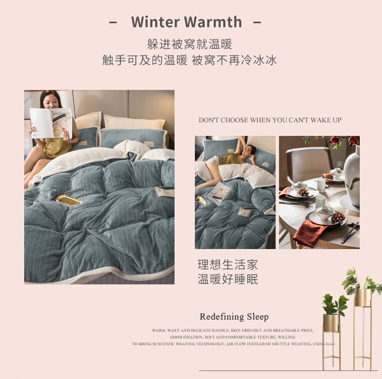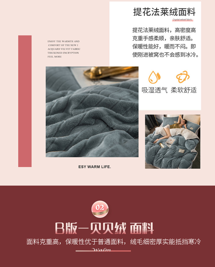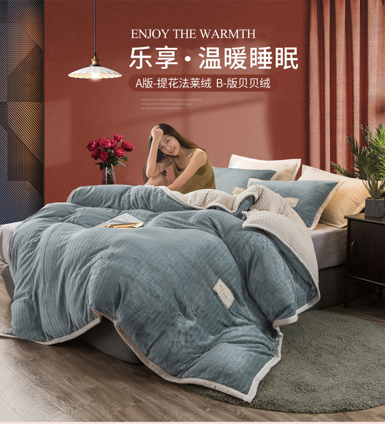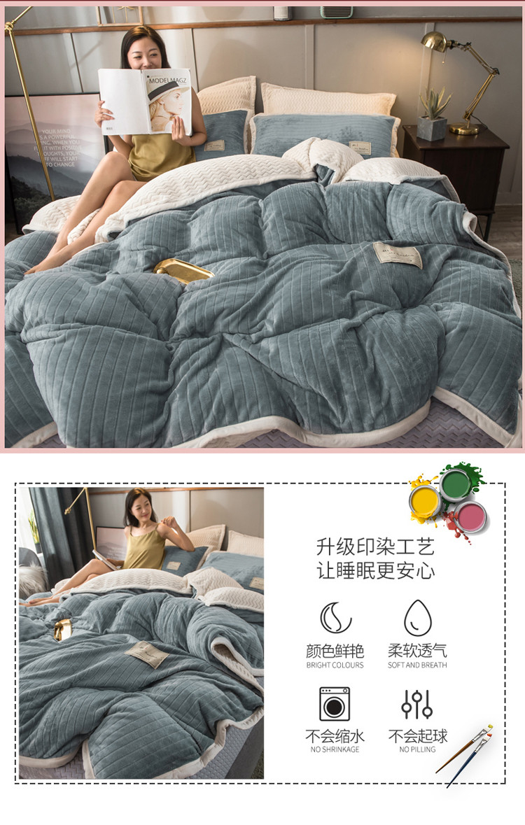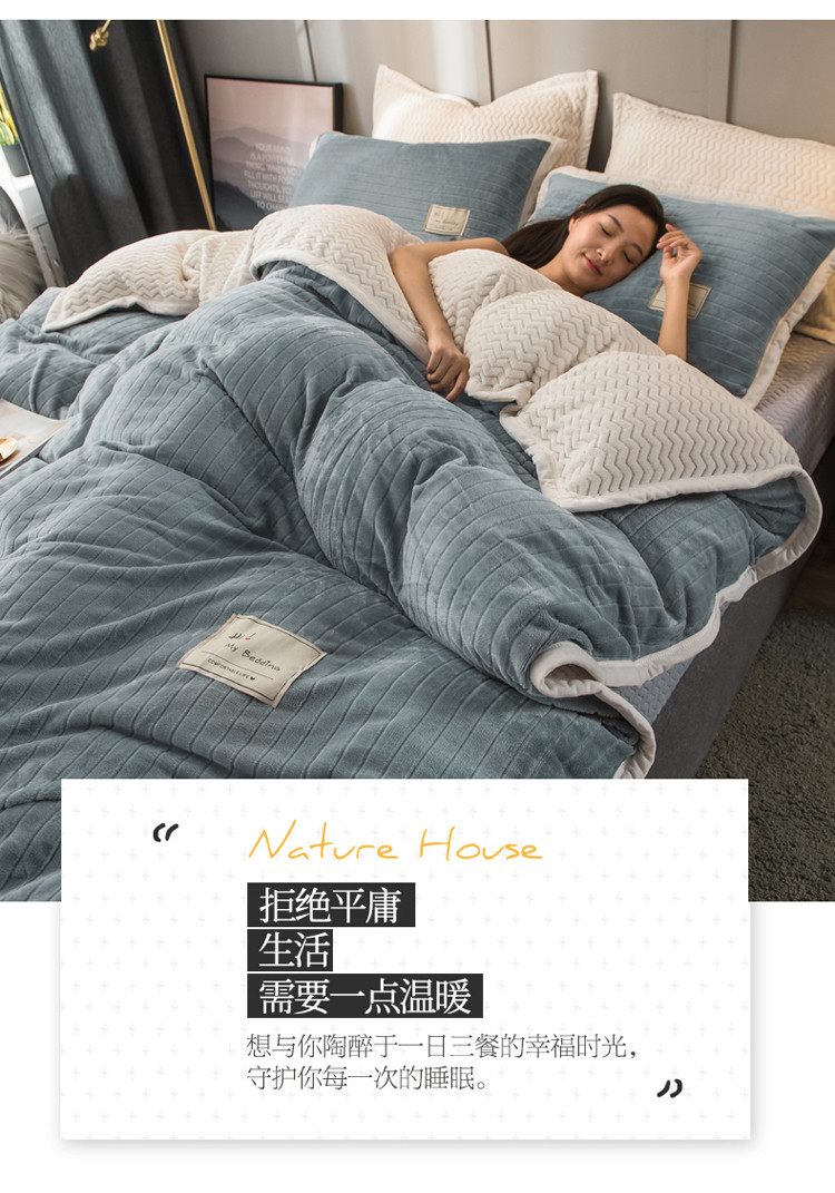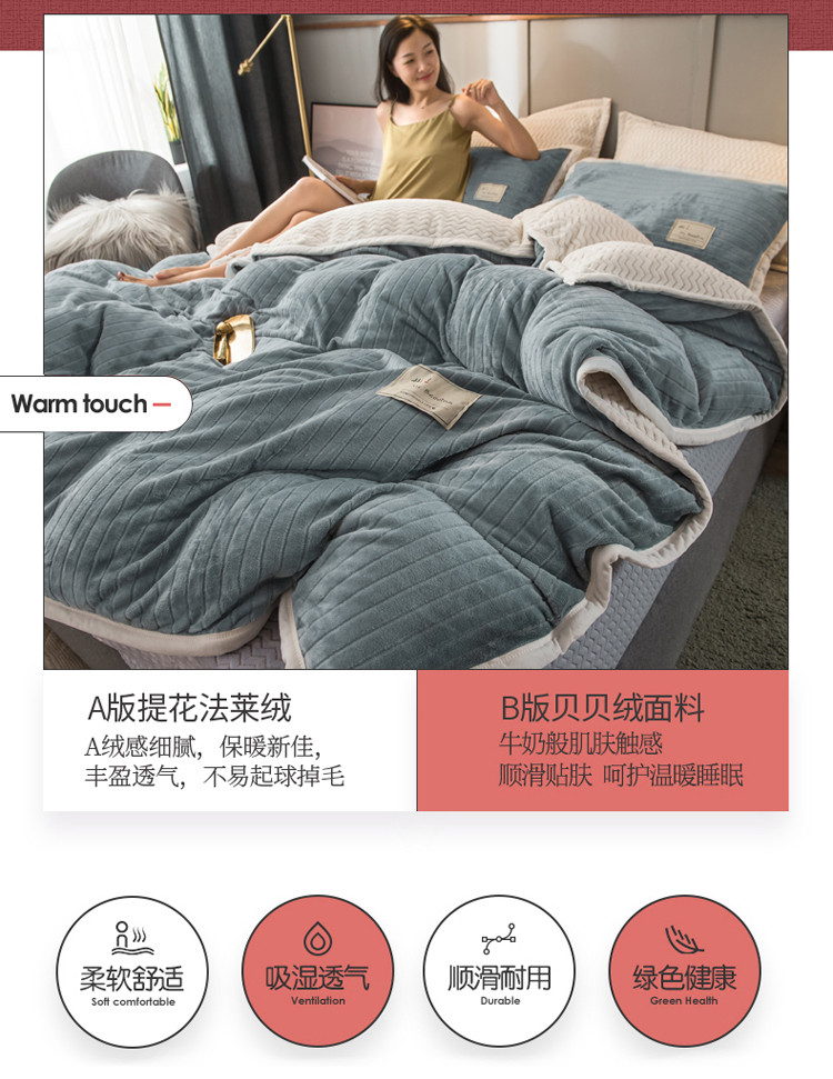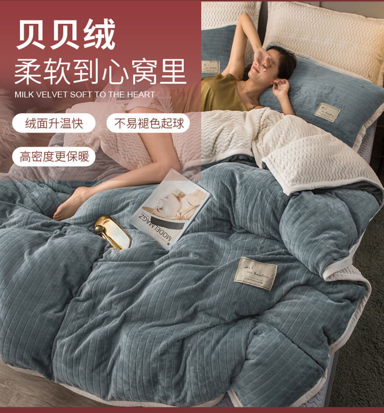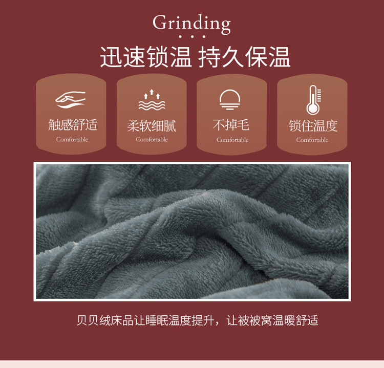 商品名称:欧冠 2019提花法莱绒加贝贝绒加厚四件套 素雅灰