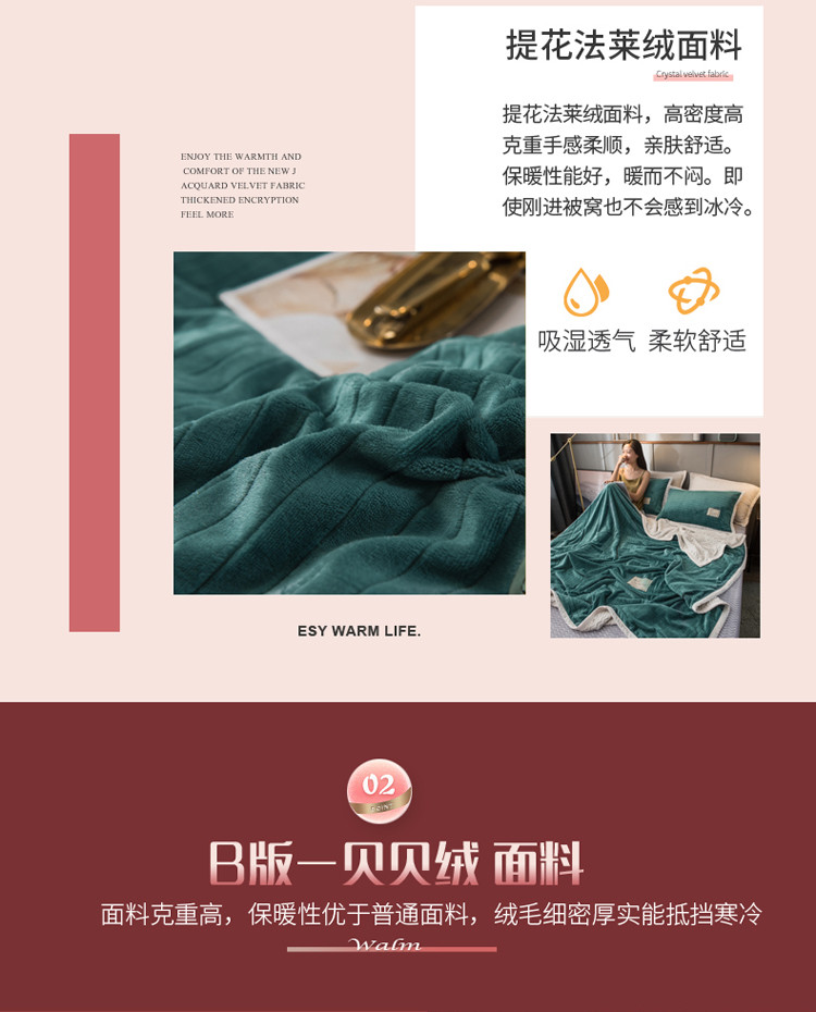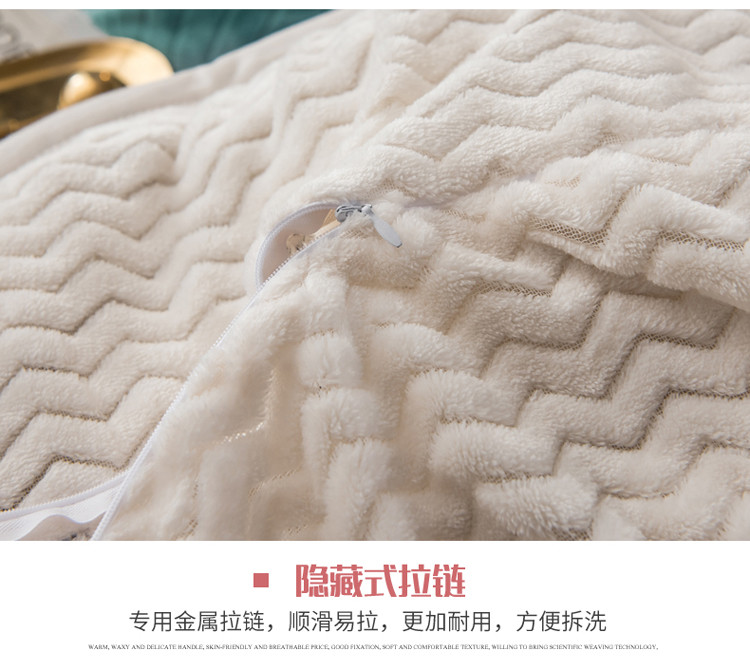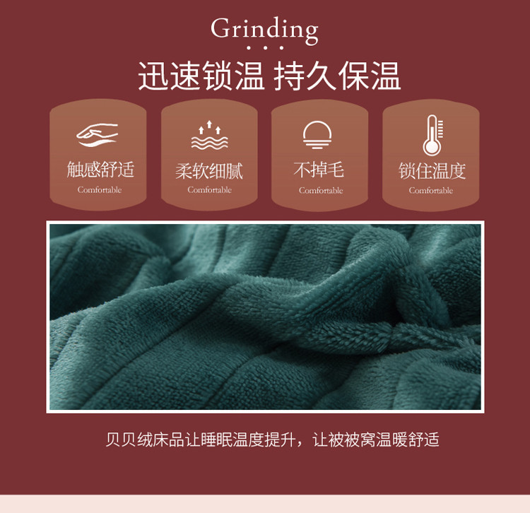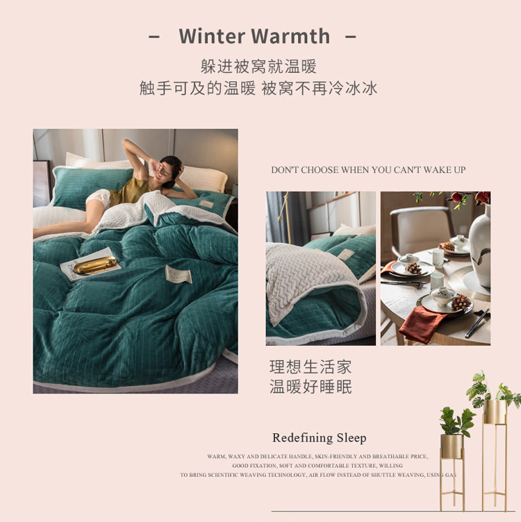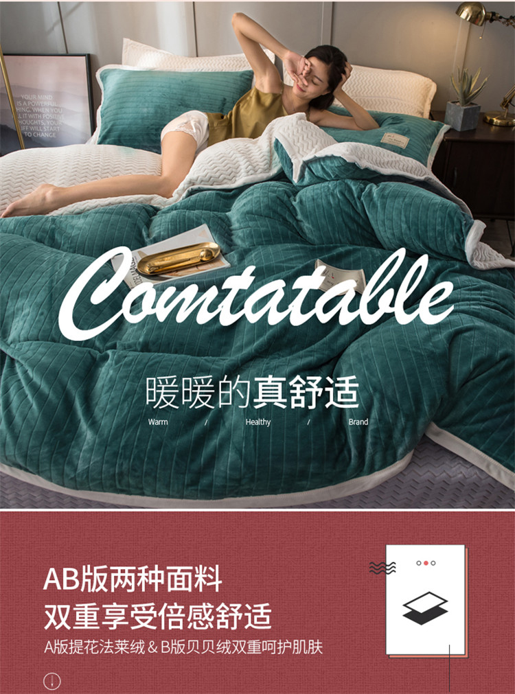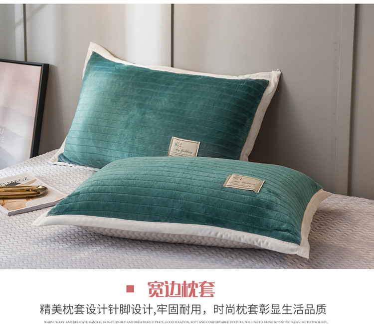 商品名称:欧冠 2019提花法莱绒加贝贝绒加厚四件套 果绿白