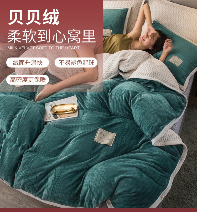 (总)欧冠家纺 2025新款条纹兔毛绒牛奶绒四件套,魔幻黑,卡其,墨绿,森林绿,雪灰,棕灰