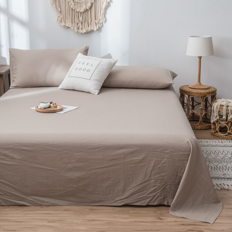 佳梦达 2020新款色织全棉水洗双拼单床单 浅驼