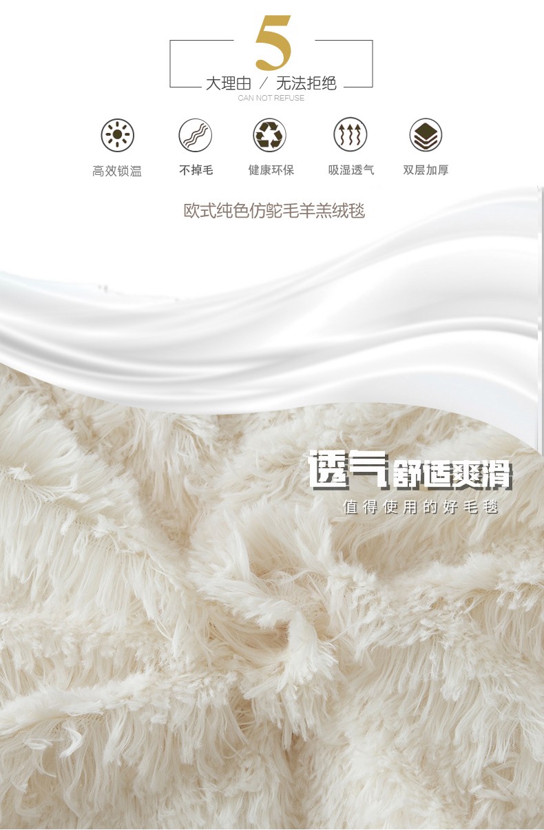 商品名称:(总)卡奥 2025新款欧式纯色长毛羊羔绒毛毯沙发毯子加厚盖毯空调毯
