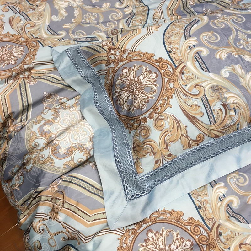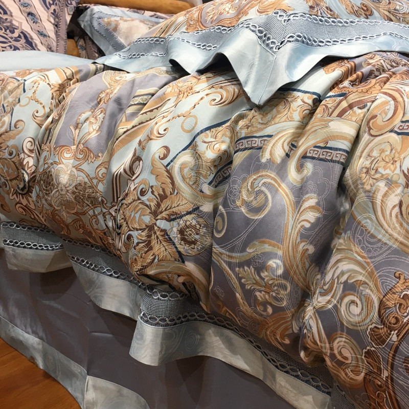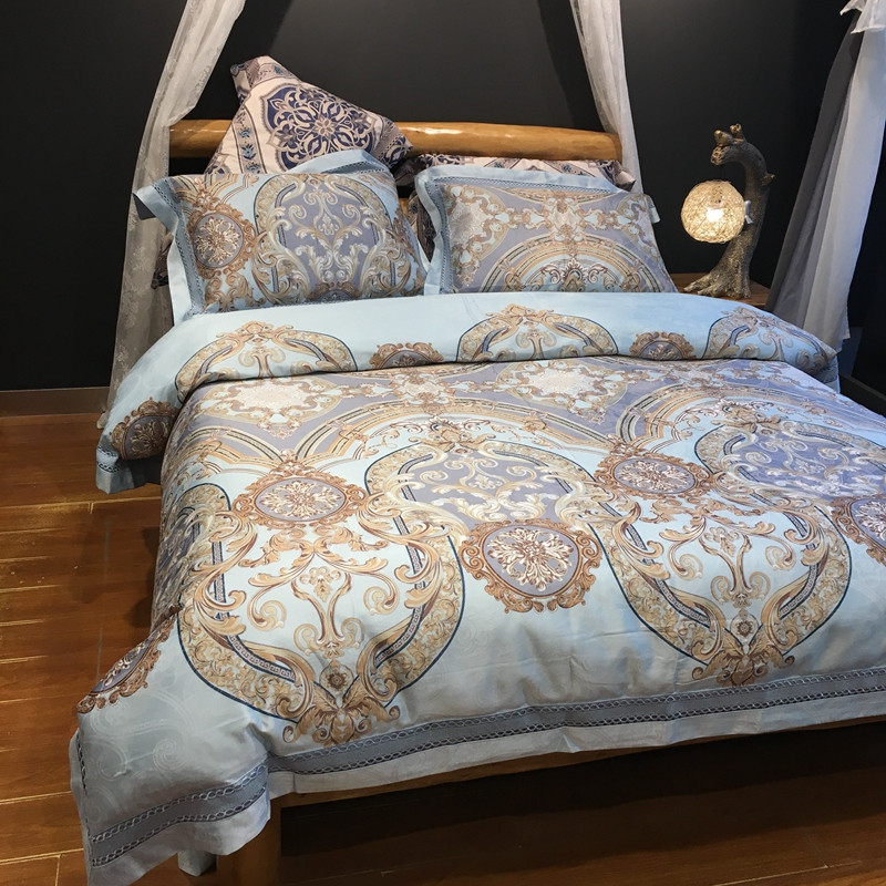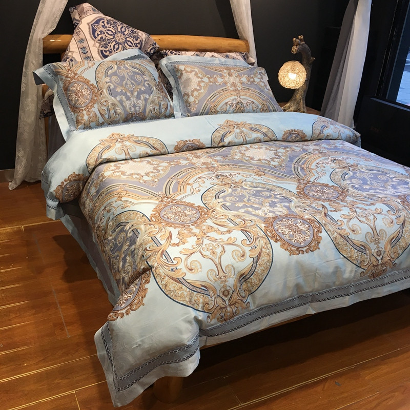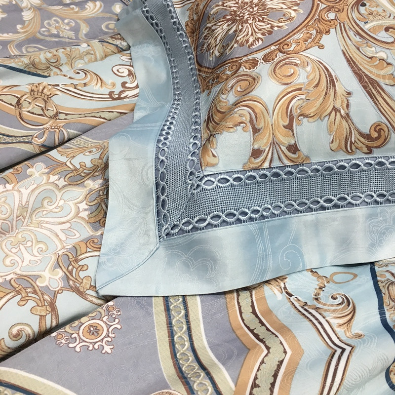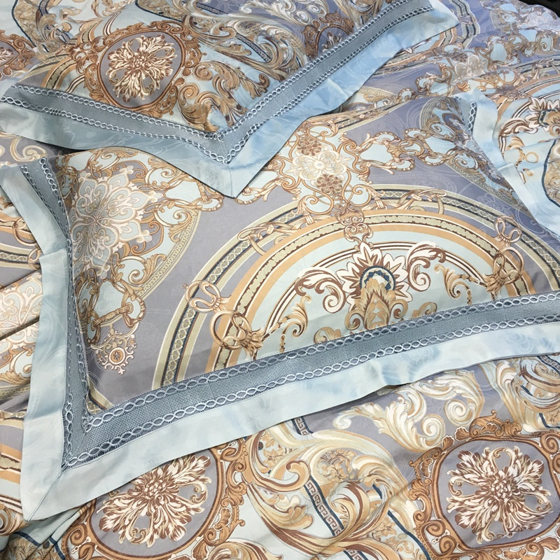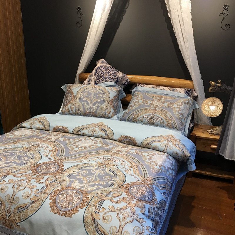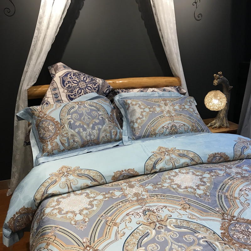 玖玖爱 2020新款七彩锦缎四件套 欧妮姿蓝