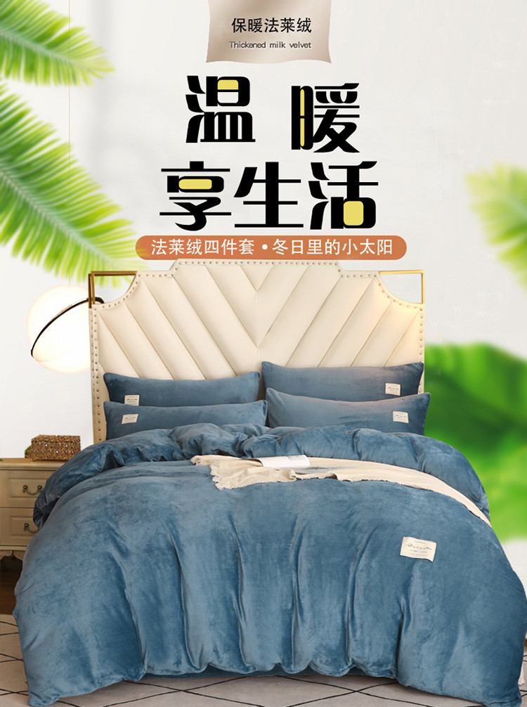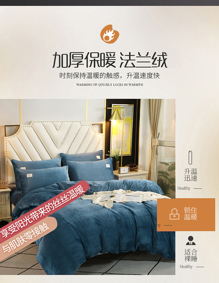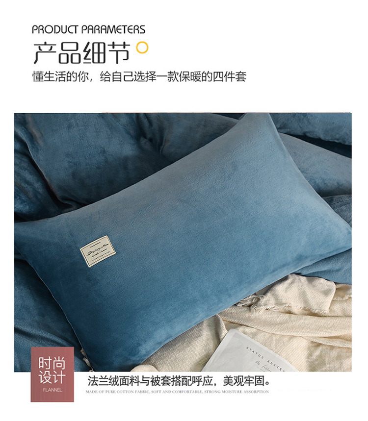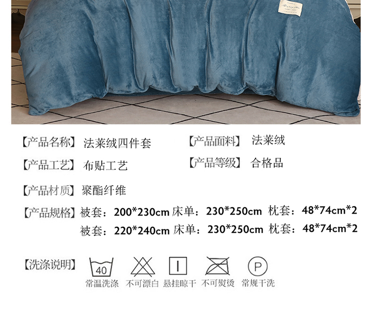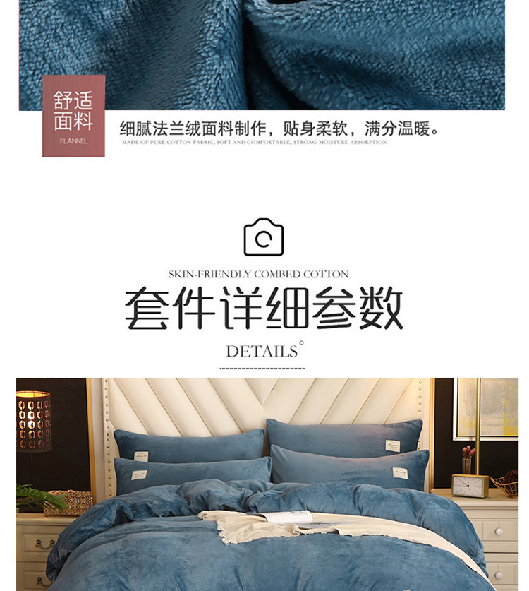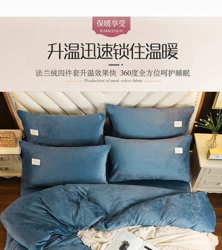 商品名称:情恒 2020新款纯色牛奶绒水晶绒法莱绒贴标四件套 雅典蓝