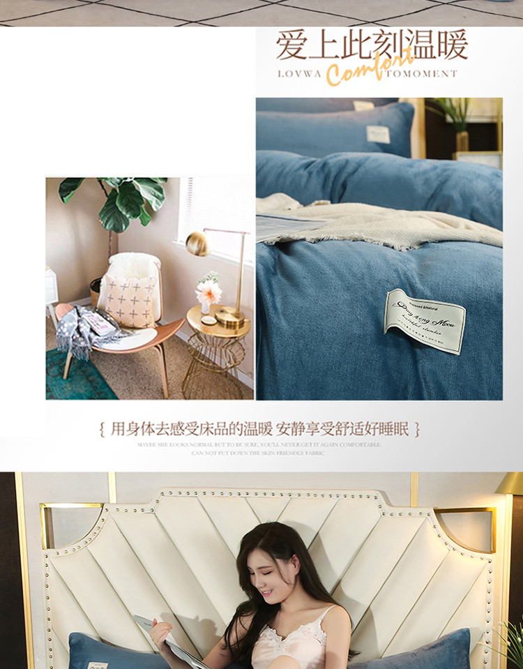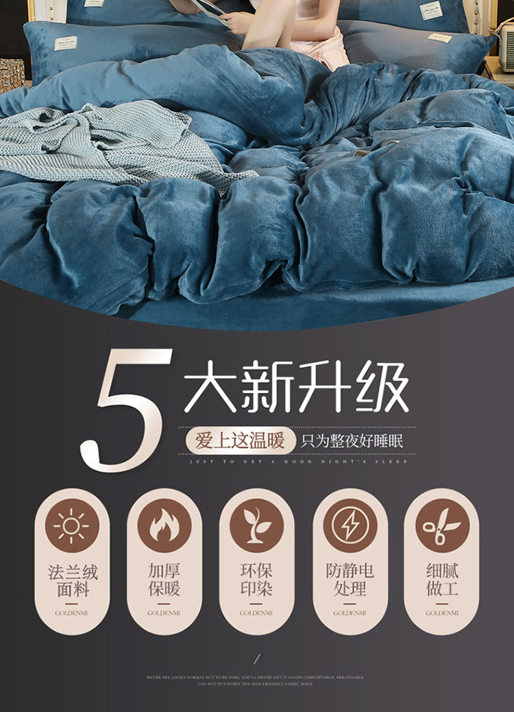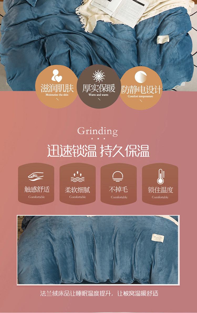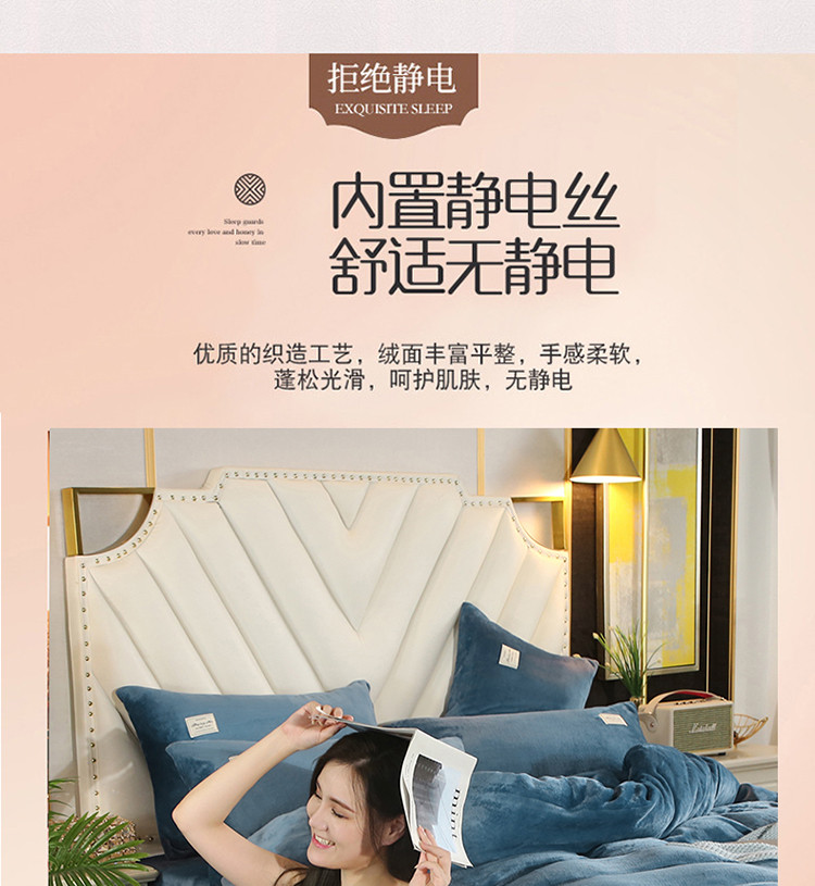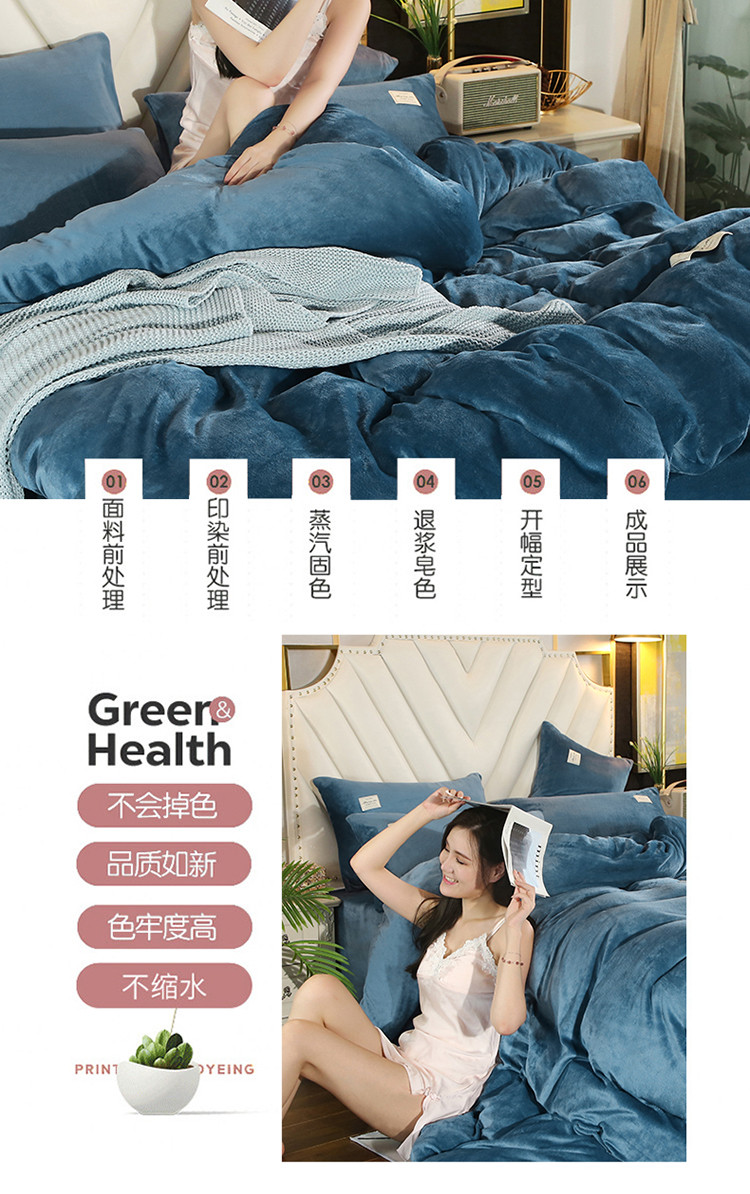 商品名称:情恒 2020新款纯色牛奶绒水晶绒法莱绒贴标四件套 雅典蓝