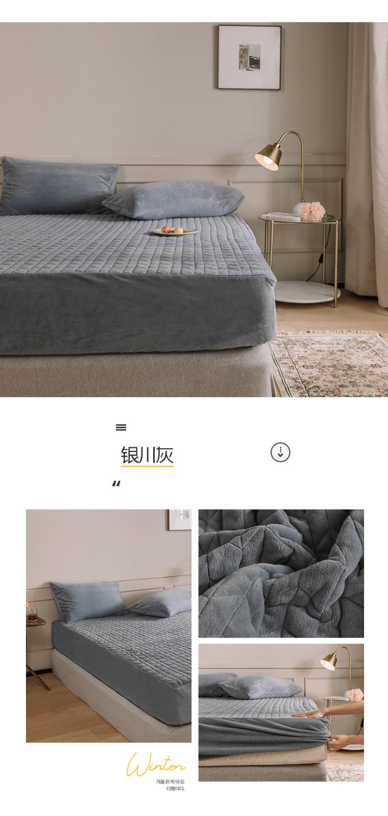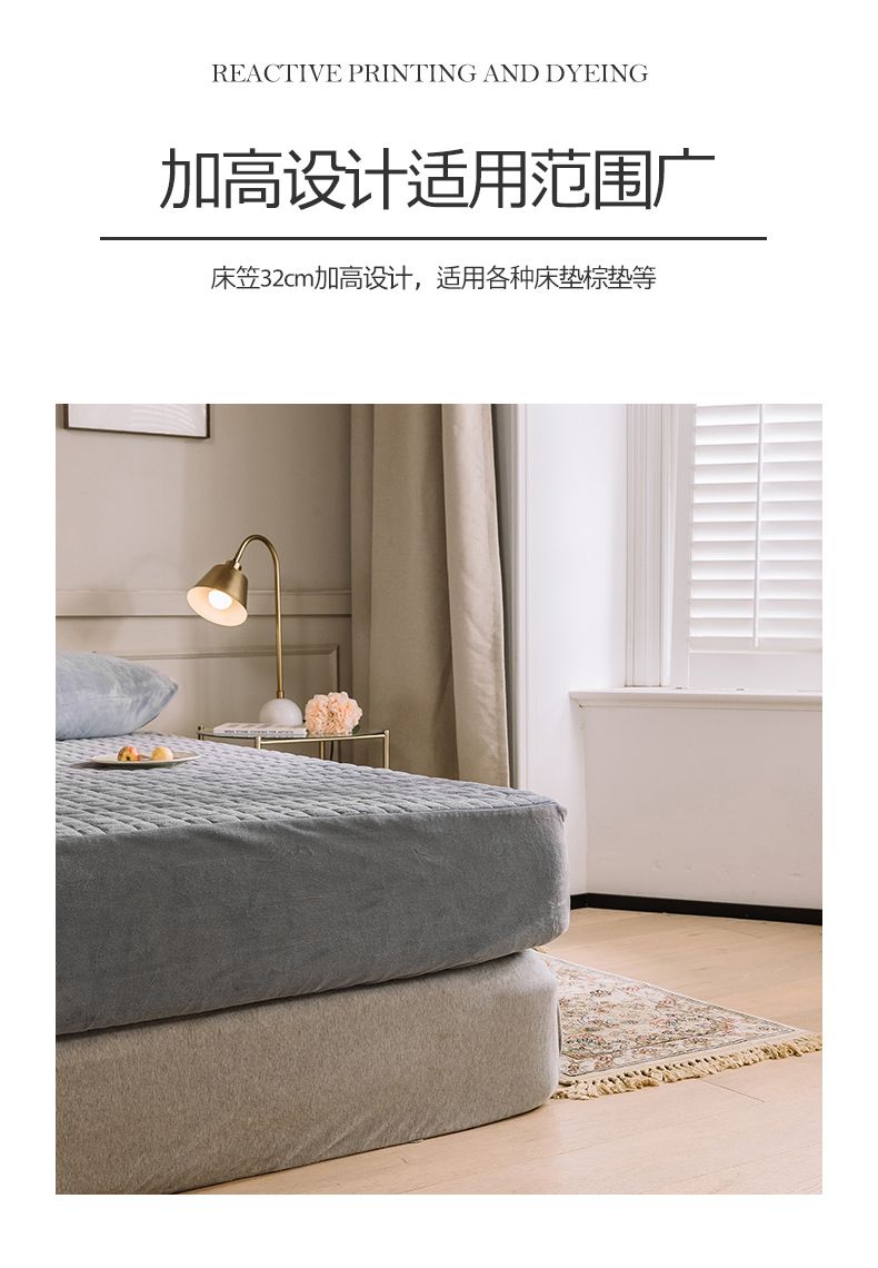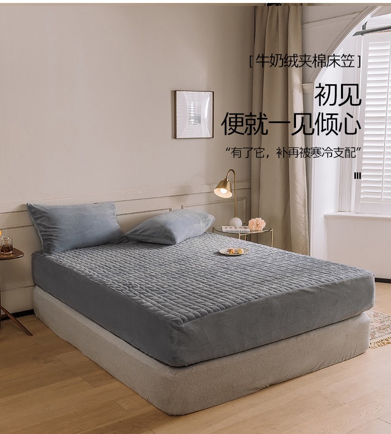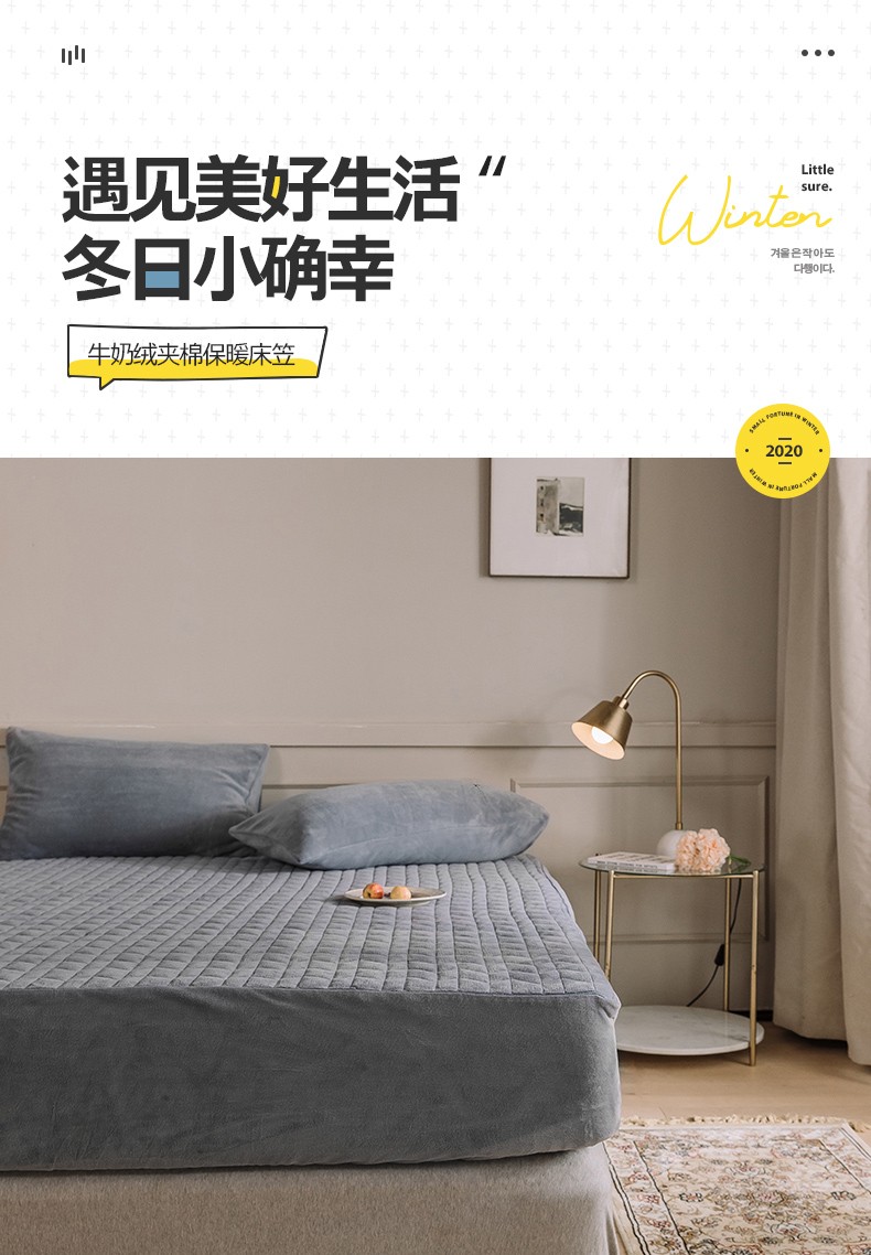 法芙娜家纺 秋冬加厚牛奶绒夹棉床笠 吸湿排汗保暖 银川灰