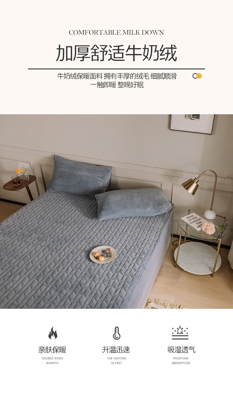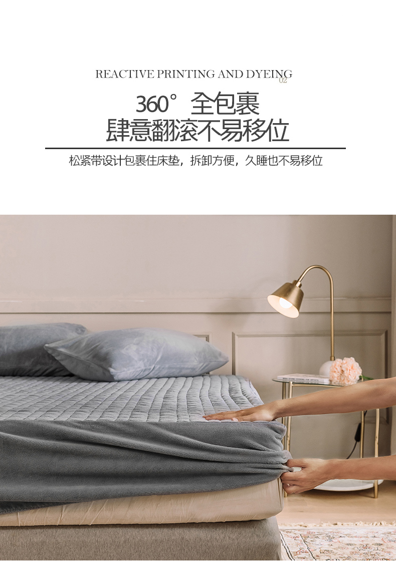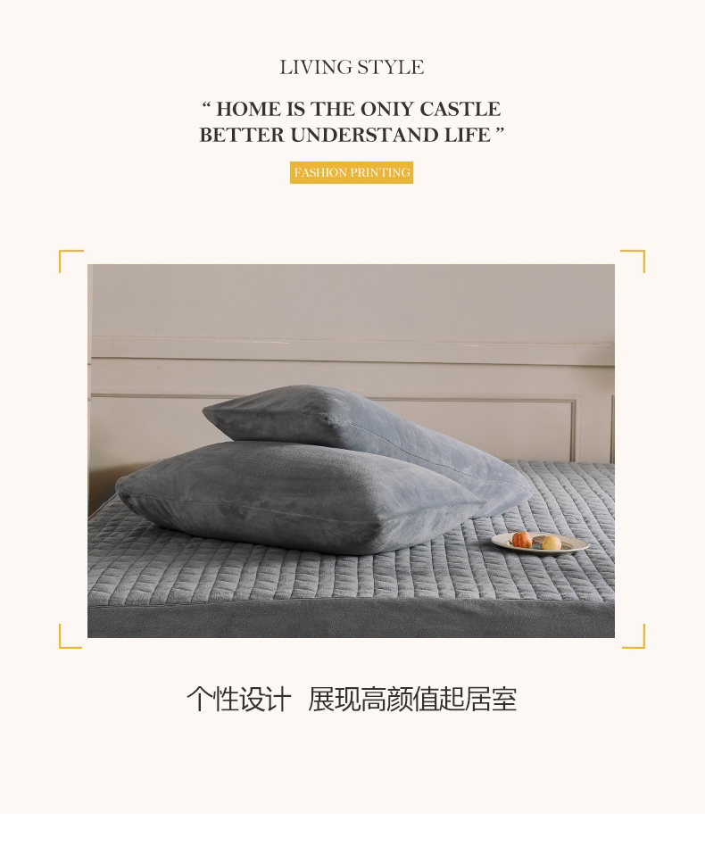 法芙娜家纺 秋冬加厚牛奶绒夹棉床笠 吸湿排汗保暖 银川灰