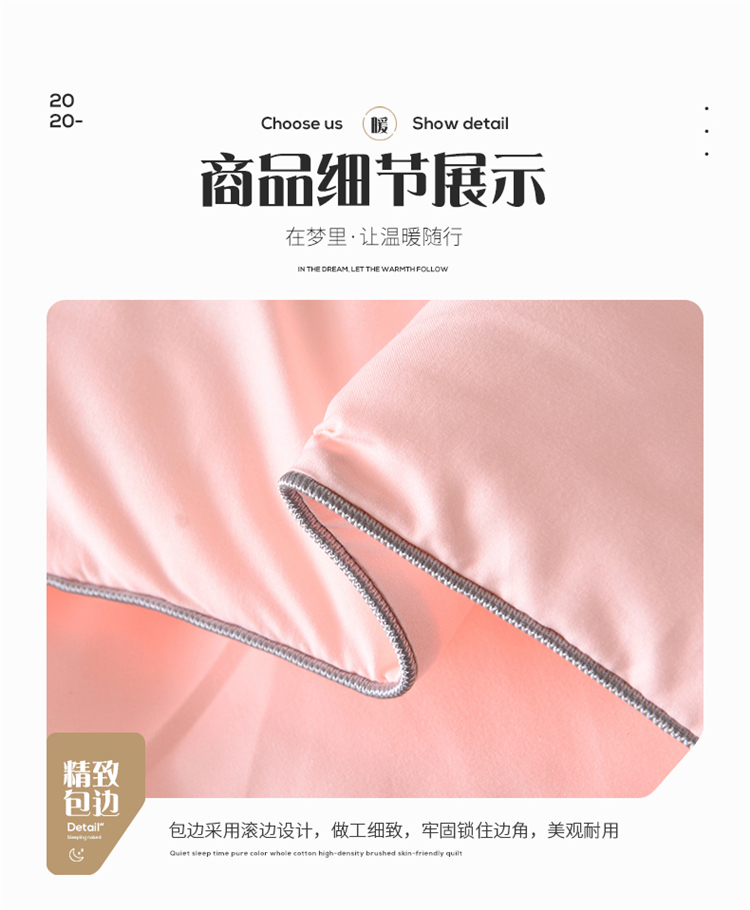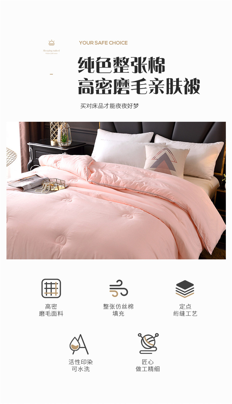 商品名称:德芙2020新款纯色整张棉高密磨毛亲肤被 粉玉色