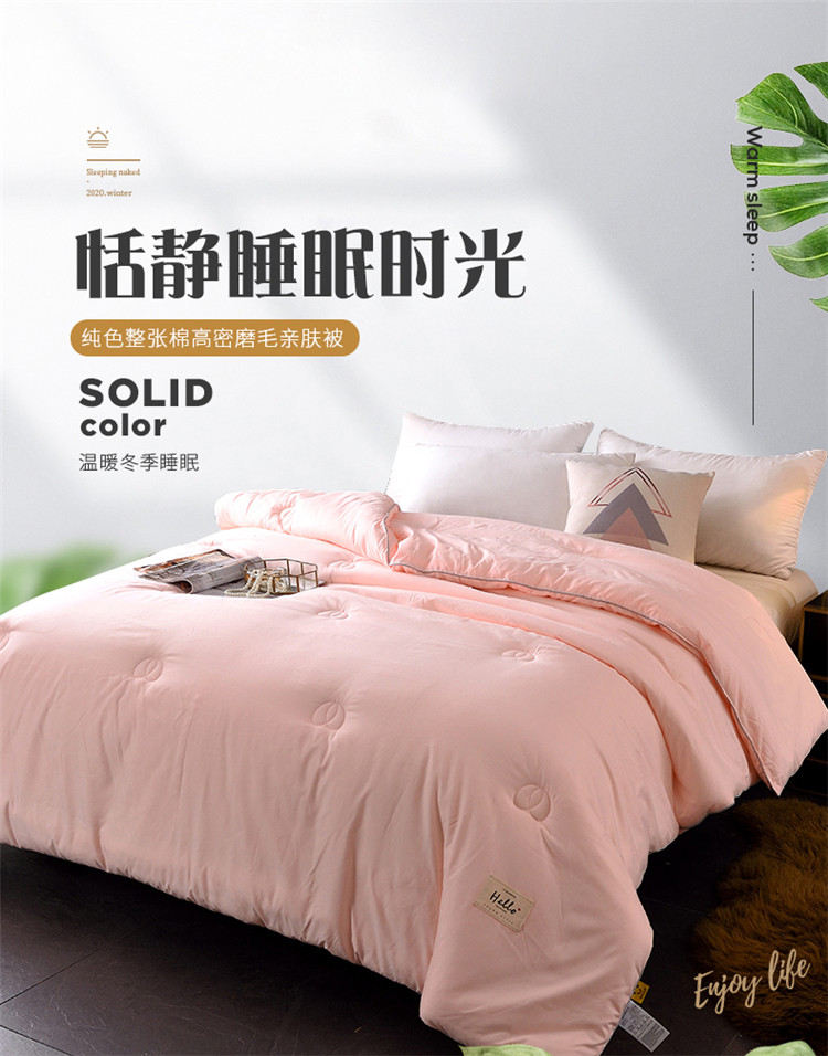 德芙2020新款纯色整张棉高密磨毛亲肤被 粉玉色