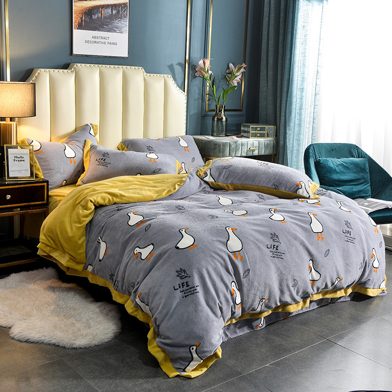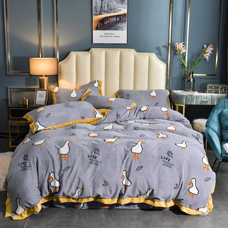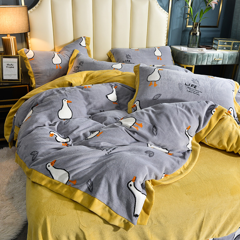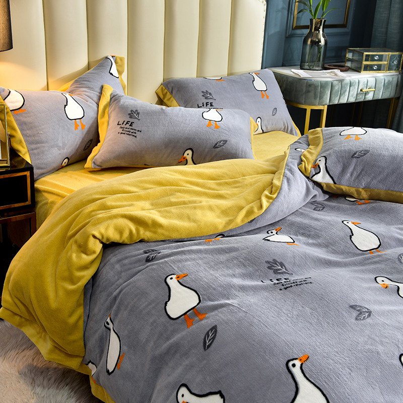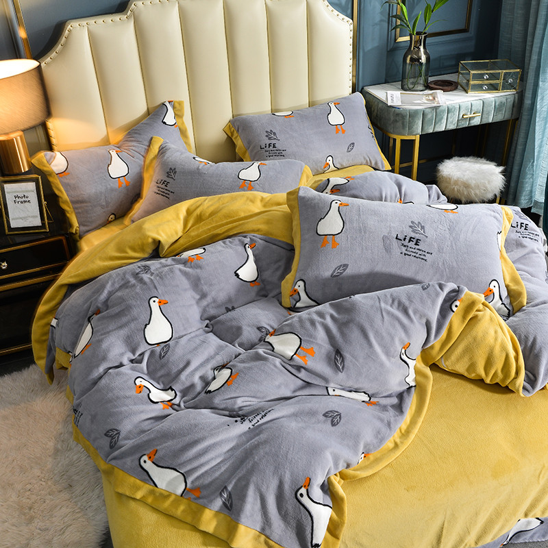 昊川2020新款冬季加厚轻奢工艺款牛奶绒四件套 可达鸭