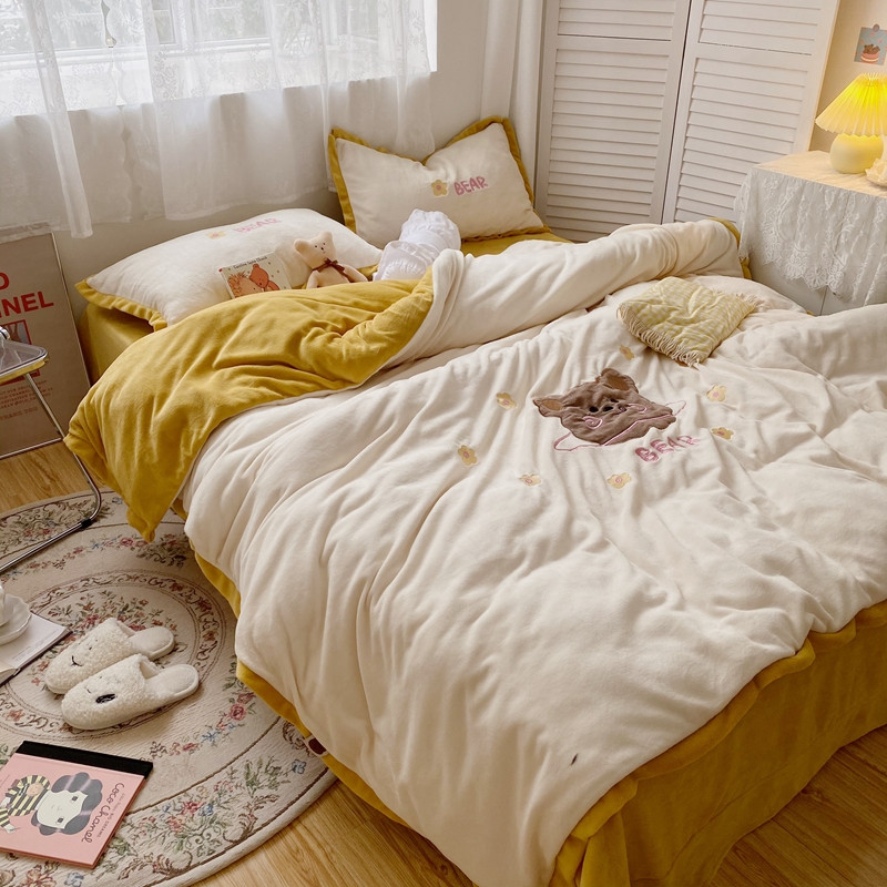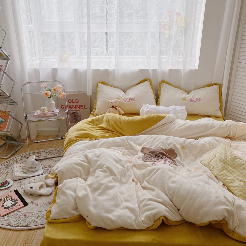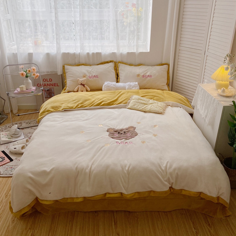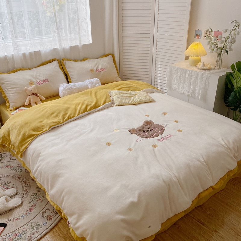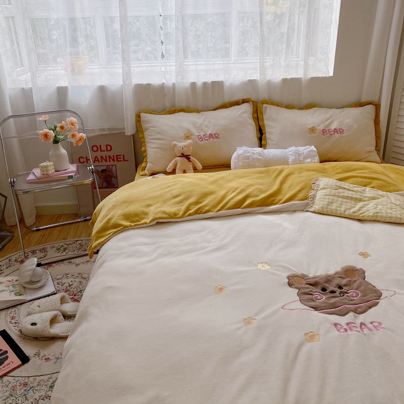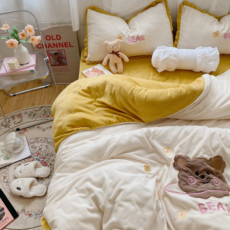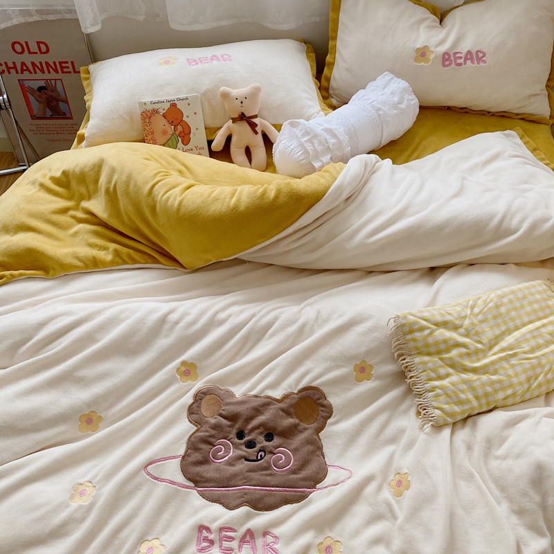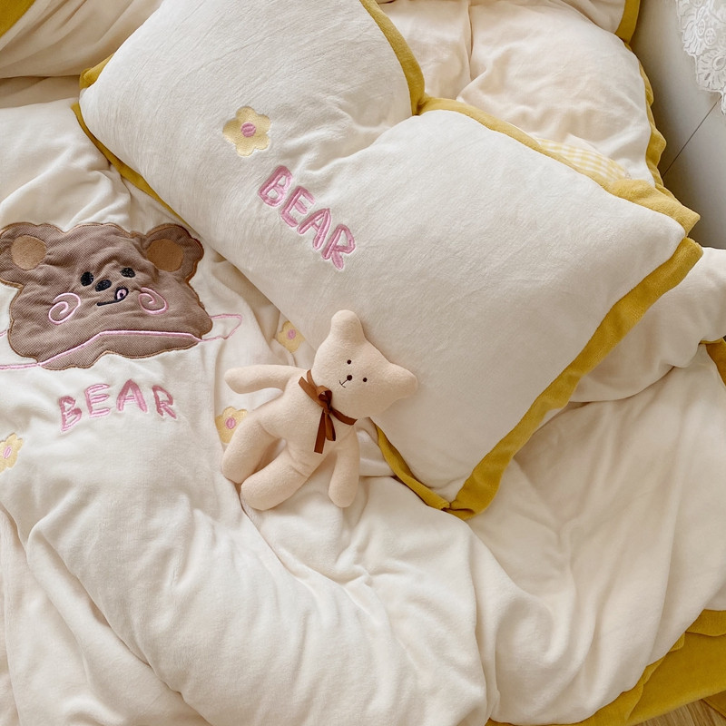 商品名称:星期八2020新款230g双面小熊系列牛奶绒四件套 呆呆熊米