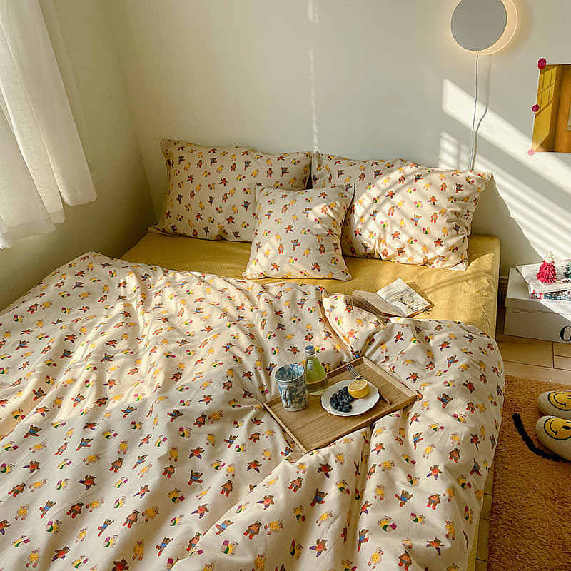 (总)尺素 全棉40支喷气13372韩国ins设计师四件套,花舞,篱落粉,篱落黄,落英,派对,童趣,涂鸦,小粉兔,雪地熊