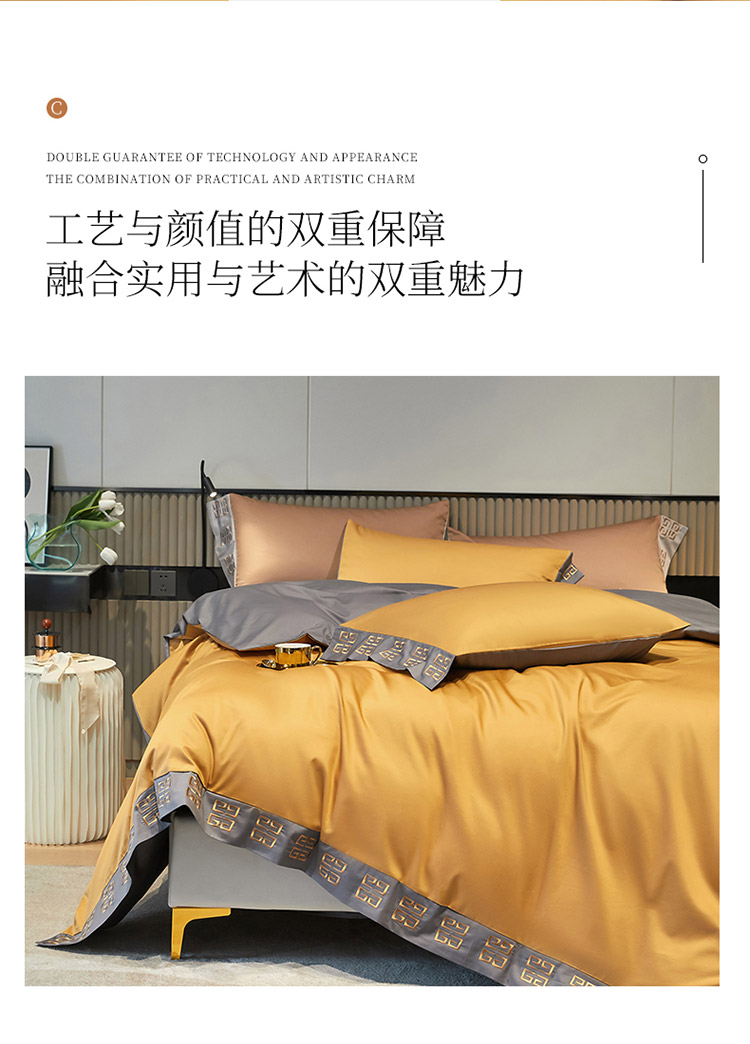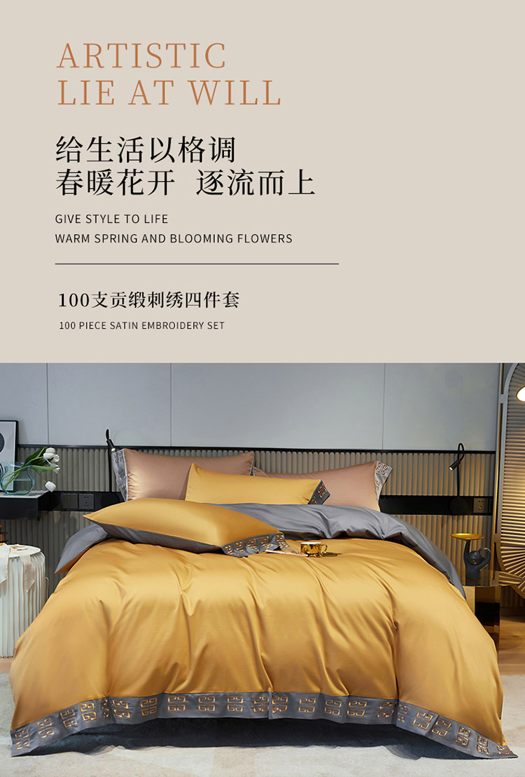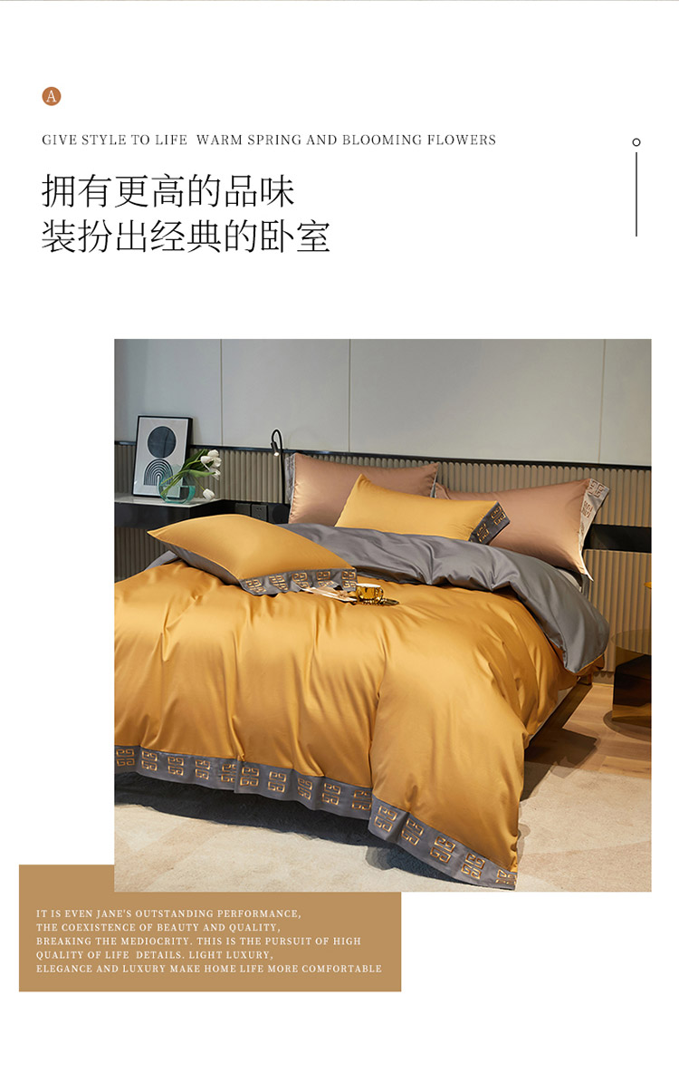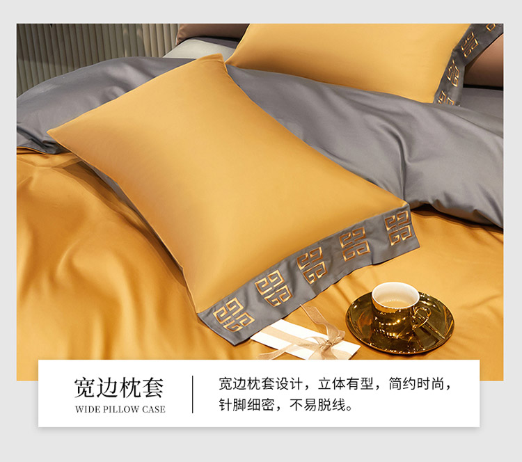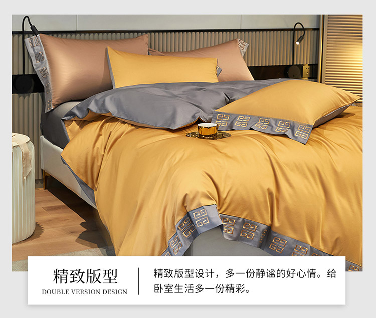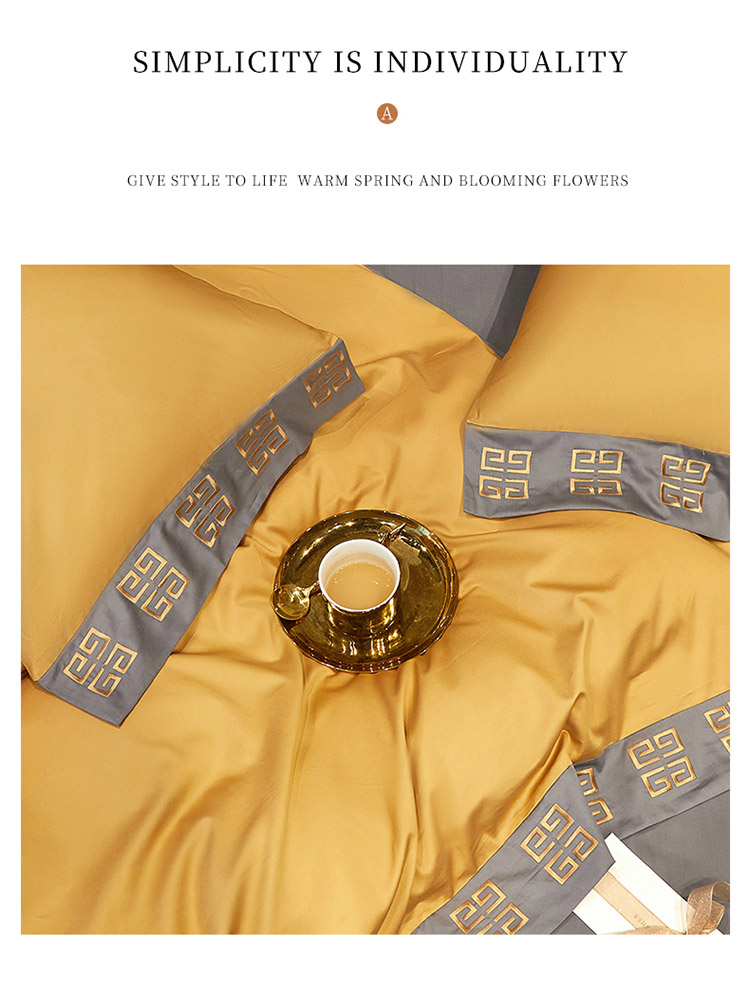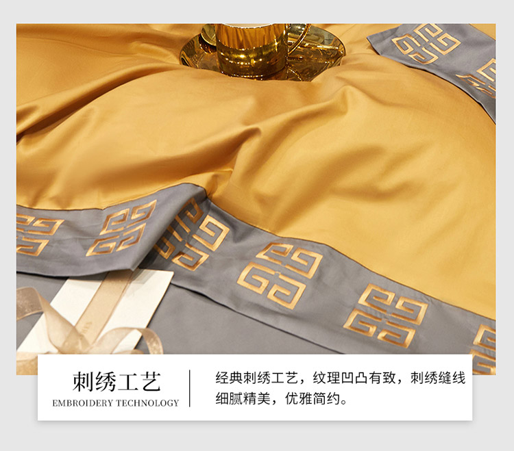 商品名称:爱缦2021宫系列100S长绒棉澳棉刺绣四件套古金黄-帝都灰