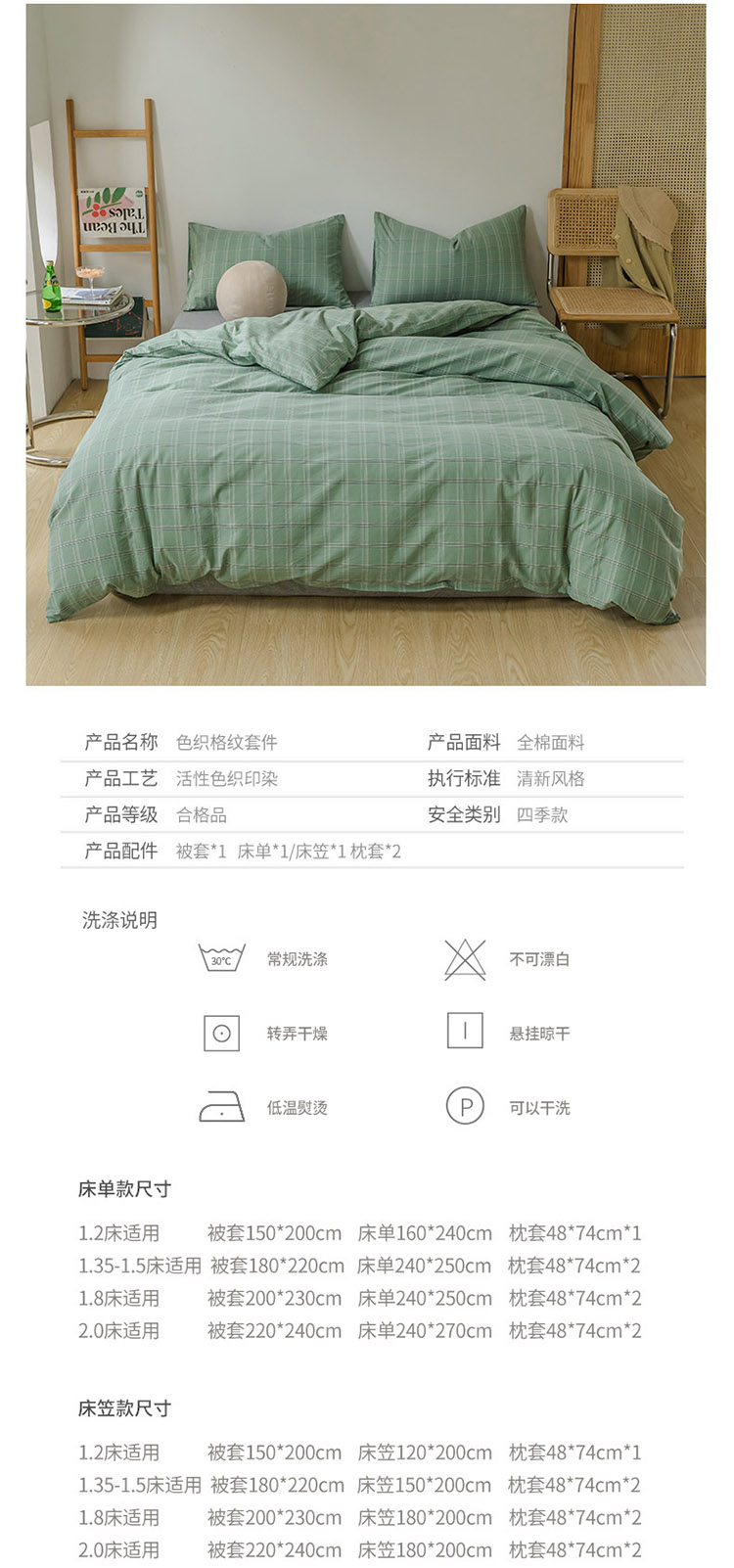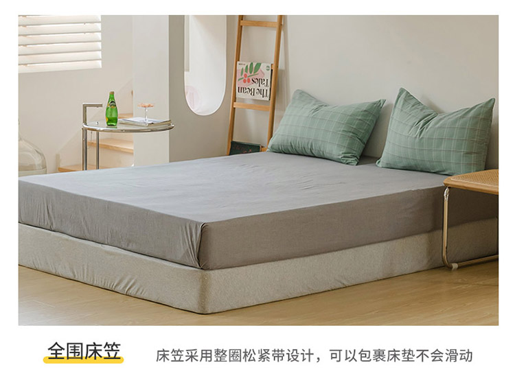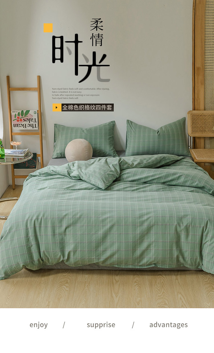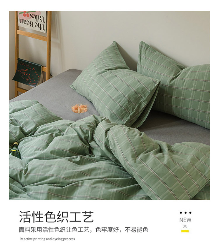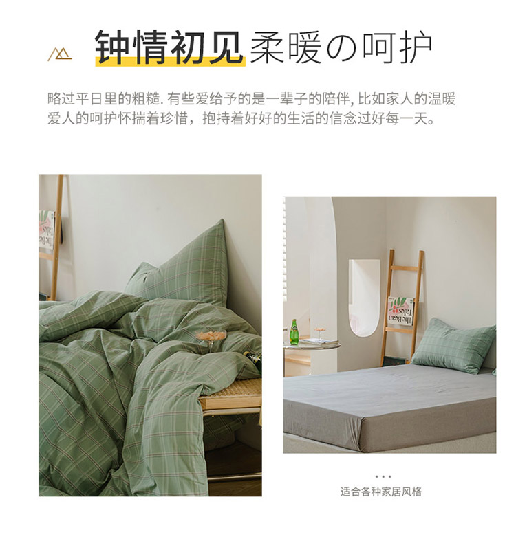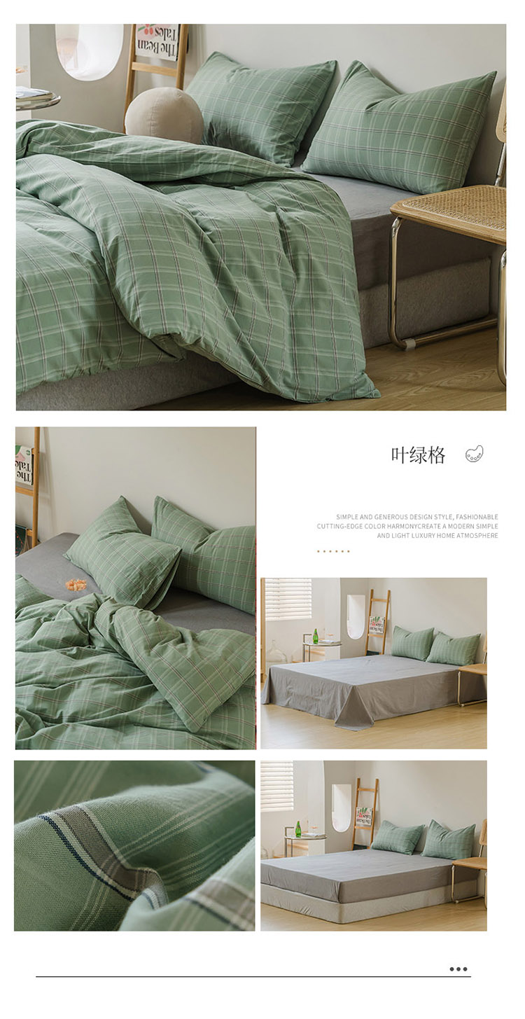 当前位置: 91家纺网 > 商品网购 > 床品套件 > 四件套 > 水洗棉四件套 > 柠萌家居 2021新款无印风格良品色织水洗棉四件套 叶绿格