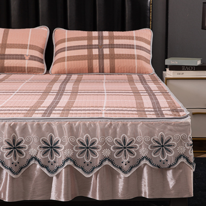 纽缦家纺 2021新款凉感丝乳胶凉席可拆卸床裙款三件套 诗情话意