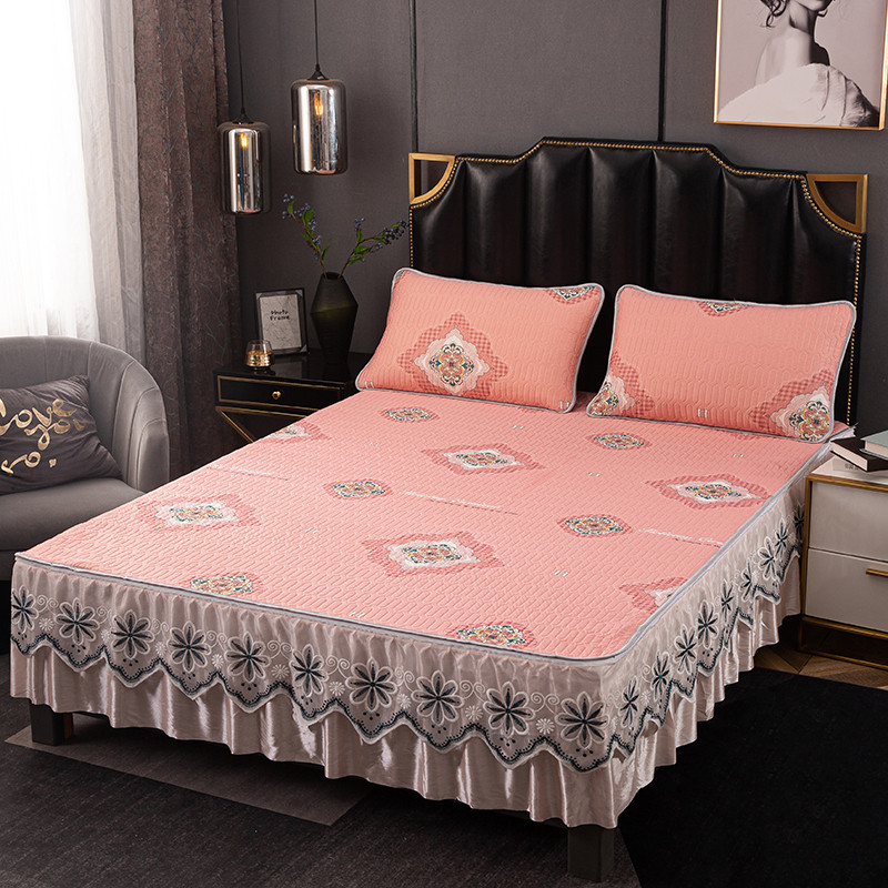商品名称:纽缦家纺 2021新款凉感丝乳胶凉席可拆卸床裙款三件套 英伦风情-豆沙