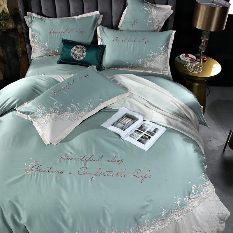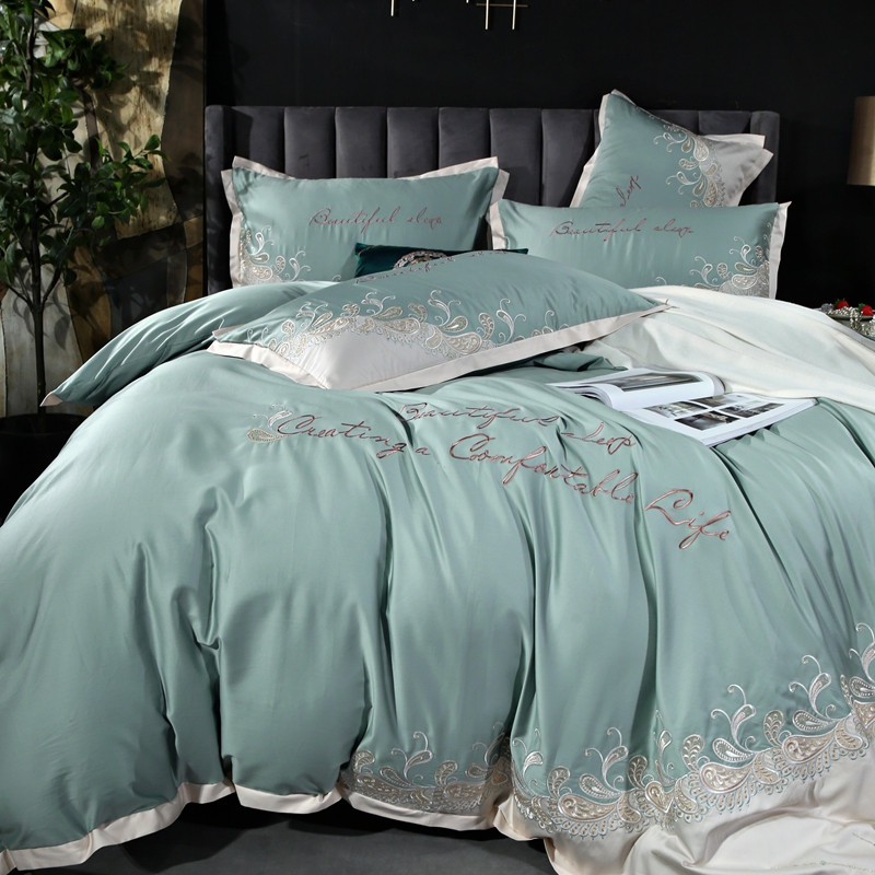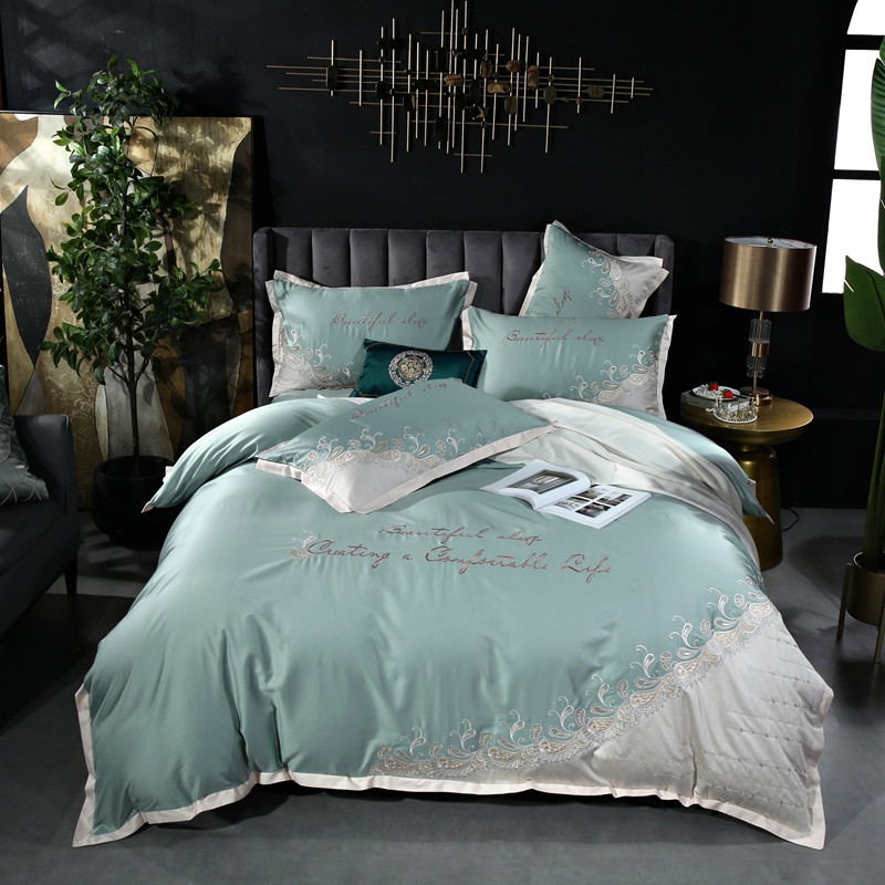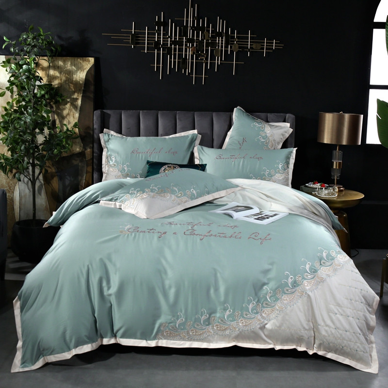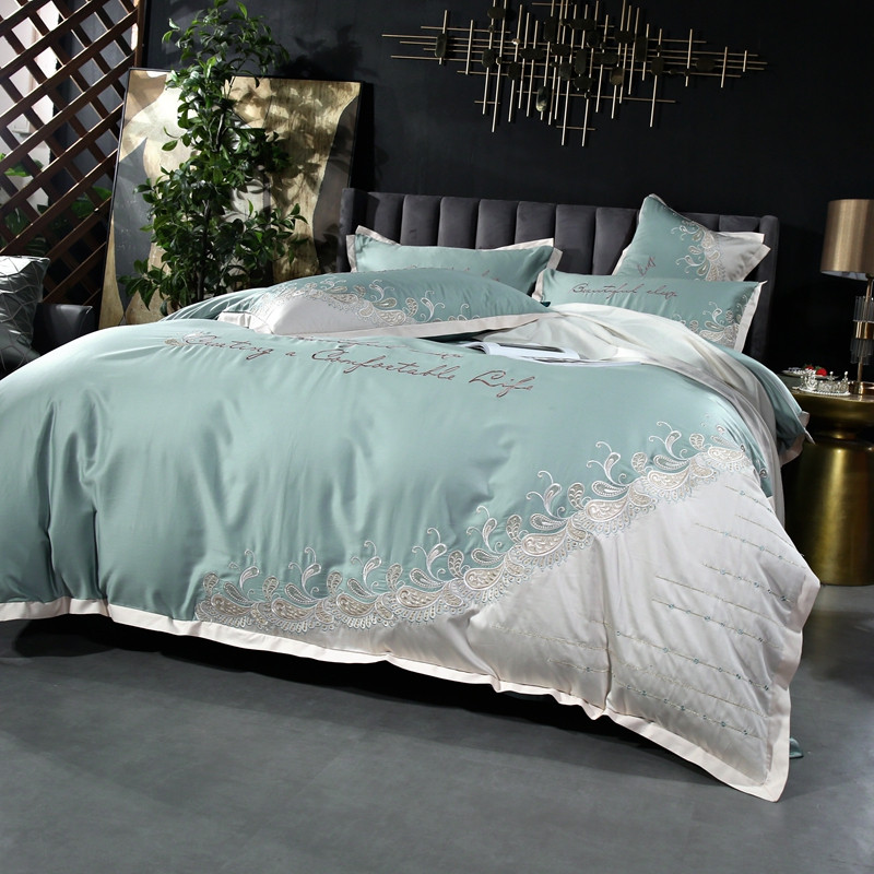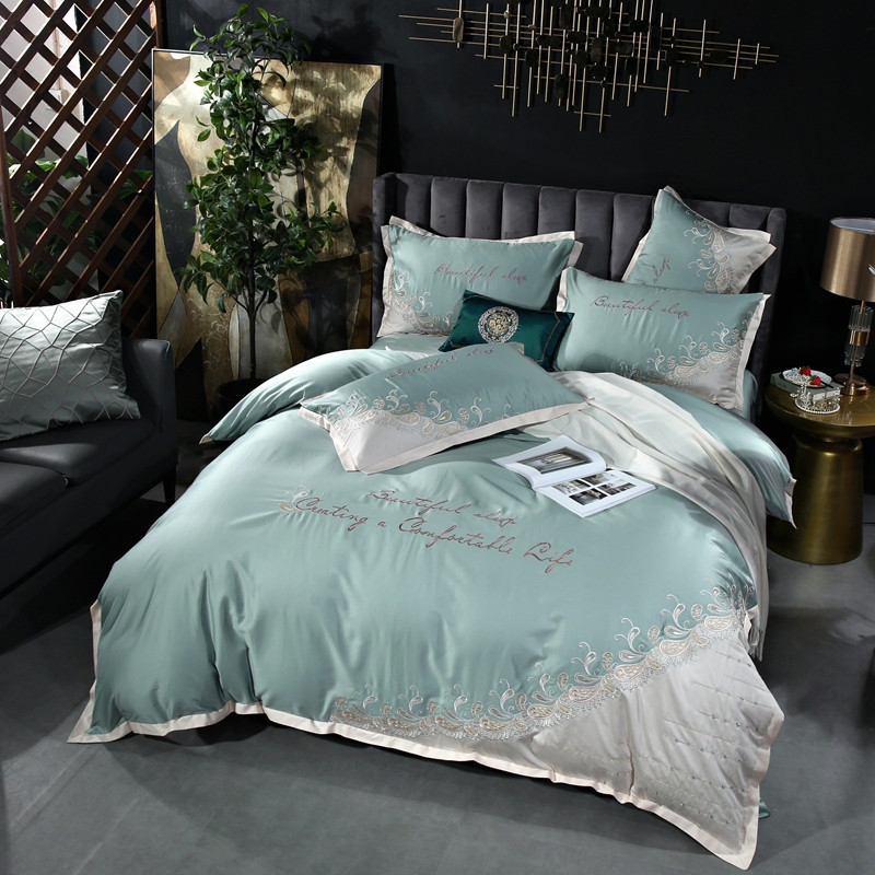 商品名称:星尚家纺2021新款100支长绒棉曼莎四件套 湖泊兰