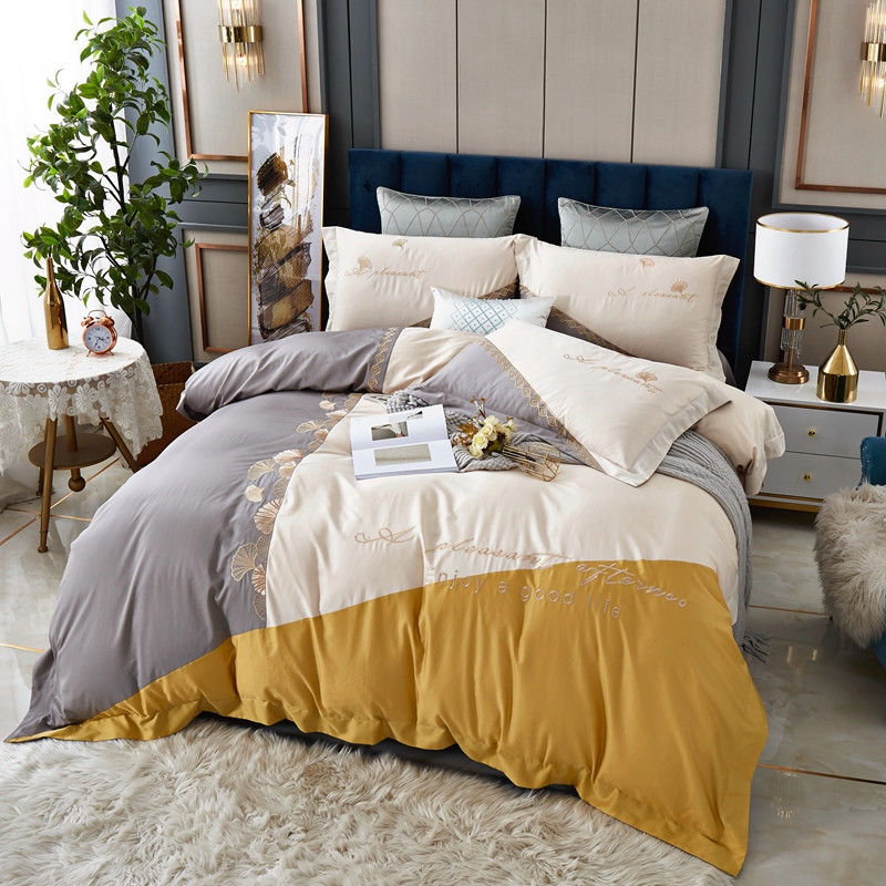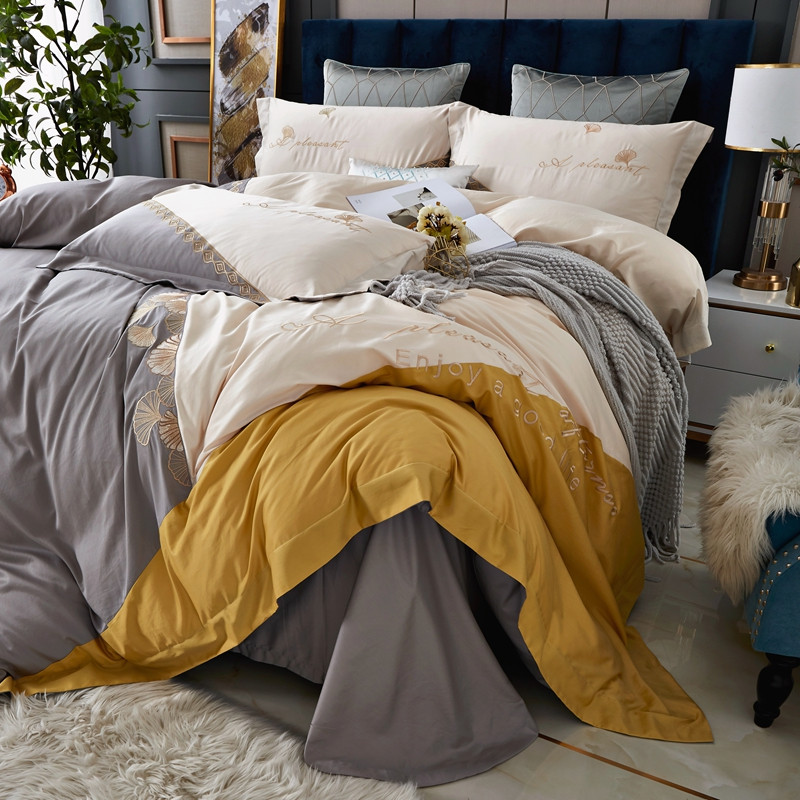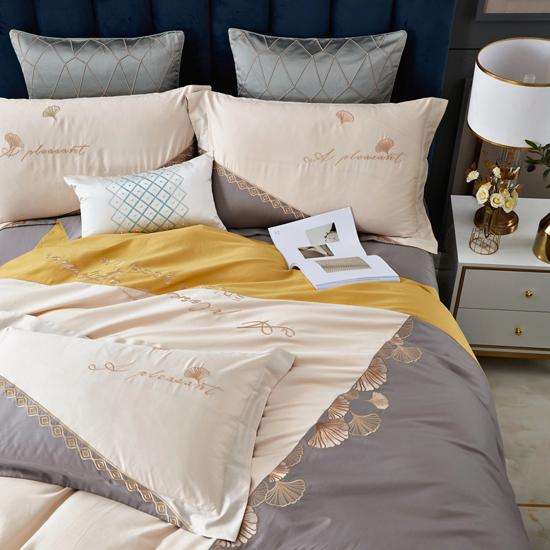 星尚家纺 2021新款100支长绒棉叶韵四件套 姜黄