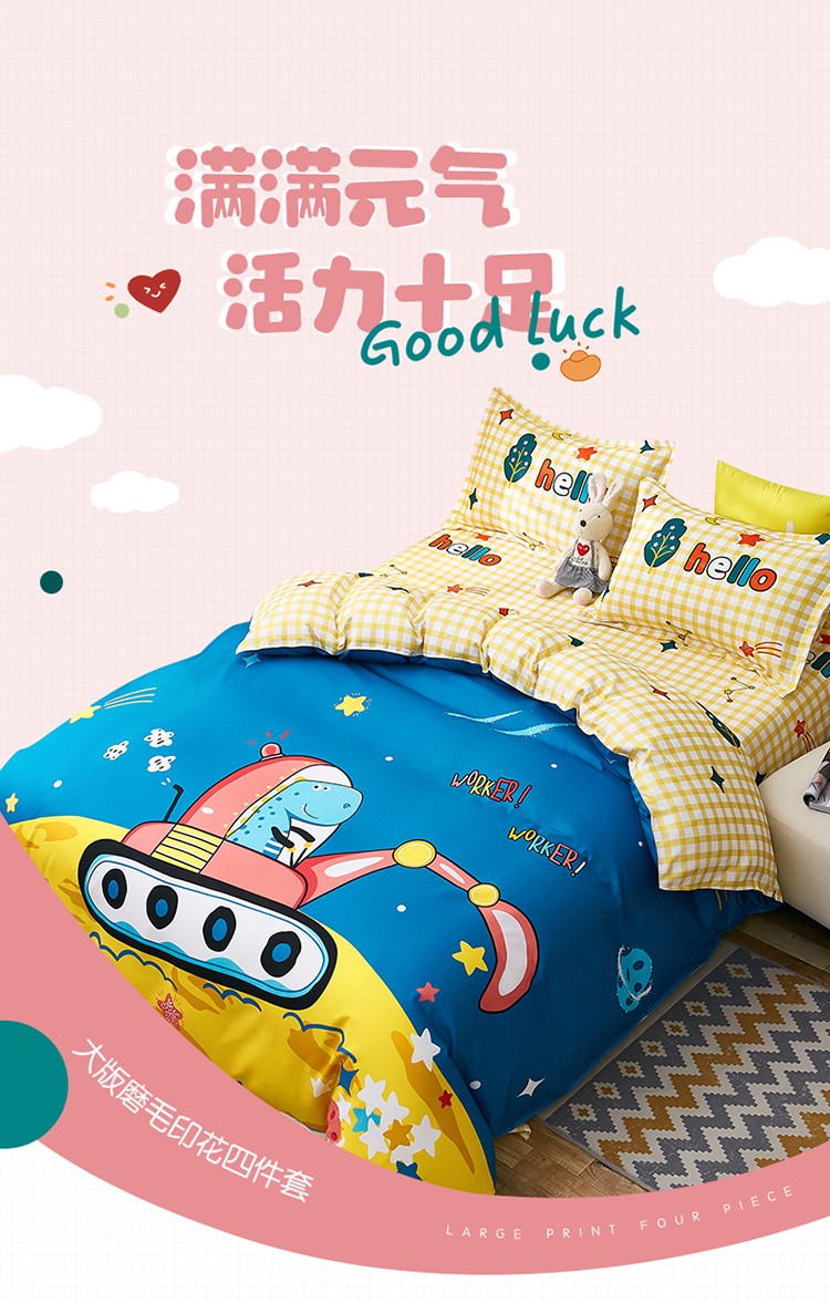 KT猫直营店 2024新款大版磨毛印花四件套 工程队,工程队,快乐伙伴,梦想恐龙,你好皮卡,太空挖掘机,小霸王恐龙,小公举,小宇宙恐龙,星星皮卡,幸运女孩,元气少女