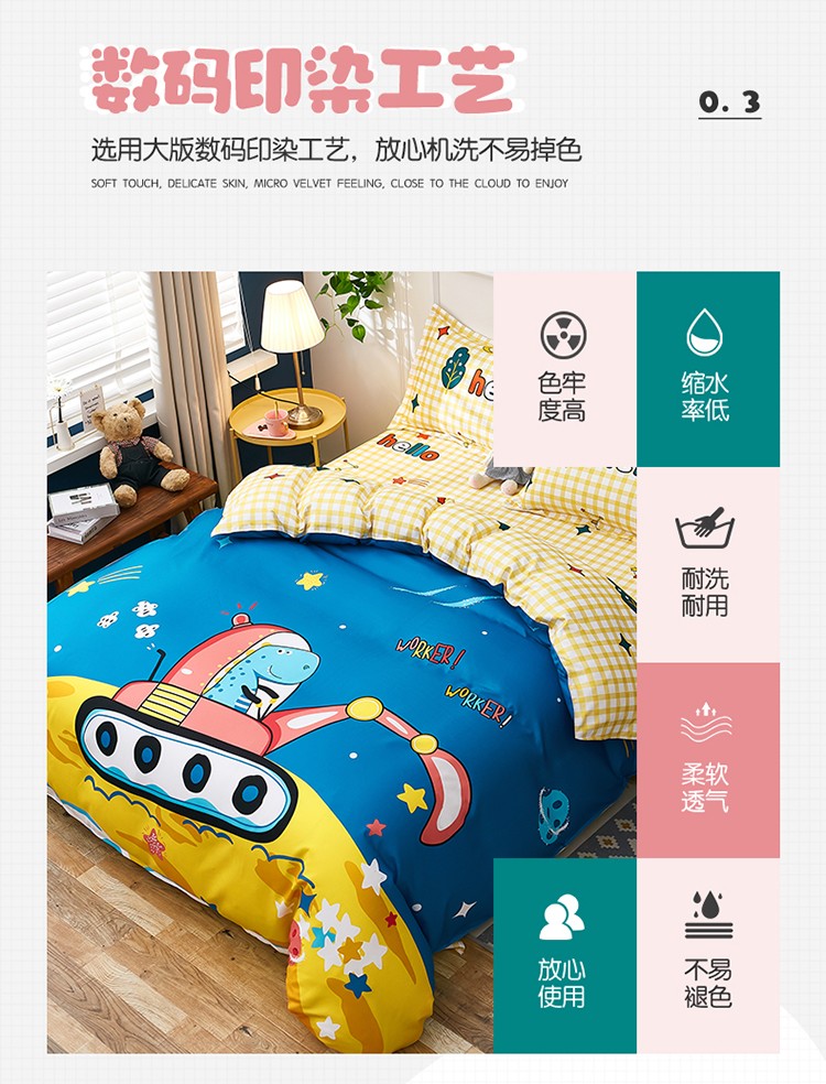 商品名称:KT猫直营店 2024新款大版磨毛印花四件套 太空挖掘机