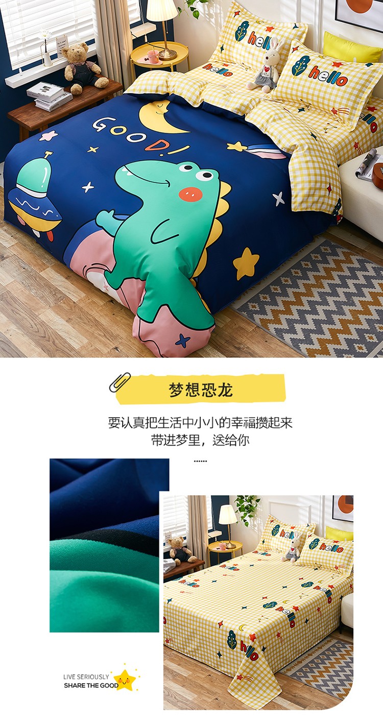 (总)KT猫直营店 2024新款大版卡通四件套新增花型,梦想恐龙,小霸王恐龙,宇宙英雄,不想上学