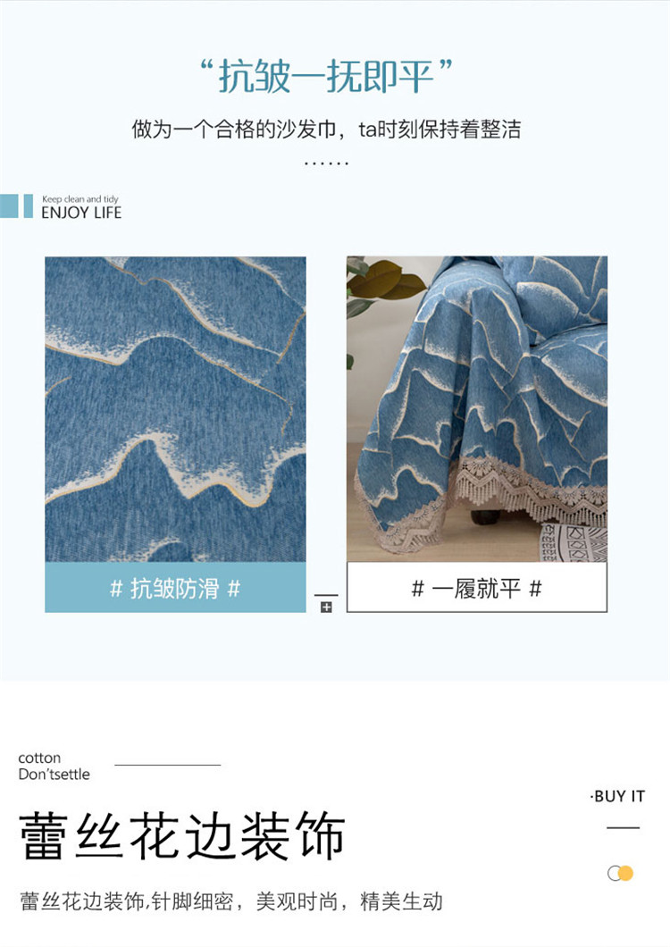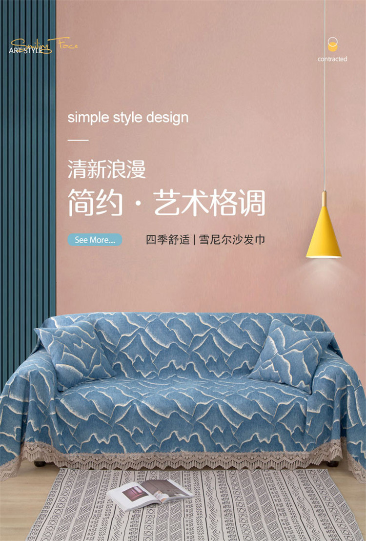 当前位置: 91家纺网 > 商品网购 > 居家布艺 > 坐垫/椅垫/沙发垫 > 沙发垫 > 启博 2022全盖雪尼尔沙发巾沙发垫沙发套沙发罩 山海间-蓝