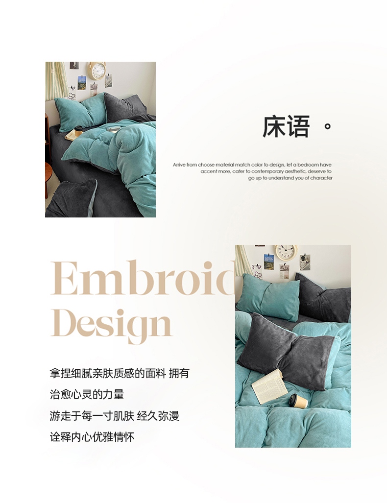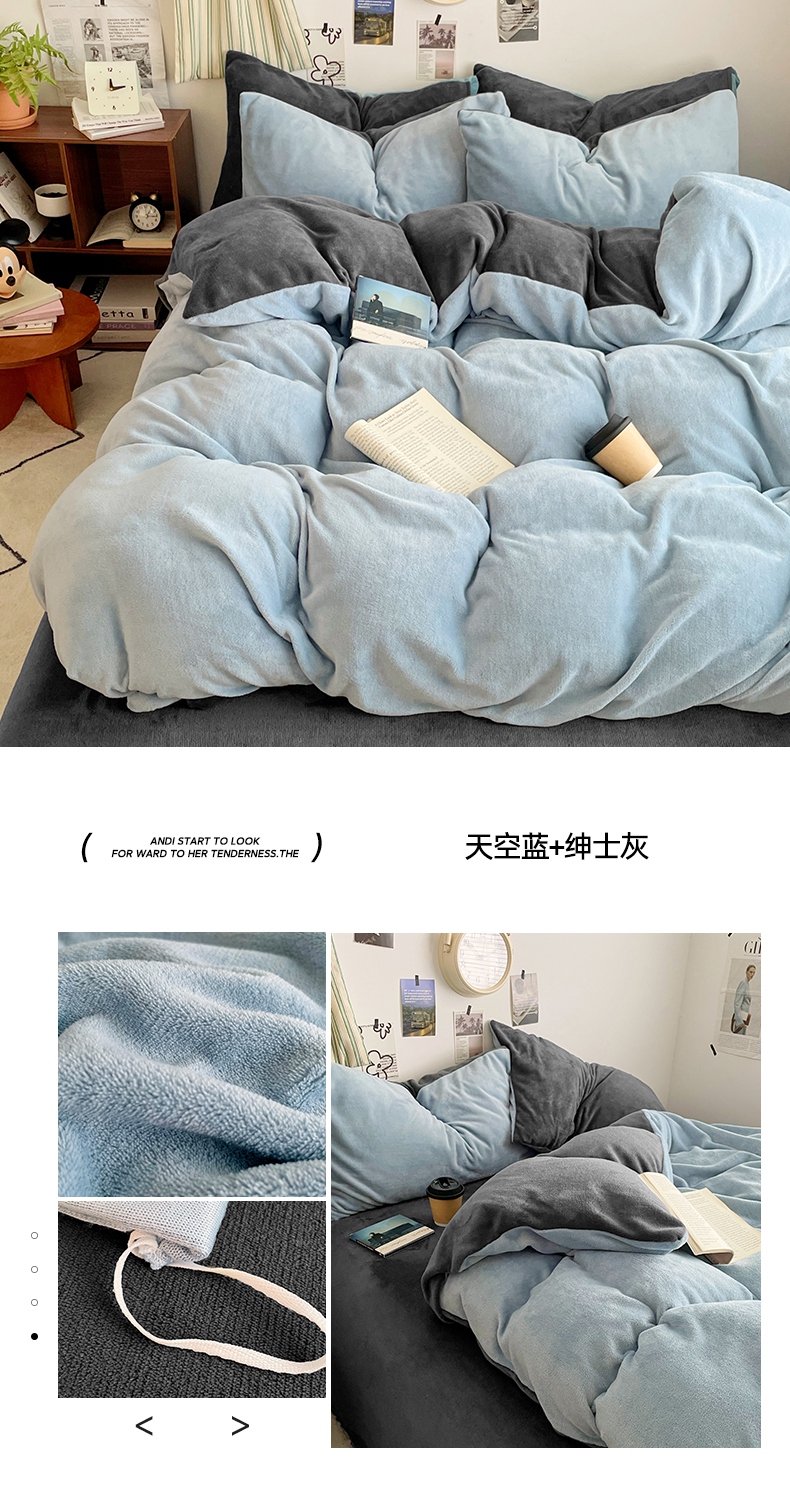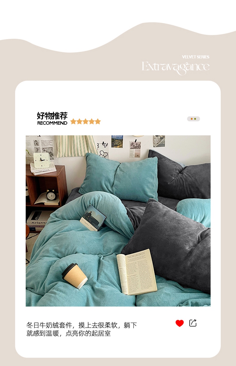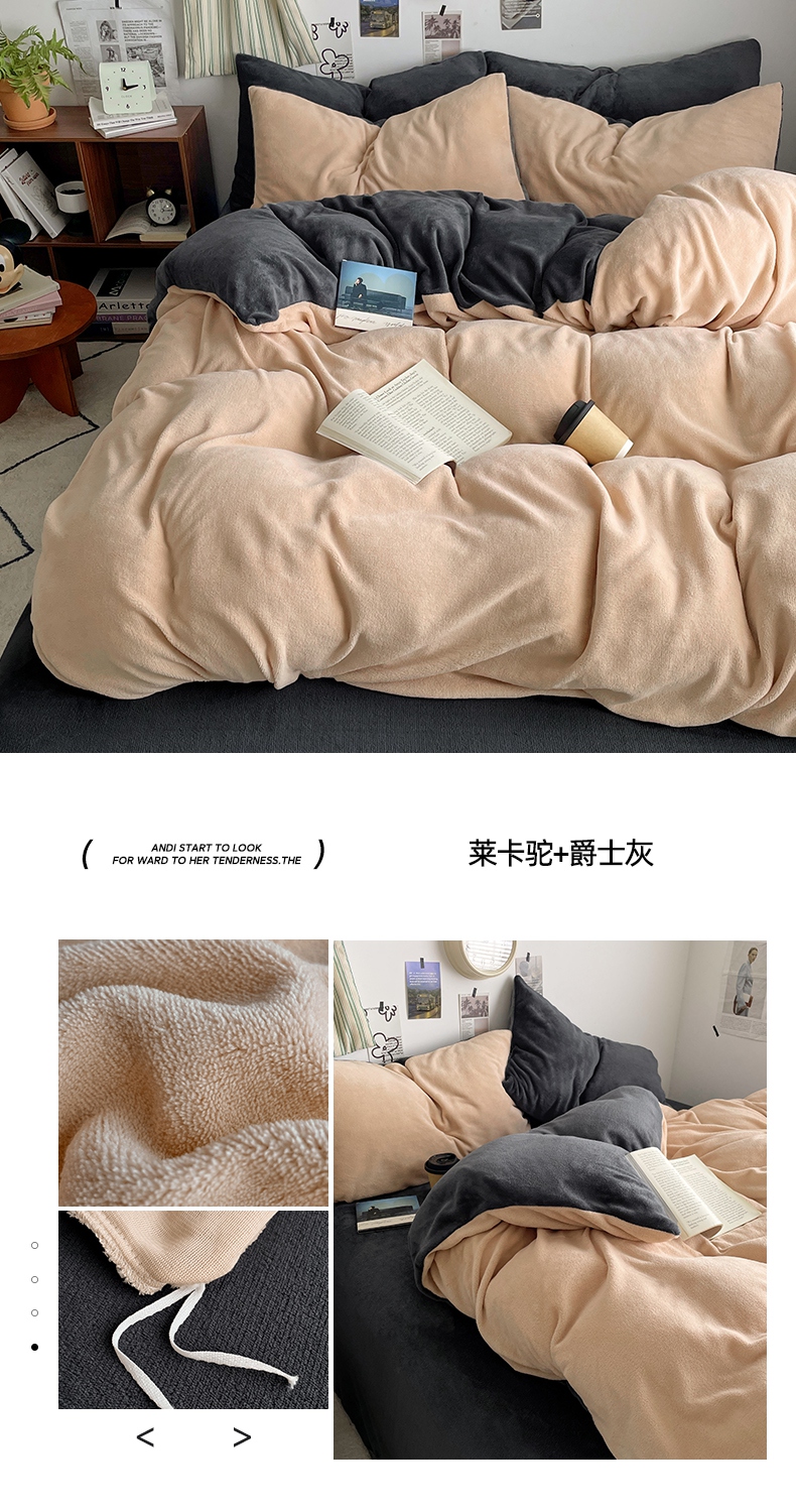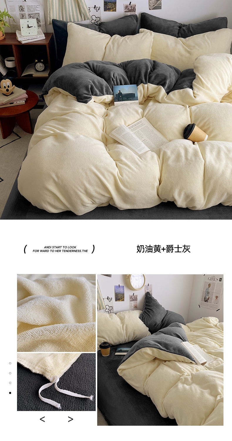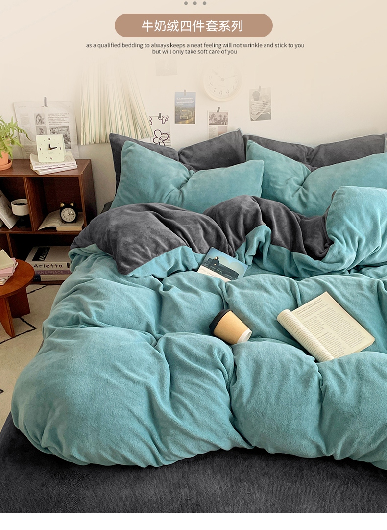 (总)优承佳 2024新款高克重牛奶绒ins风双拼系列四件套单被套