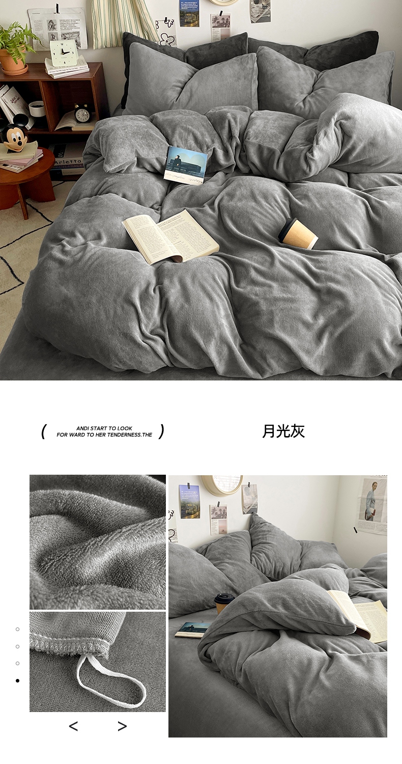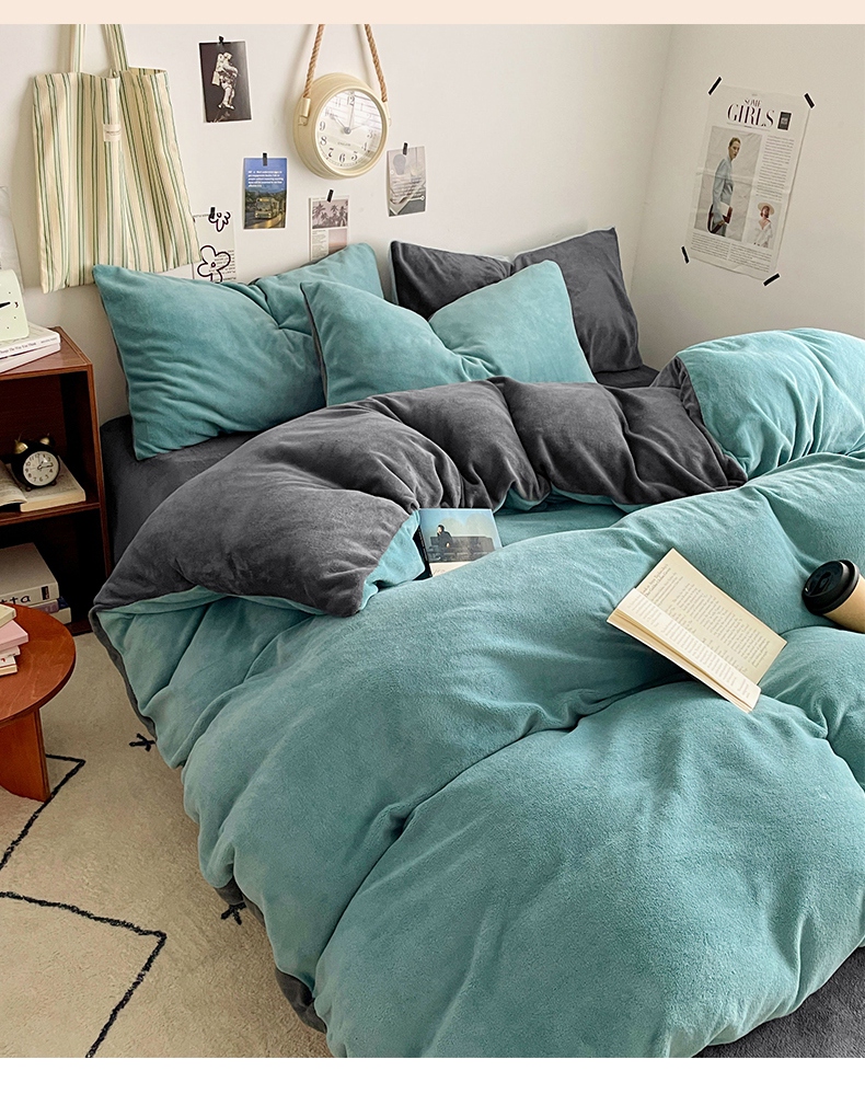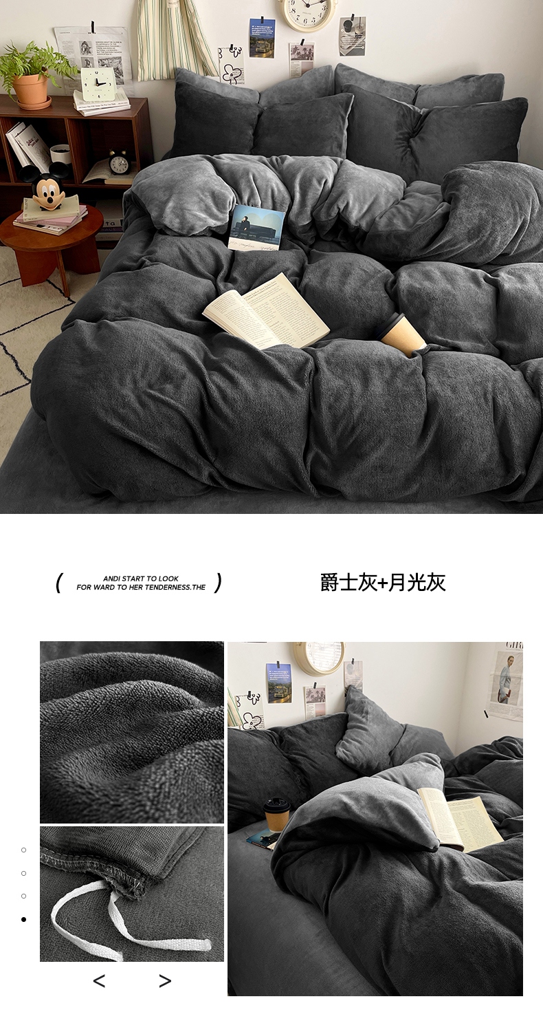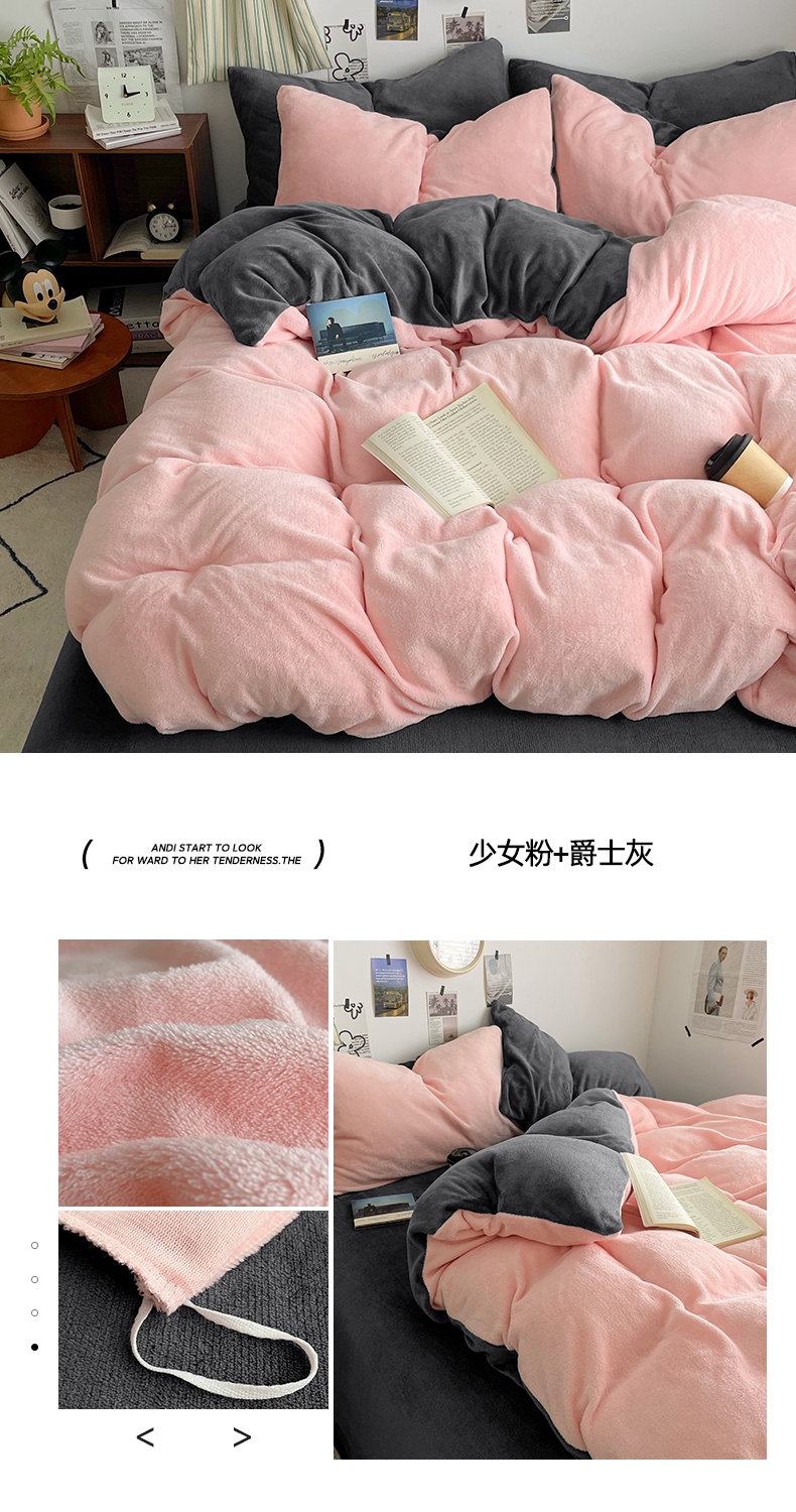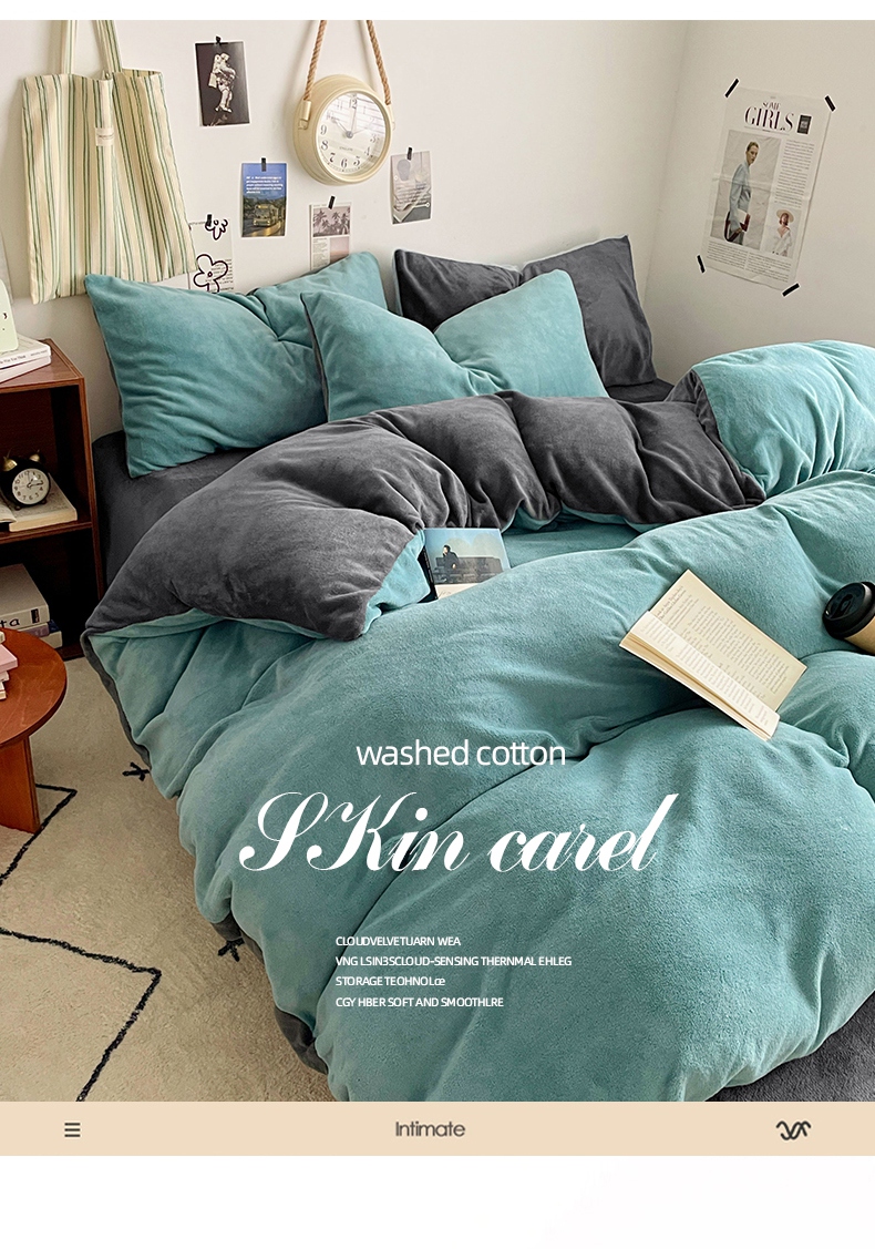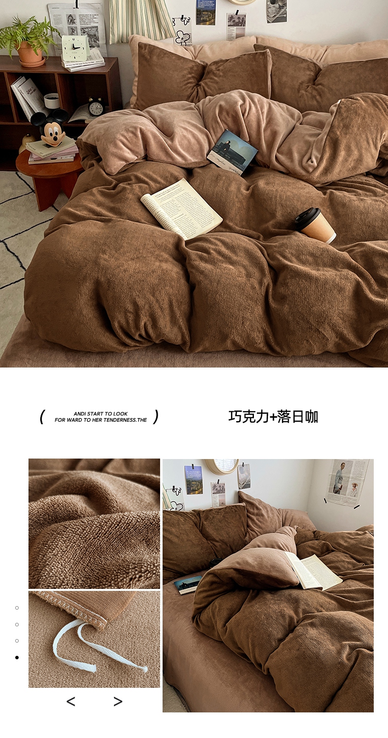 (总)优承佳 2024新款高克重牛奶绒ins风双拼系列四件套单被套