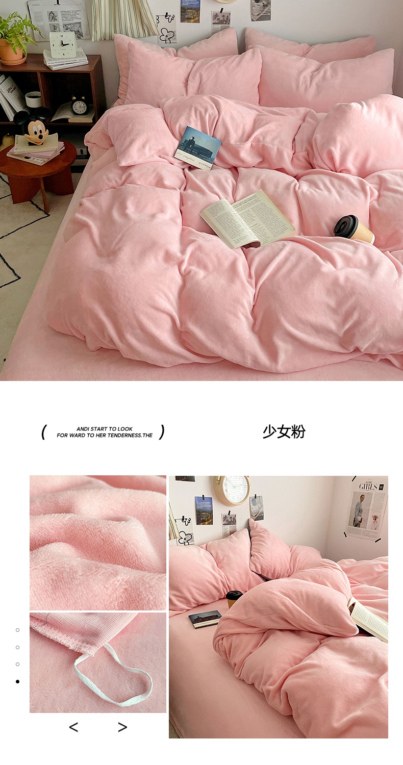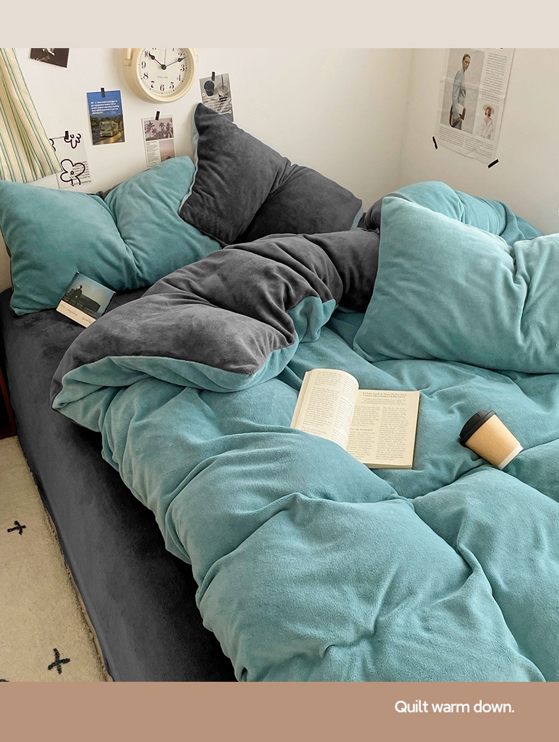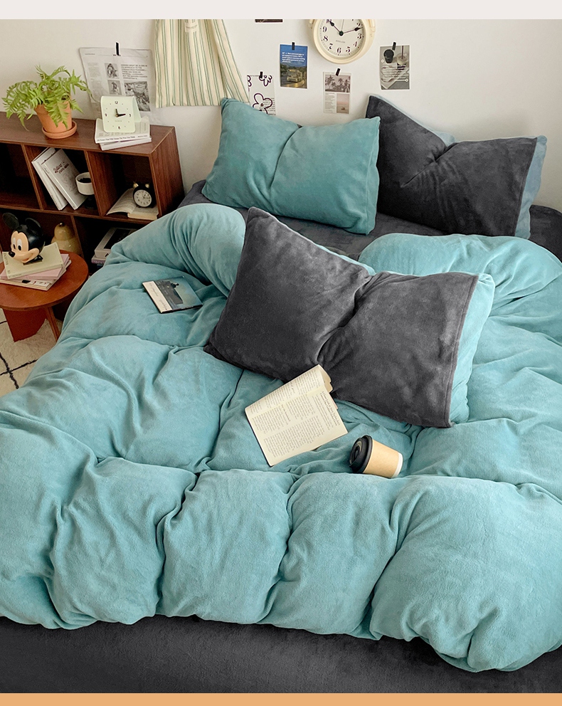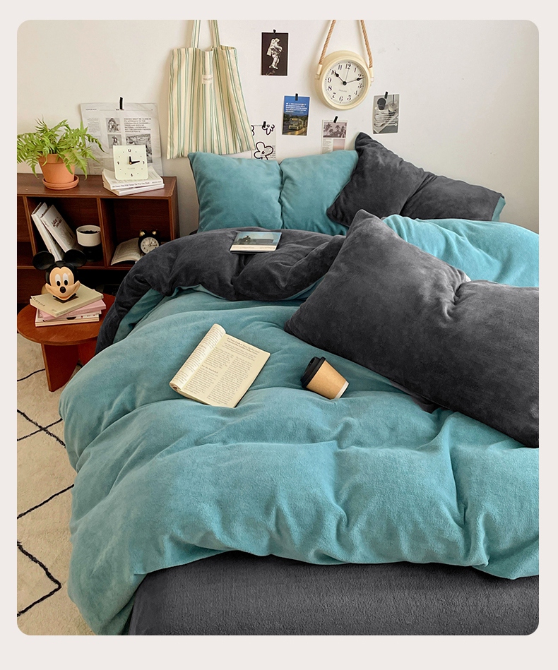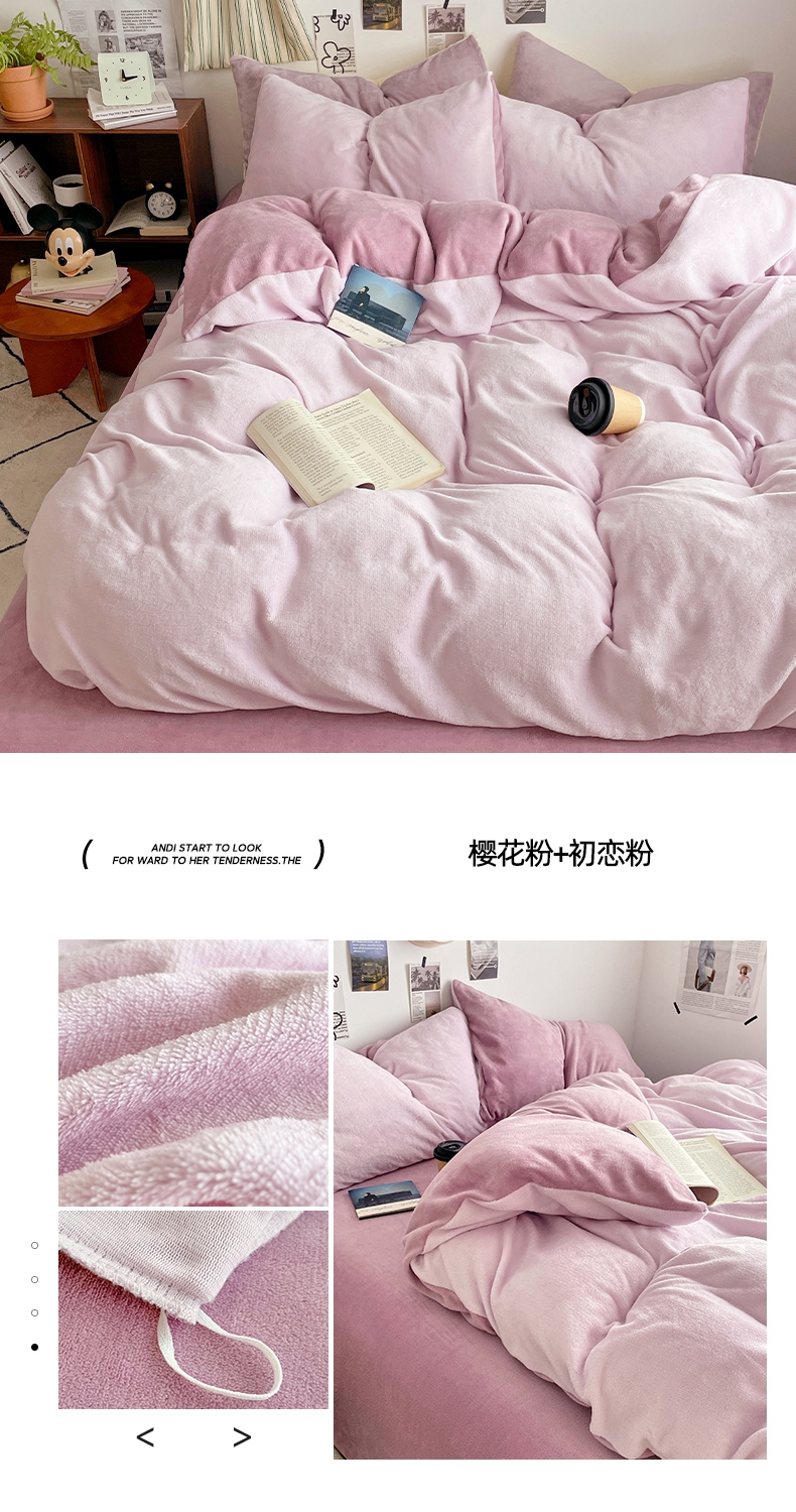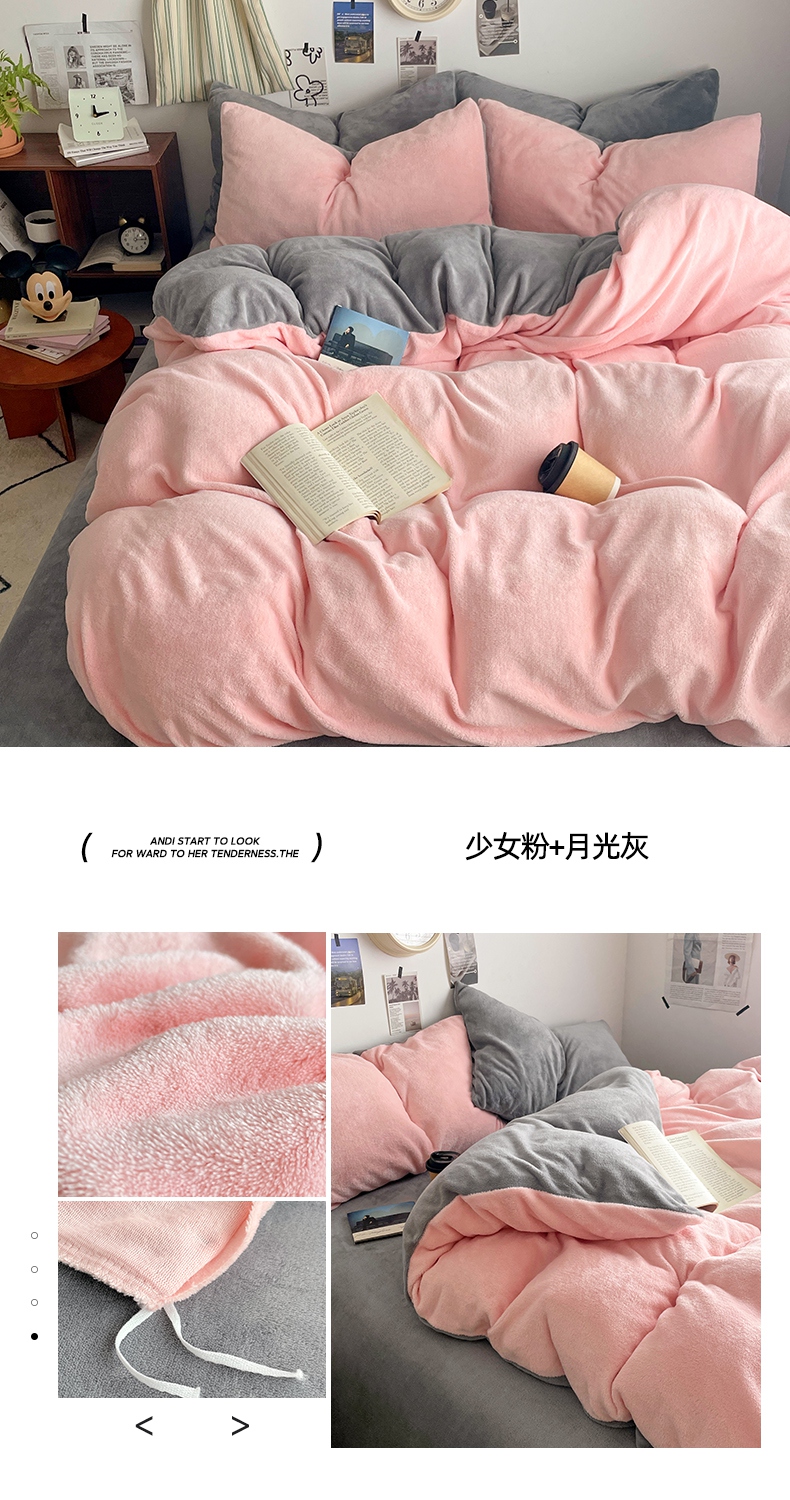 (总)优承佳 2024新款高克重牛奶绒ins风双拼系列四件套单被套