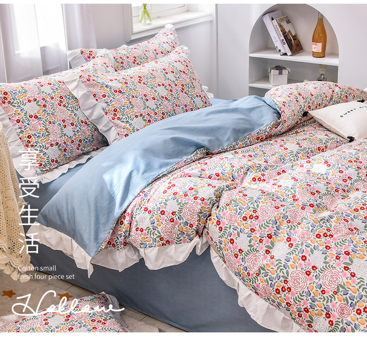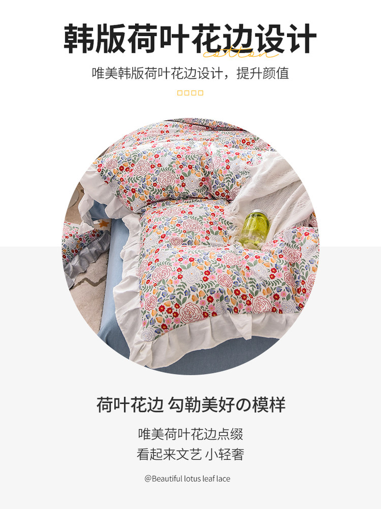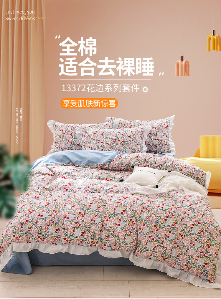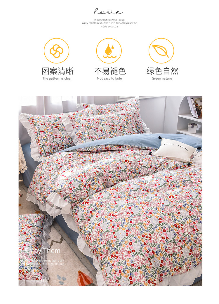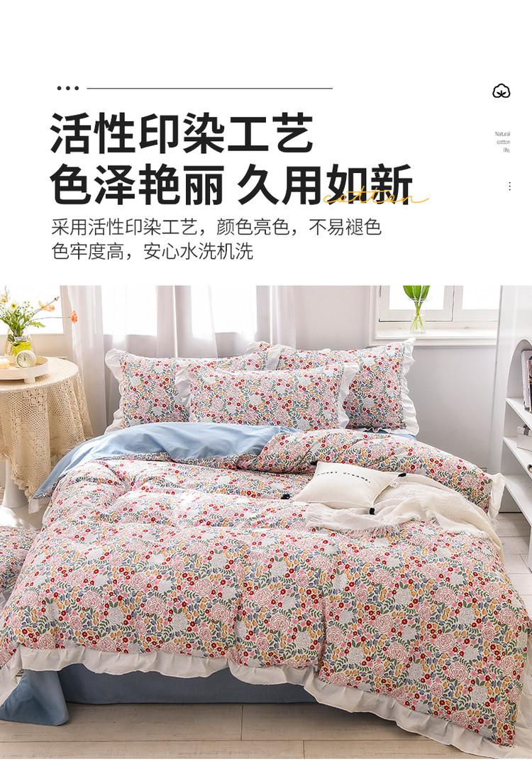 商品名称:优彩 2021新款全棉13372花边系列四件套 玫瑰花园