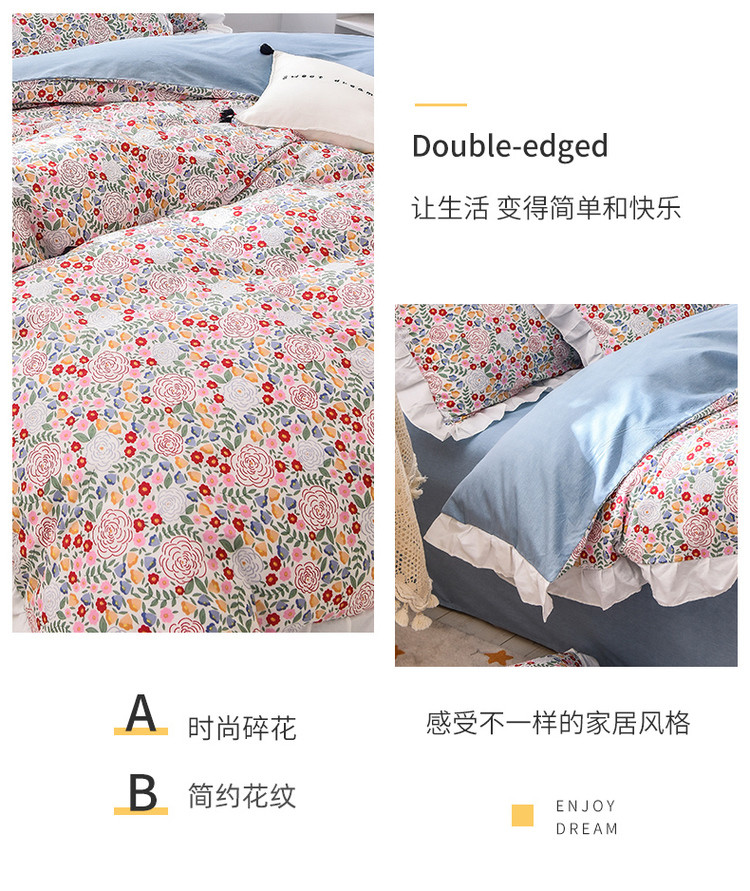 (总)优彩 2025新款全棉双层纱四件套,采花兔,彩蘑菇,初暖,粉小花,花栖,恋花小径,萝蔓,落山秋,南瓜派,清然,瑞莎,小熊派,紫葡萄,花栖-咖