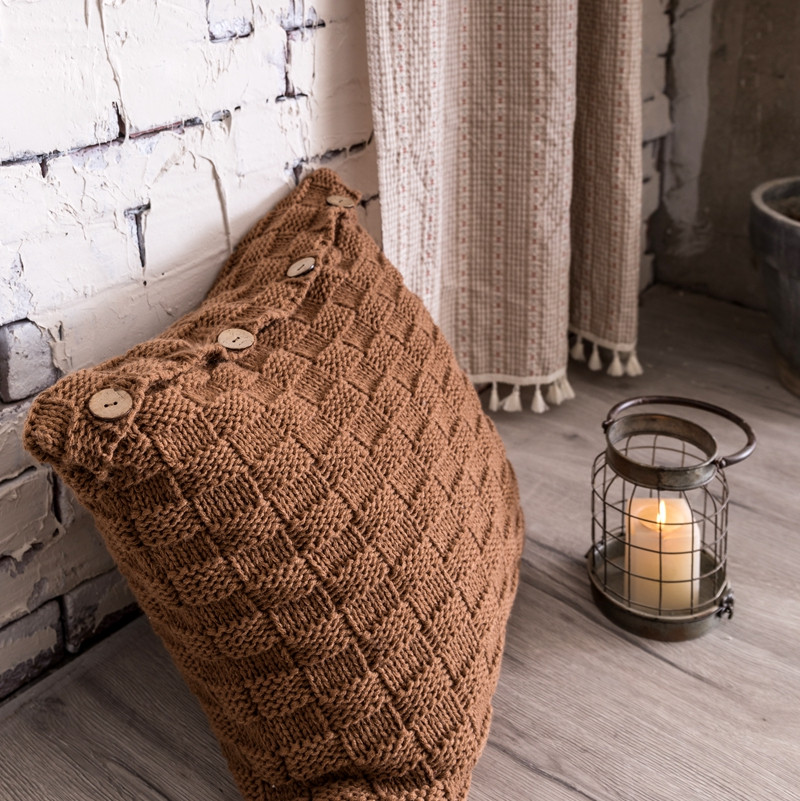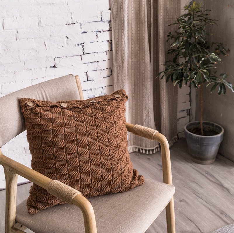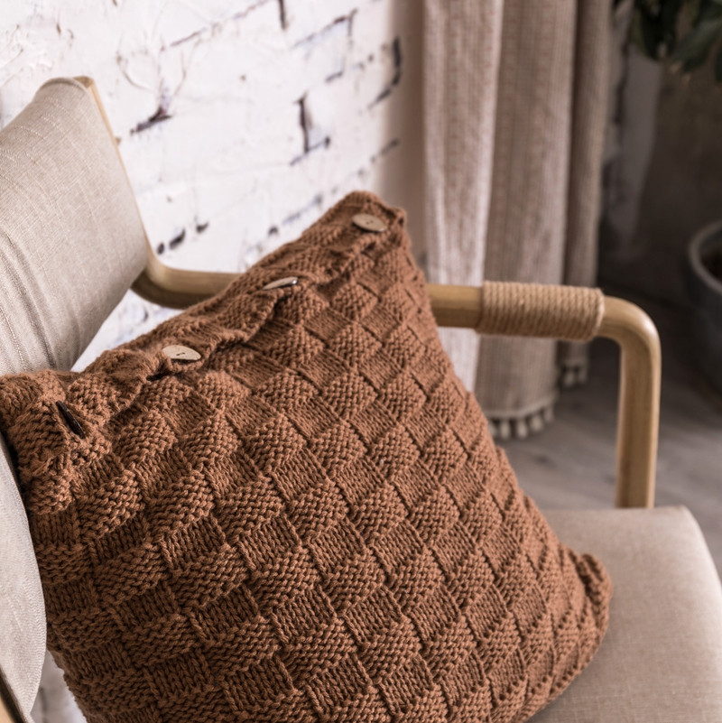 918拾朵家居 2021新款立体方格抱枕 咖色