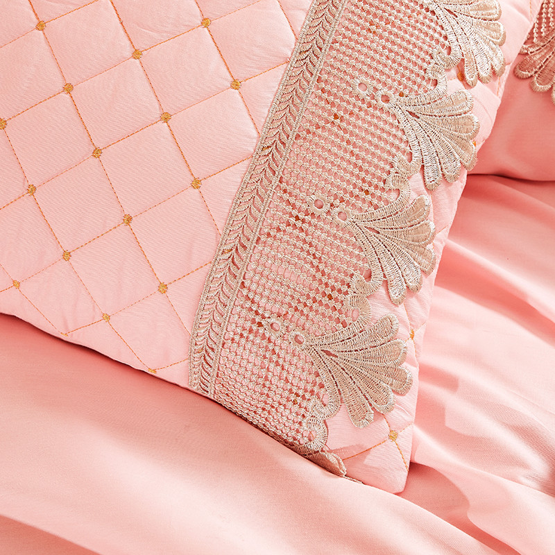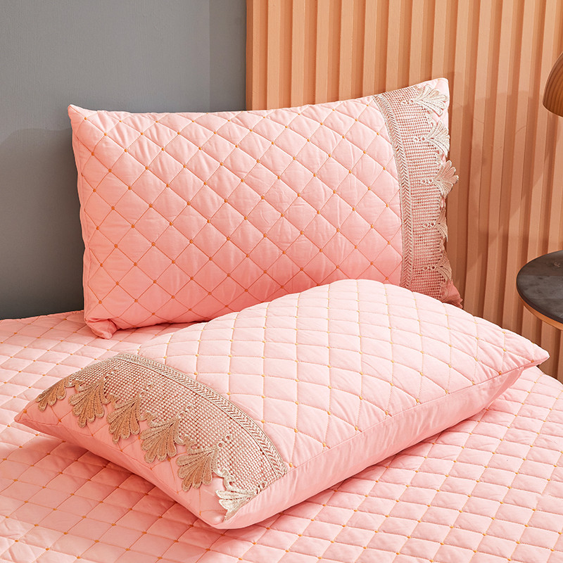 十个点家纺 2021新款水溶边夹棉单品枕套 玉色一对