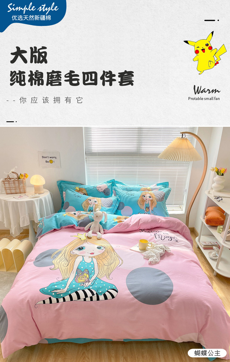 当前位置: 91家纺网 > 商品网购 > 床品套件 > 四件套 > 普通磨毛四件套 > 金爱家 2021新款大版磨毛卡通系列四件套 蝴蝶公主