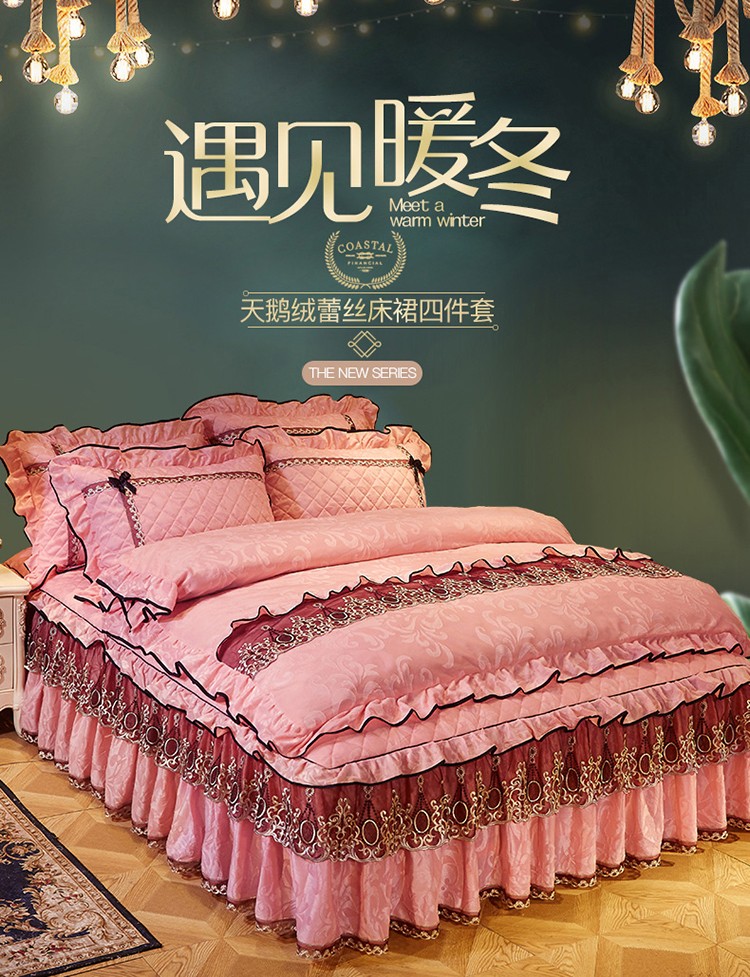 商品名称:网红馆 2025新款梦醉奢华天鹅绒床裙四件套 玉色