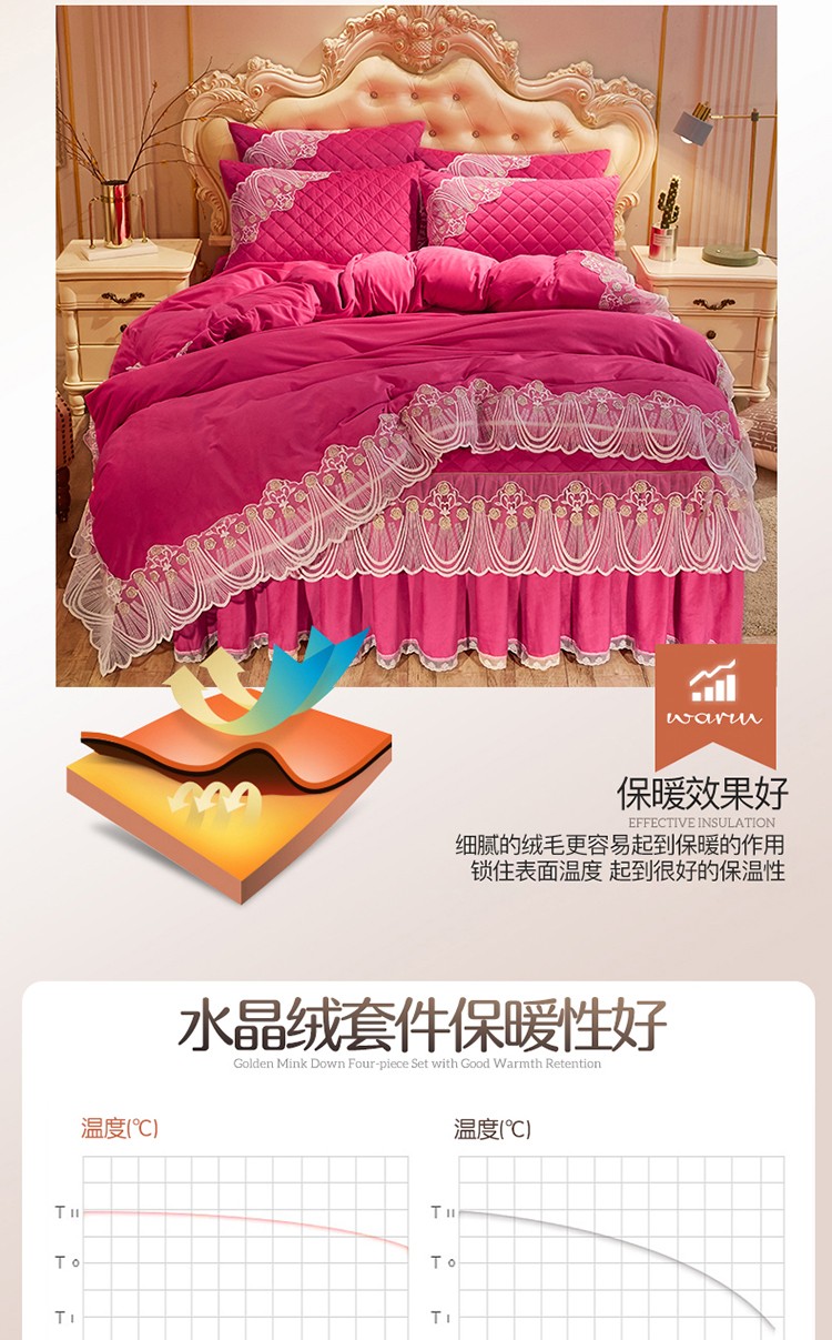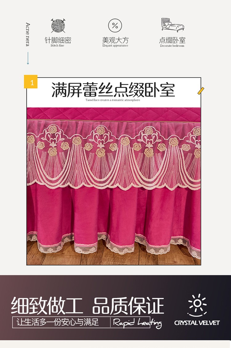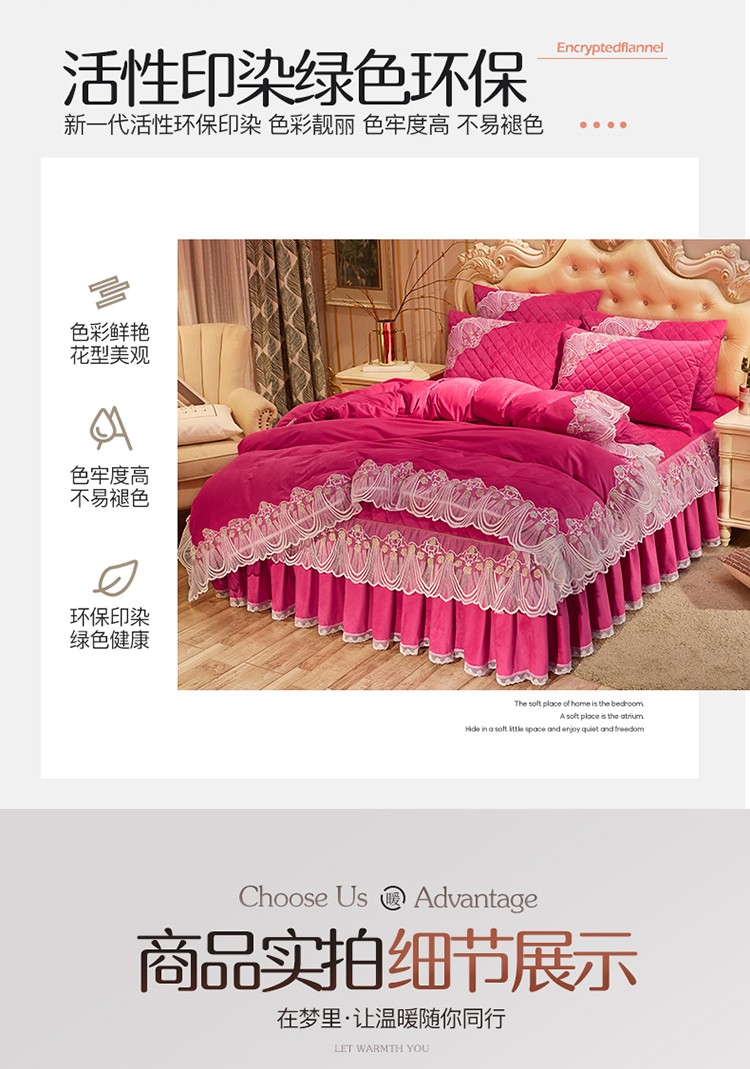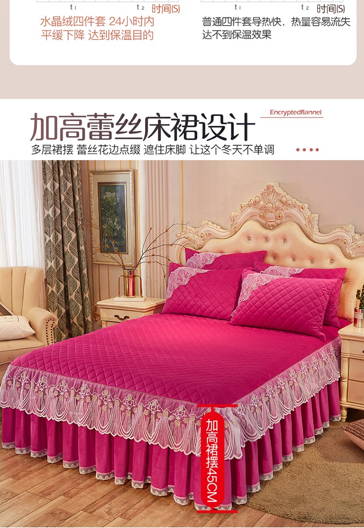 商品名称:网红馆 2025新款幸福花开水晶绒蕾丝床裙四件套 玫红