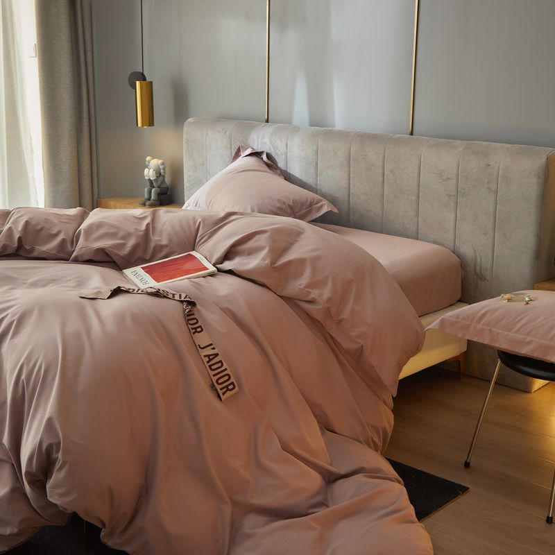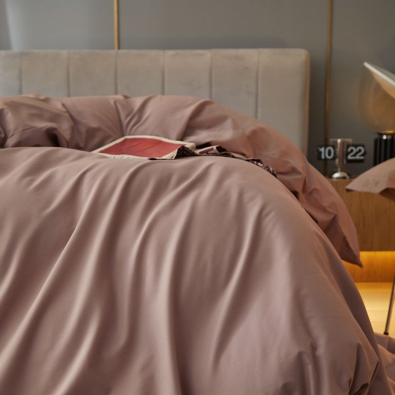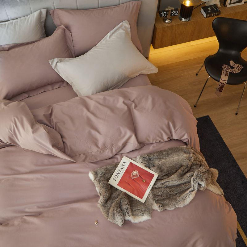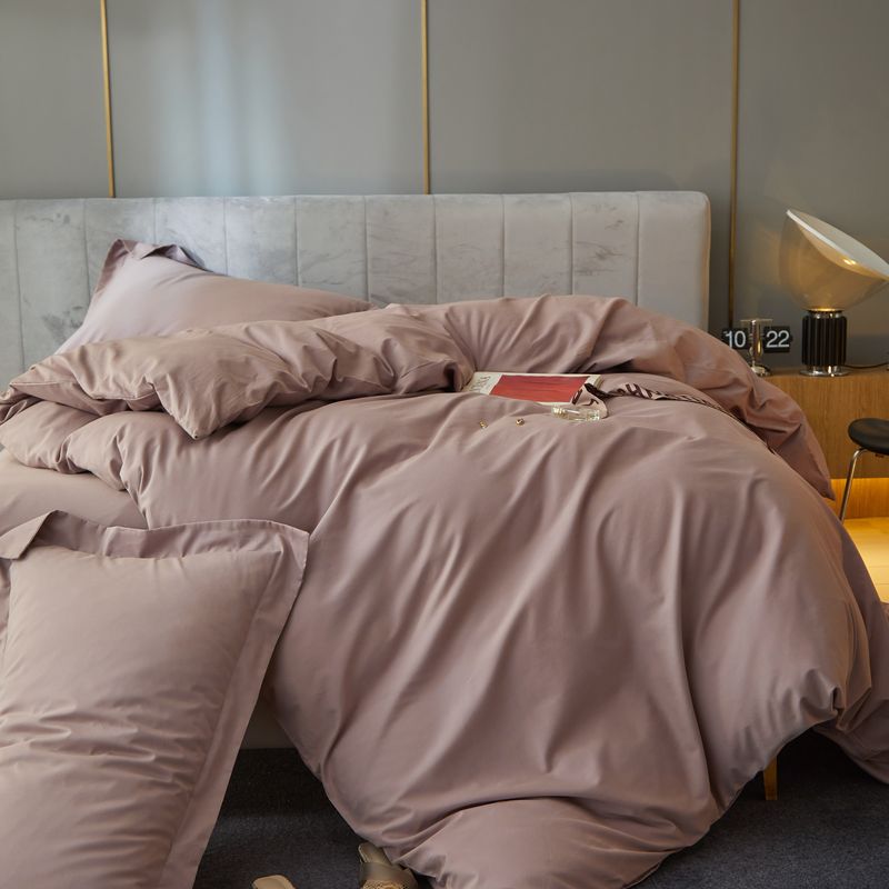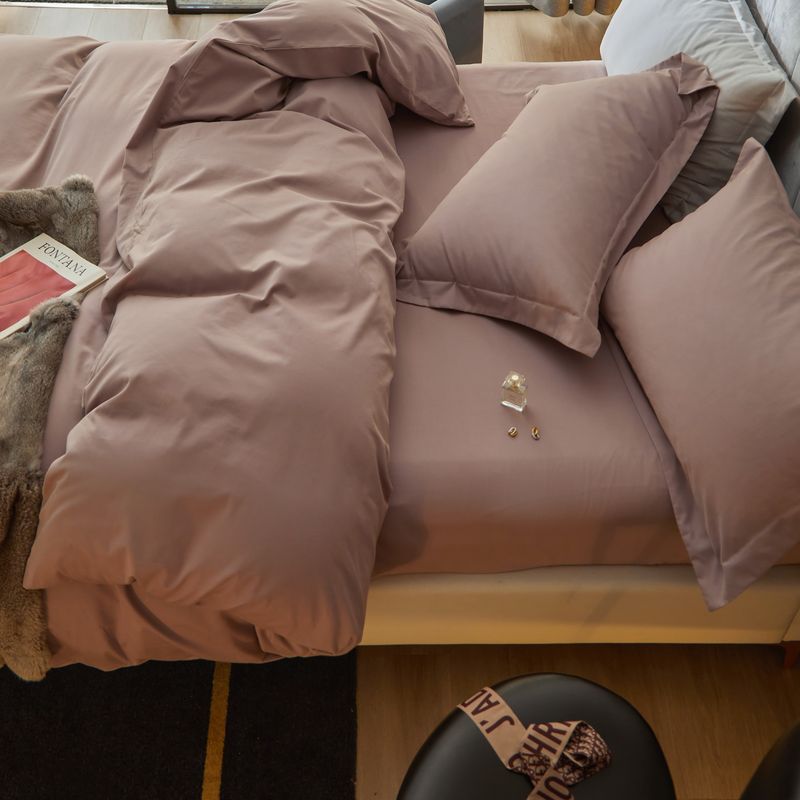 商品名称:涞澳 2021新款50磨绒纯色四件套风格二 暗豆沙
