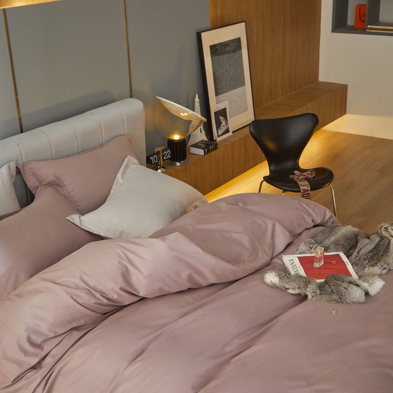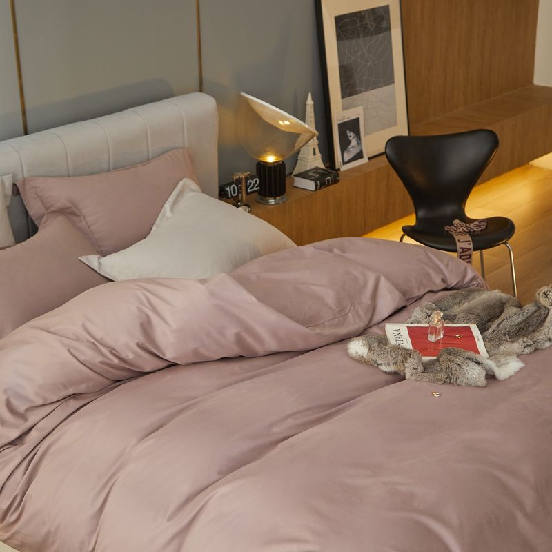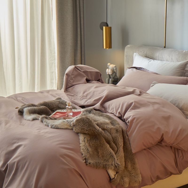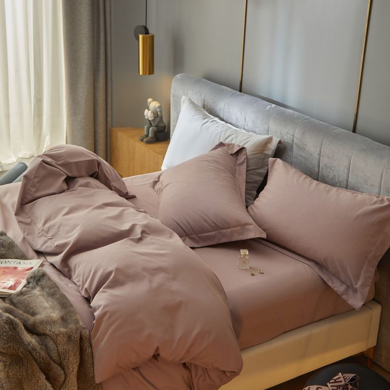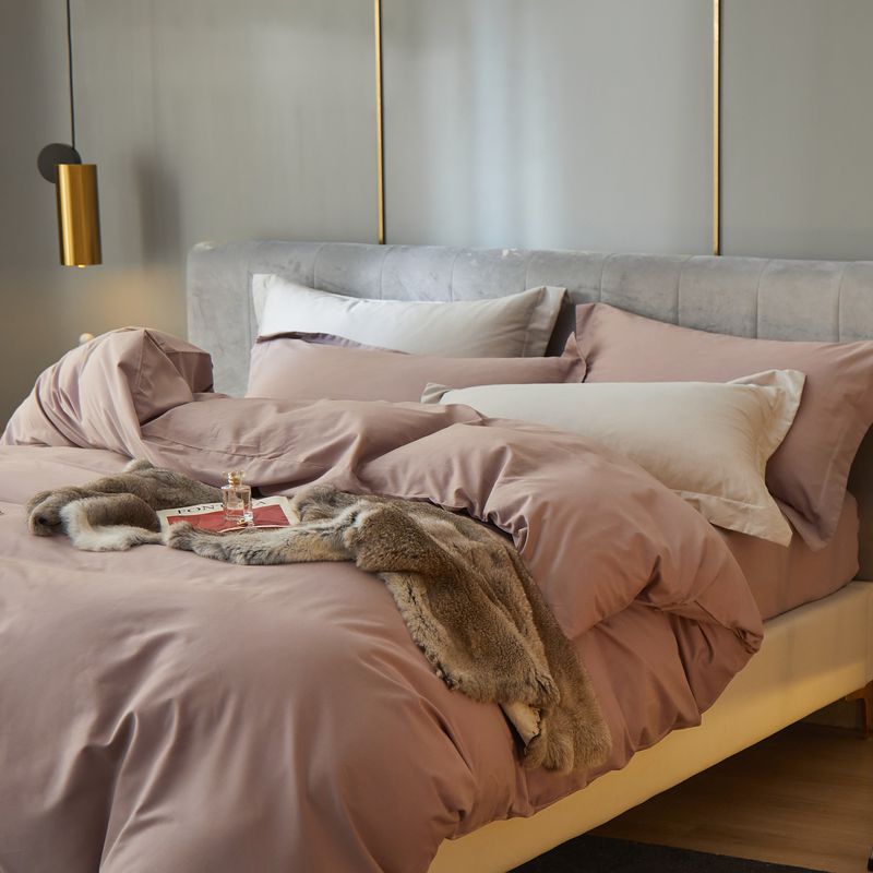 商品名称:涞澳 2021新款50磨绒纯色四件套风格二 暗豆沙