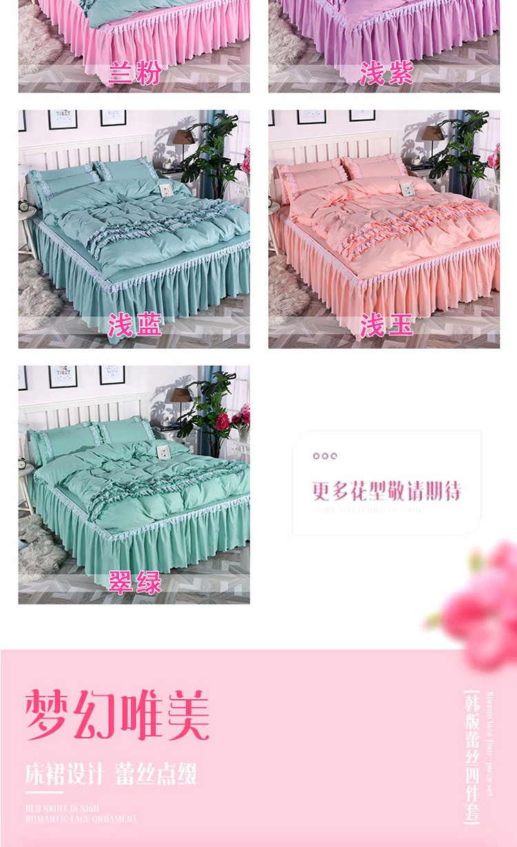 (总)梦柏家纺 2025新款韩式牛奶绒刺绣花边床盖四件套,风信紫,湖水蓝,浅草绿,蔷薇粉,樱花粉,月光白