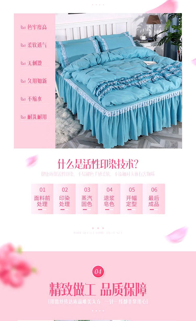 商品名称:梦柏家纺 2021新款水洗棉蕾丝四件套 天湖蓝