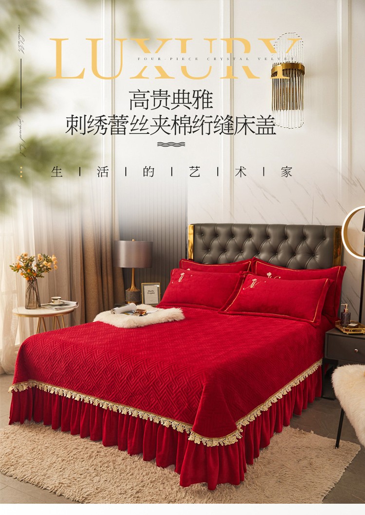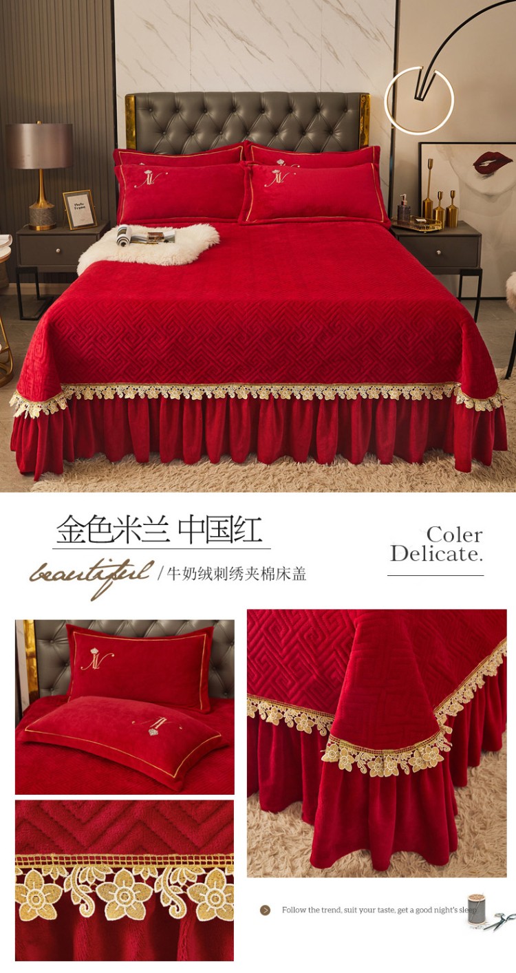商品名称:菊上家纺 2021新款牛奶绒金色米兰系列-单床盖 中国红