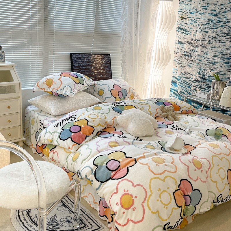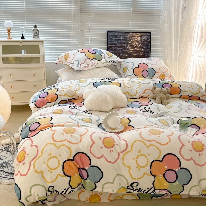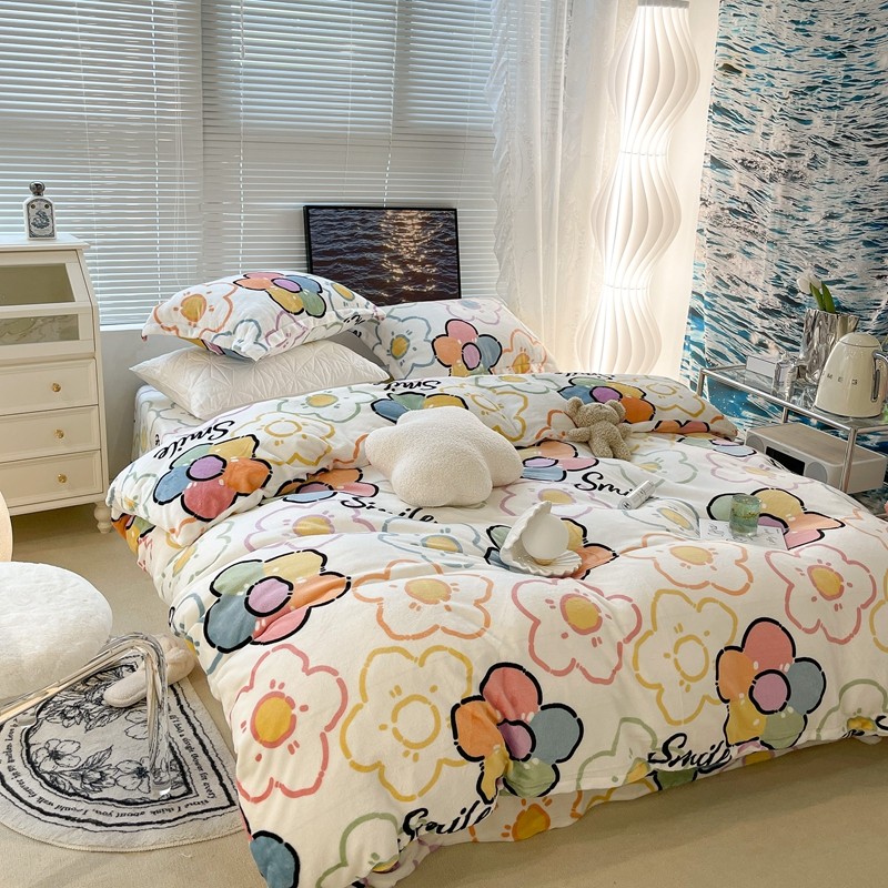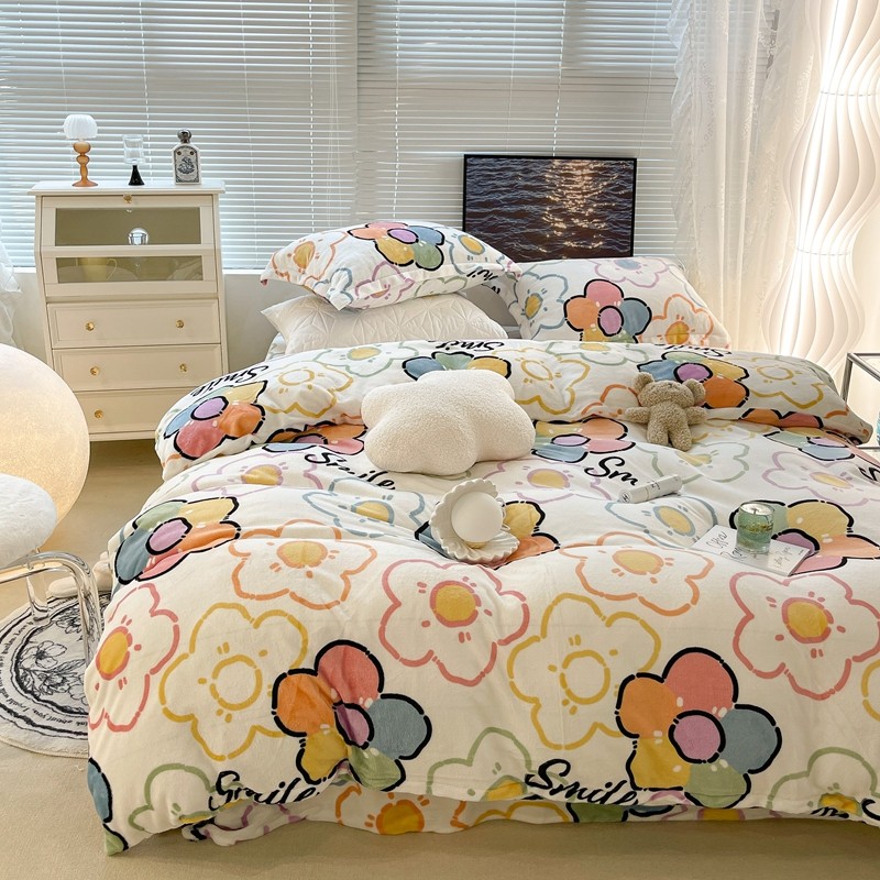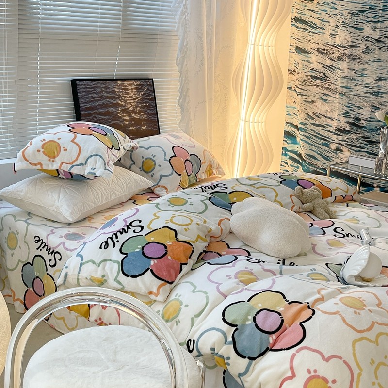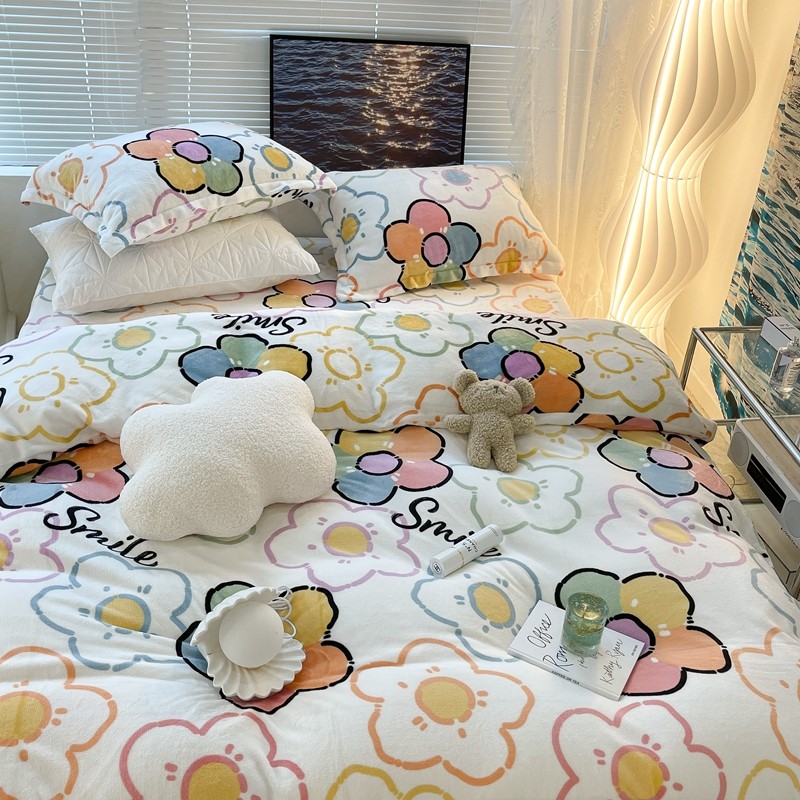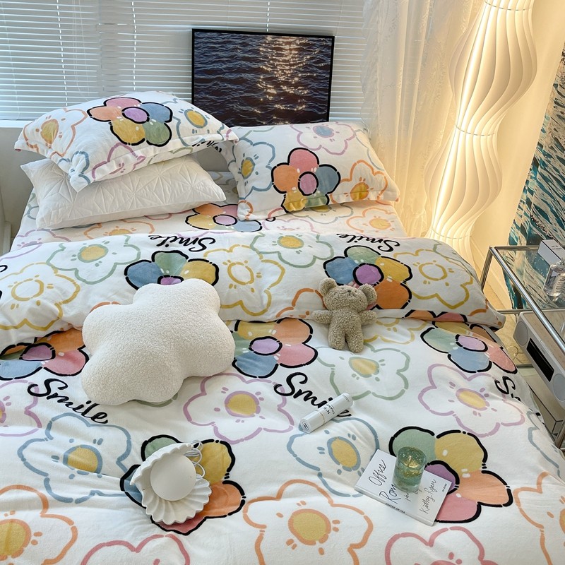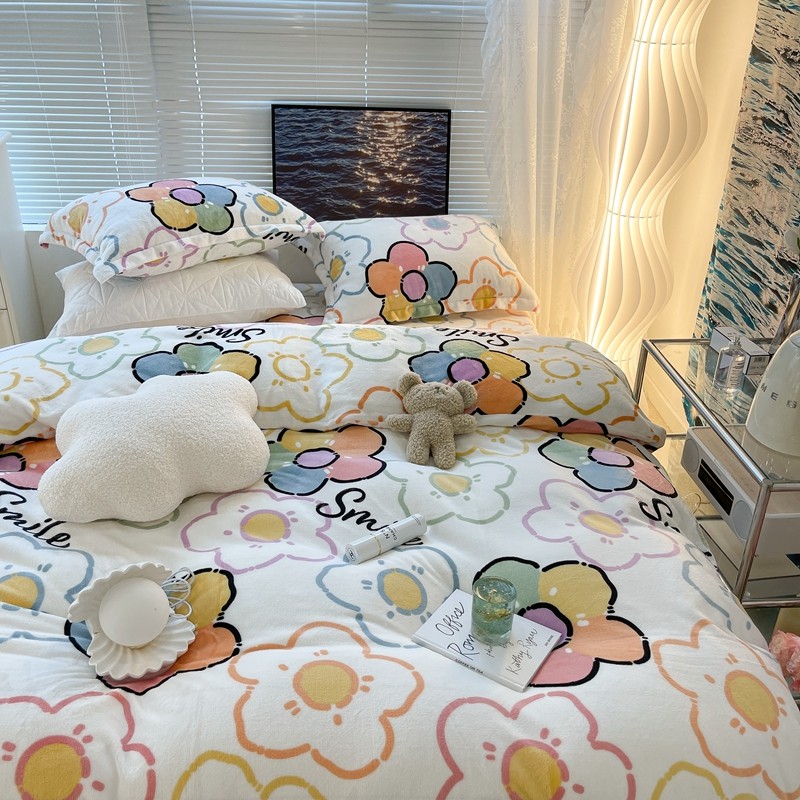 昔可家纺 2021新款牛奶绒四件套-一批 彩色微笑花